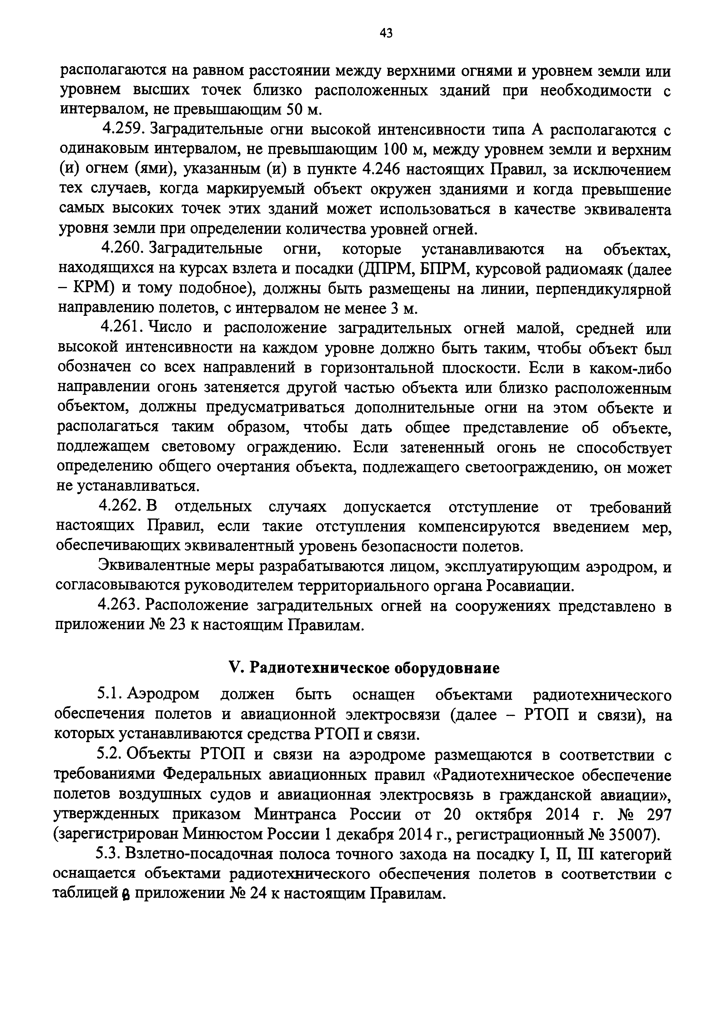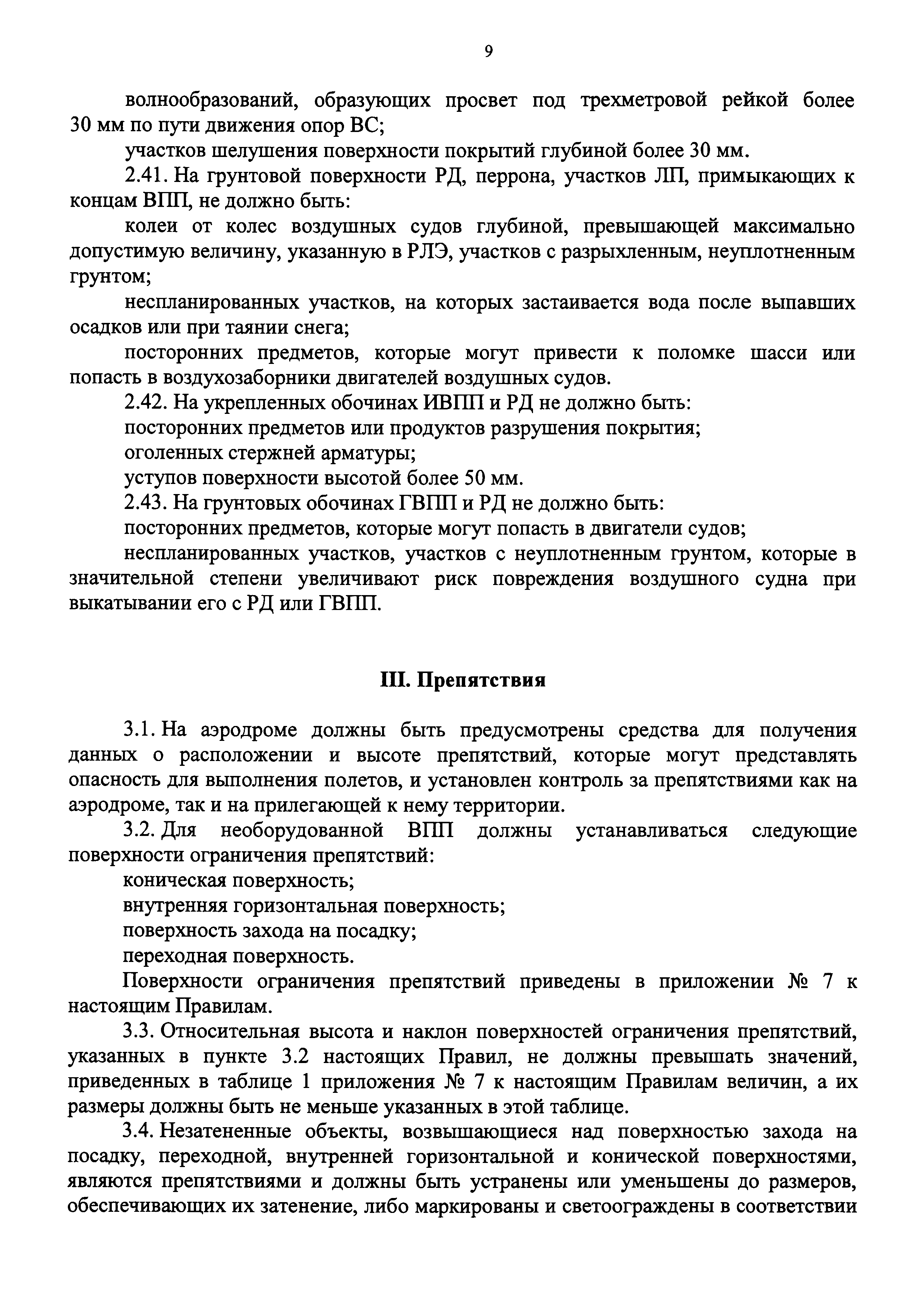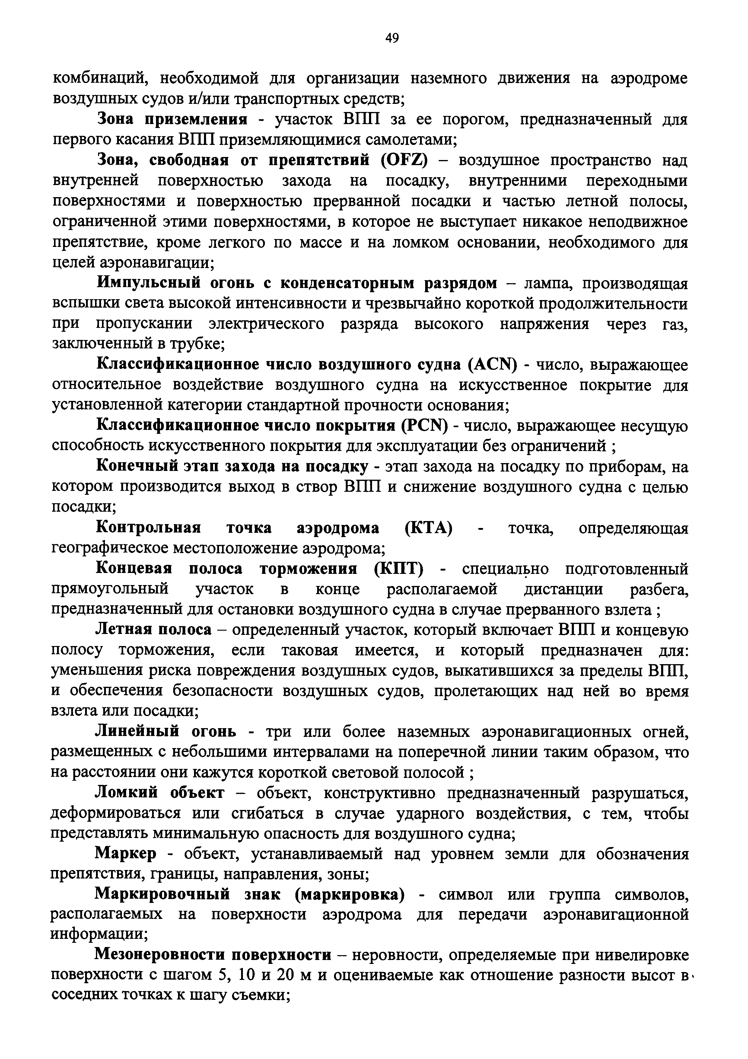 | Оглавление: | I. Общие положения II. Класс и физические характеристики аэродромов III. Препятствия IV. Визуальные средства V. Радиотехническое оборудование VI. Электроснабжение и электрооборудование Приложение № 1. Термины и определения Приложение № 2. Классификация взлетно-посадочных полос Приложение № 3. Временные препятствия на летней полосе Приложение № 4. Определение индекса самолета Приложение № 5. Метод CAN-PCN представления данных о прочности искусственных покрытий Приложение № 6. Критерии назначения ограничений по интенсивности движения и массе ВС Приложение № 7. Поверхности ограничения препятствий Приложение № 8. Классификация ССО Приложение № 9. Аэродромные знаки Приложение № 10 Приложение № 11. Маркировка мест ожидания у ВПП и промежуточных мест ожидания Приложение № 12. Маркировочные знаки грунтовых ВПП аэродромов Приложение № 13. Маркировка объектов Приложение № 14 Приложение № 15. Углы установки огней в системах ОМИ, ОВИ-I, ОВИ-II и ОВИ-III Приложение № 16. Управление огнями Приложение № 17. Электропитание огней Приложение № 18. Высоты условных обозначений на знаках Приложение № 19 Приложение № 20. Маркировочные знаки и маркеры для грунтовых ВПП Приложение № 21. Характеристики ветроуказателя Приложение № 22. Светоограждение препятствий Приложение № 23. Расположение заградительных огней на сооружениях Приложение № 24. Оснащение объектами радиотехнического обеспечения полетов Приложение № 25. Категории потребителей электроэнергии по степени надежности электроснабжения и максимально допустимое время перерывов в их электропитании |