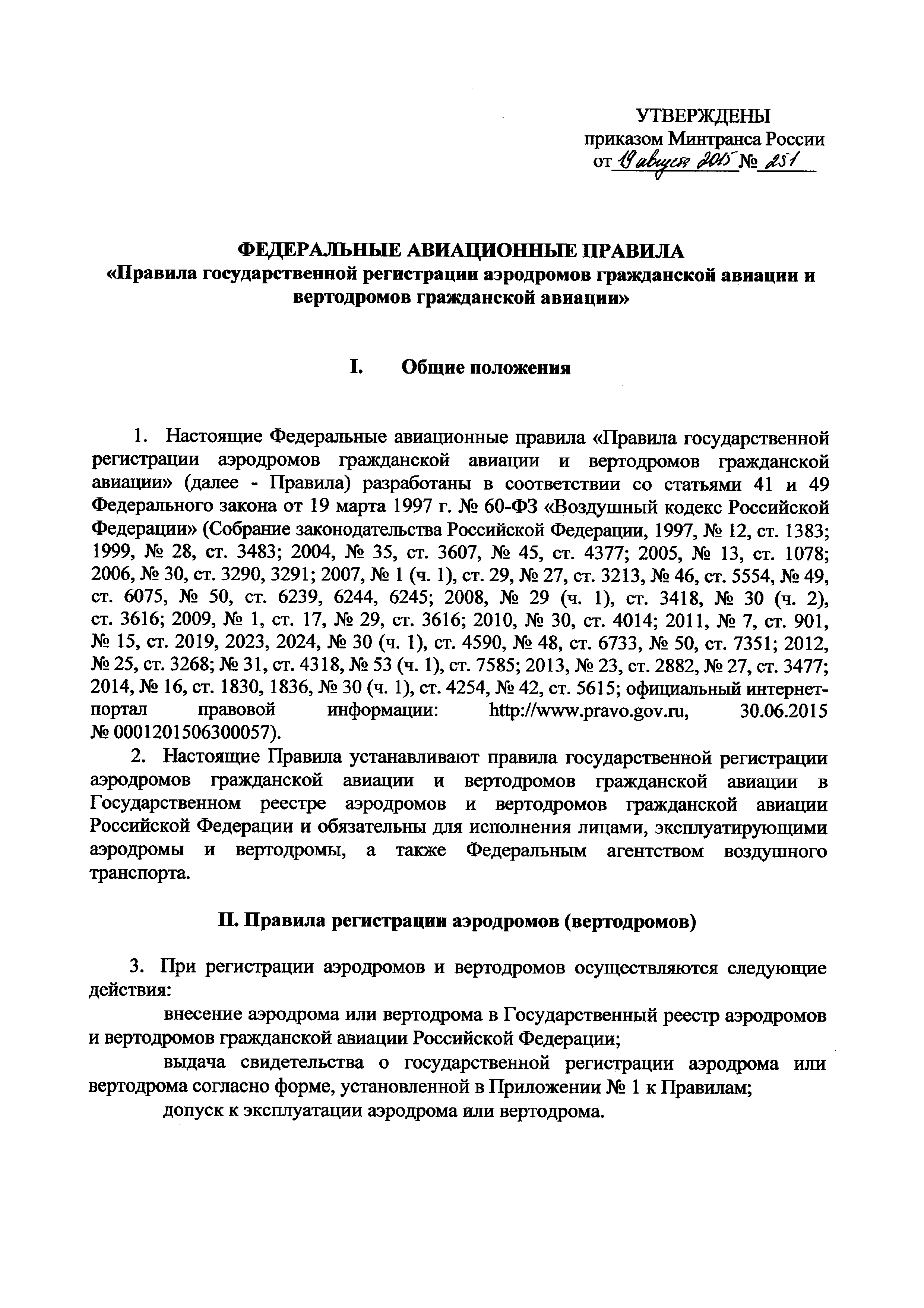 | Название рус.: | Федеральные авиационные правила "Правила государственной регистрации аэродромов гражданской авиации и вертодромов гражданской авиации" |