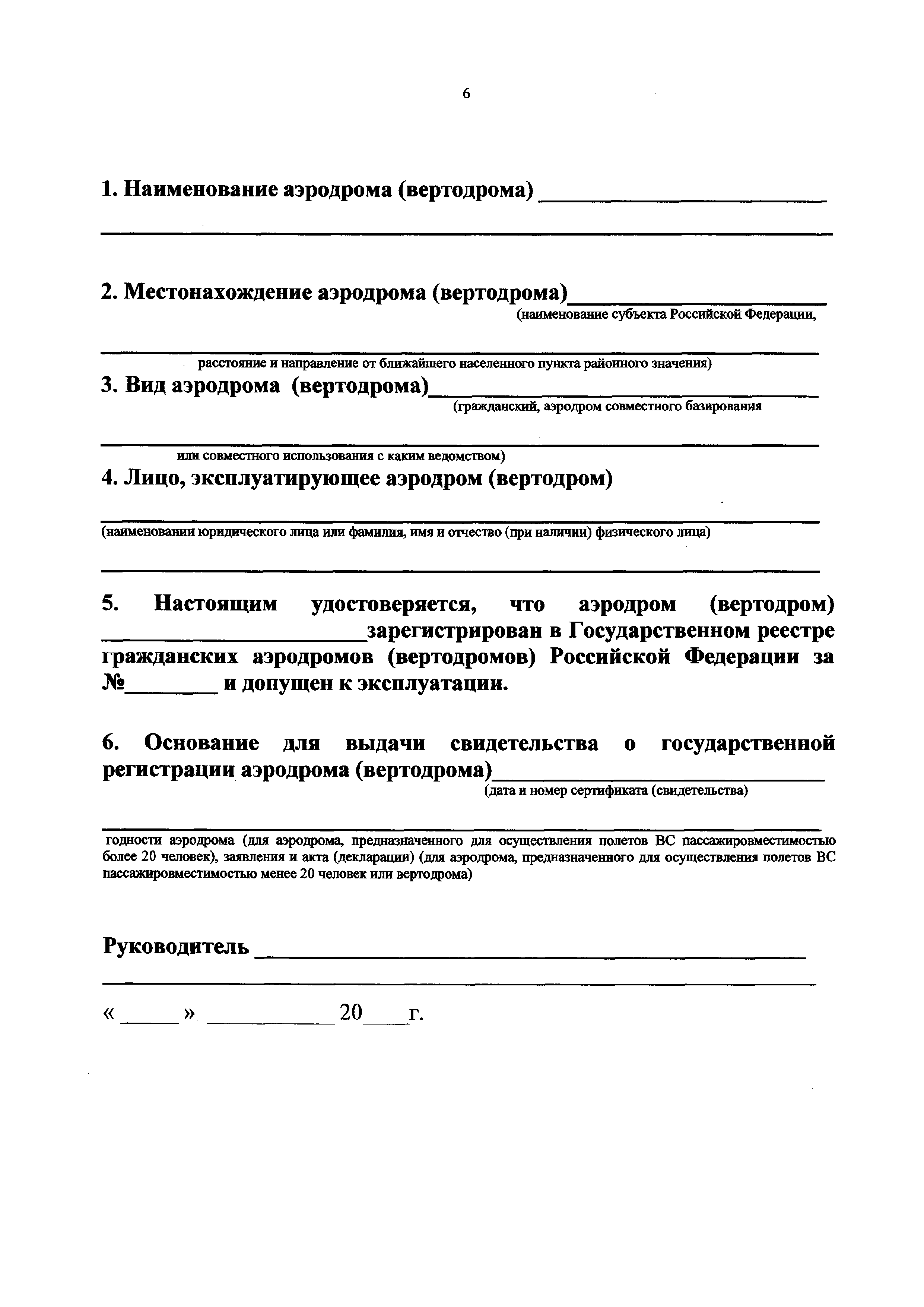 | Оглавление: | I. Общие положения II. Правила регистрации аэродромов (вертодромов) Приложение |