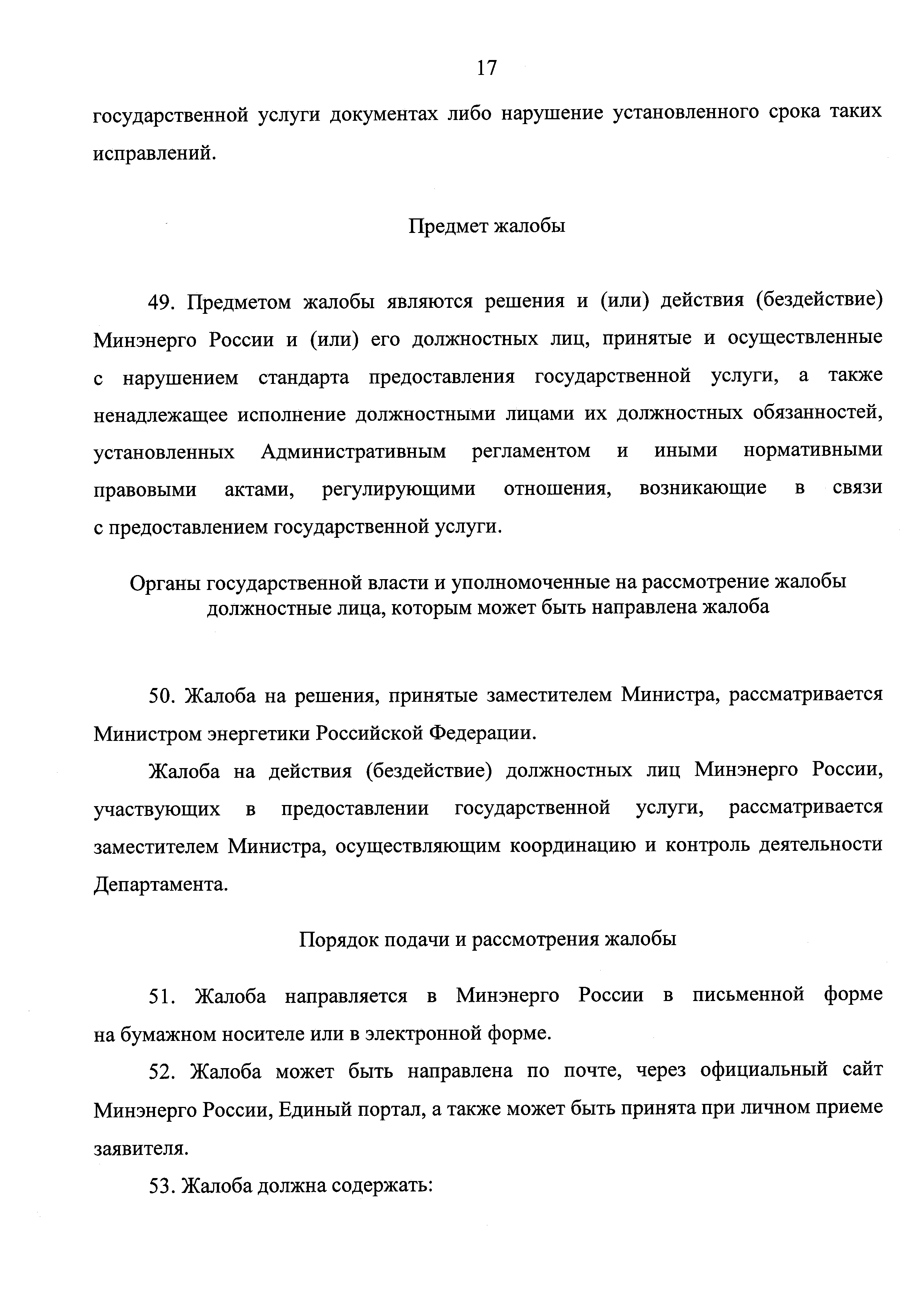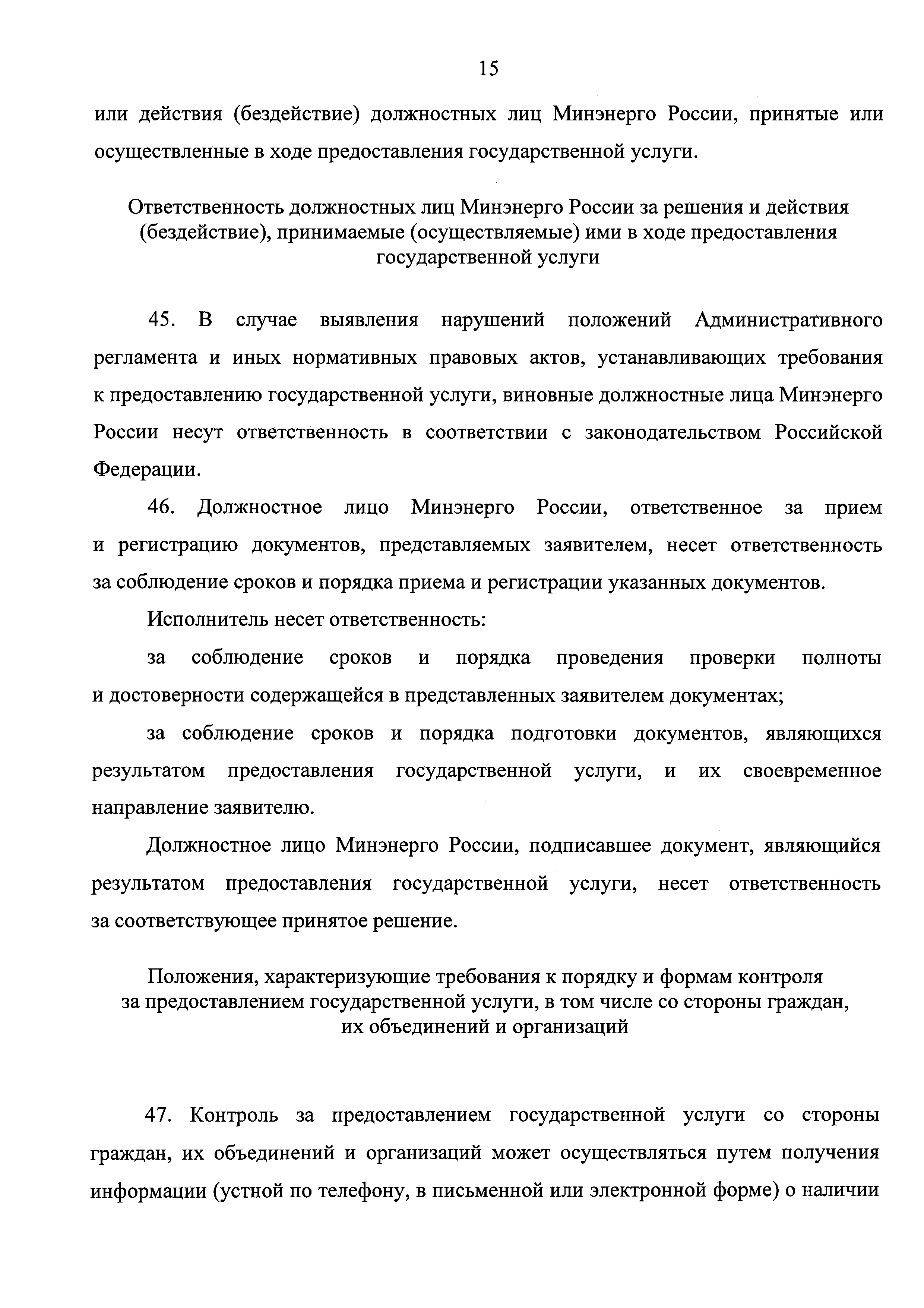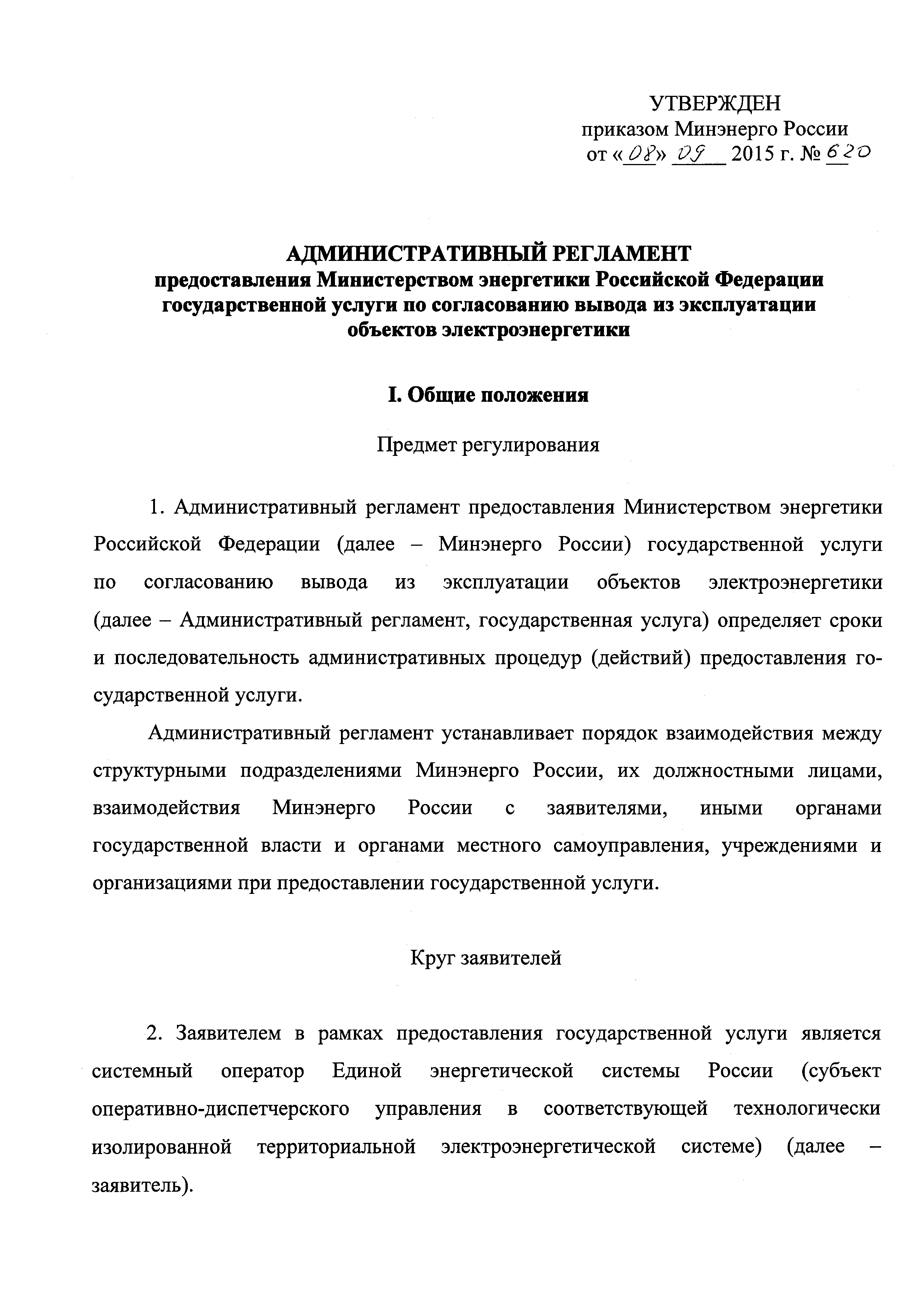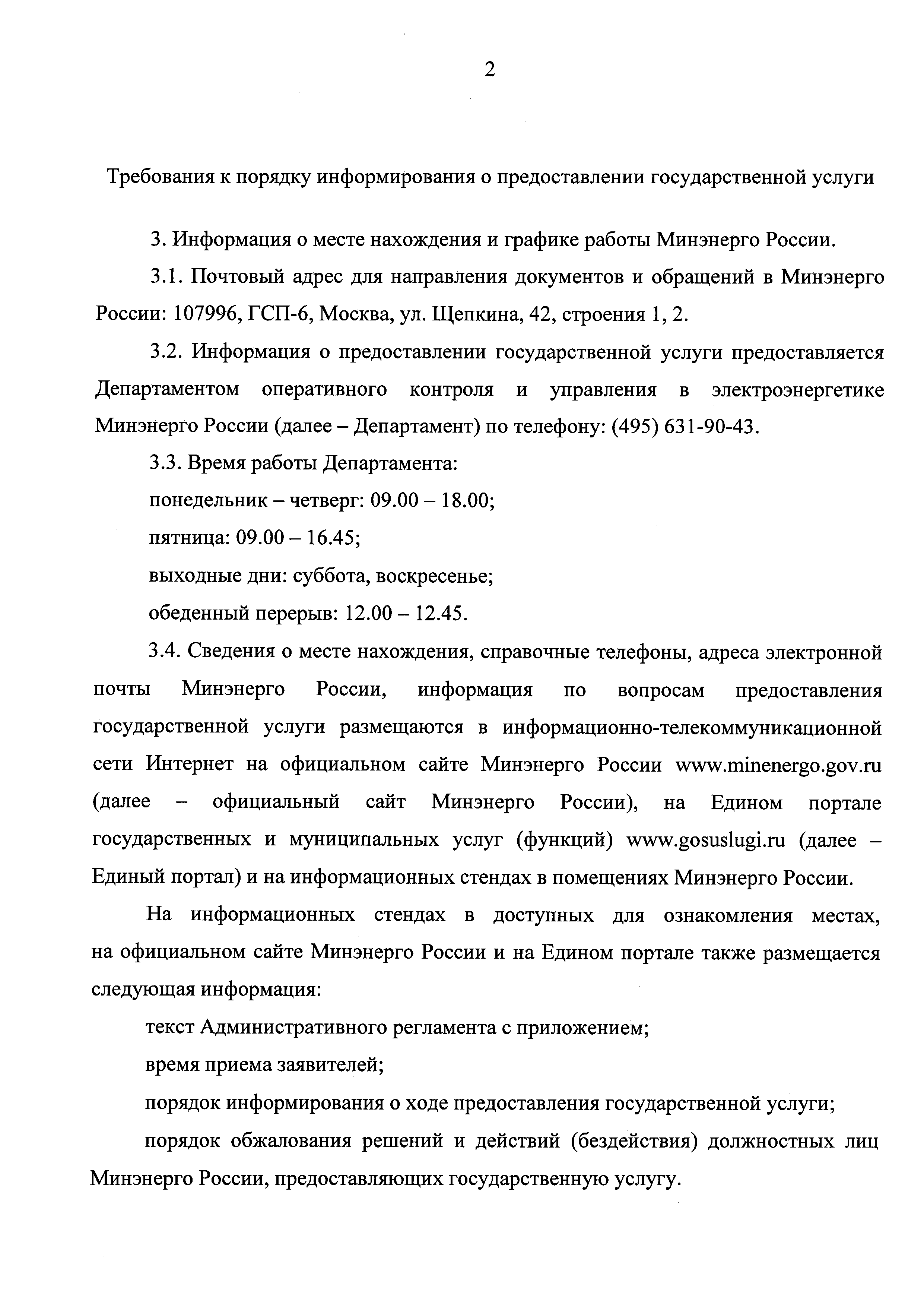 | Оглавление: | I. Общие положения II. Стандарт предоставления государственной услуги III. Состав, последовательность и сроки выполнения административных процедур (действий), требования к порядку их выполнения, в том числе особенности выполнения административных процедур (действий) в электронной форме IV. Формы контроля за предоставлением государственной услуги V. Досудебный (внесудебный) порядок обжалования решений и действий (бездействия) Минэнерго России, а также его должностных лиц Приложение |