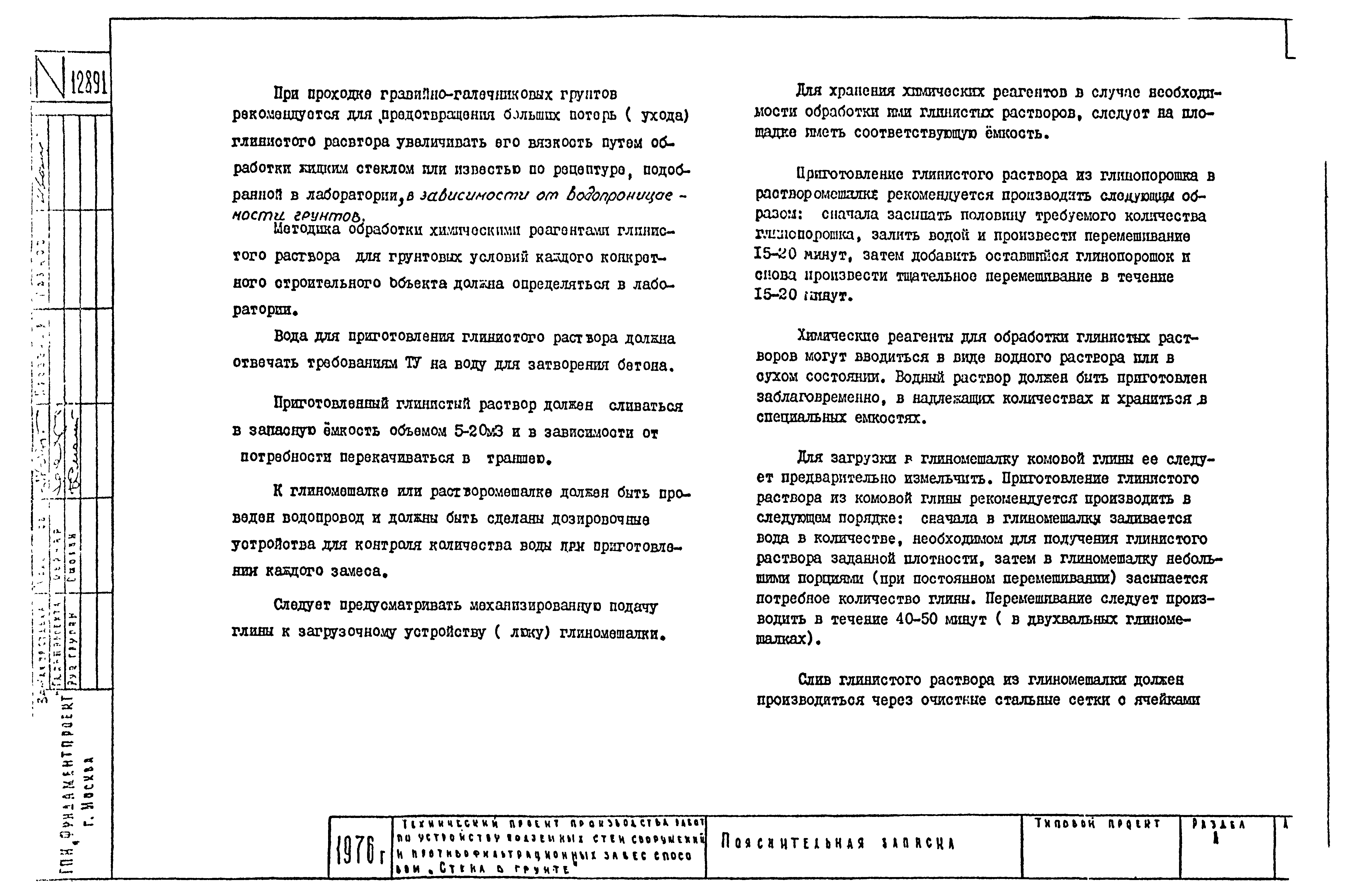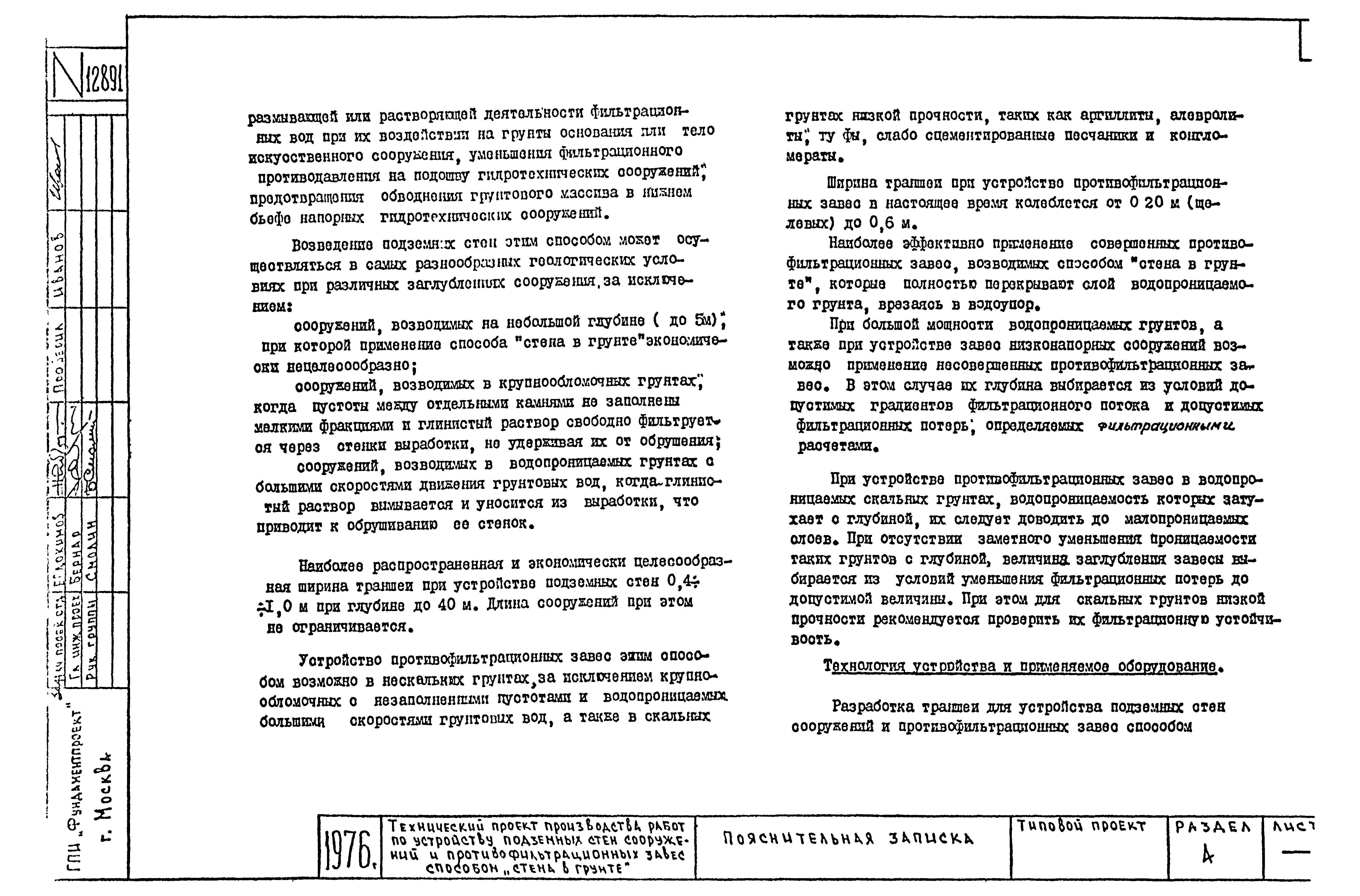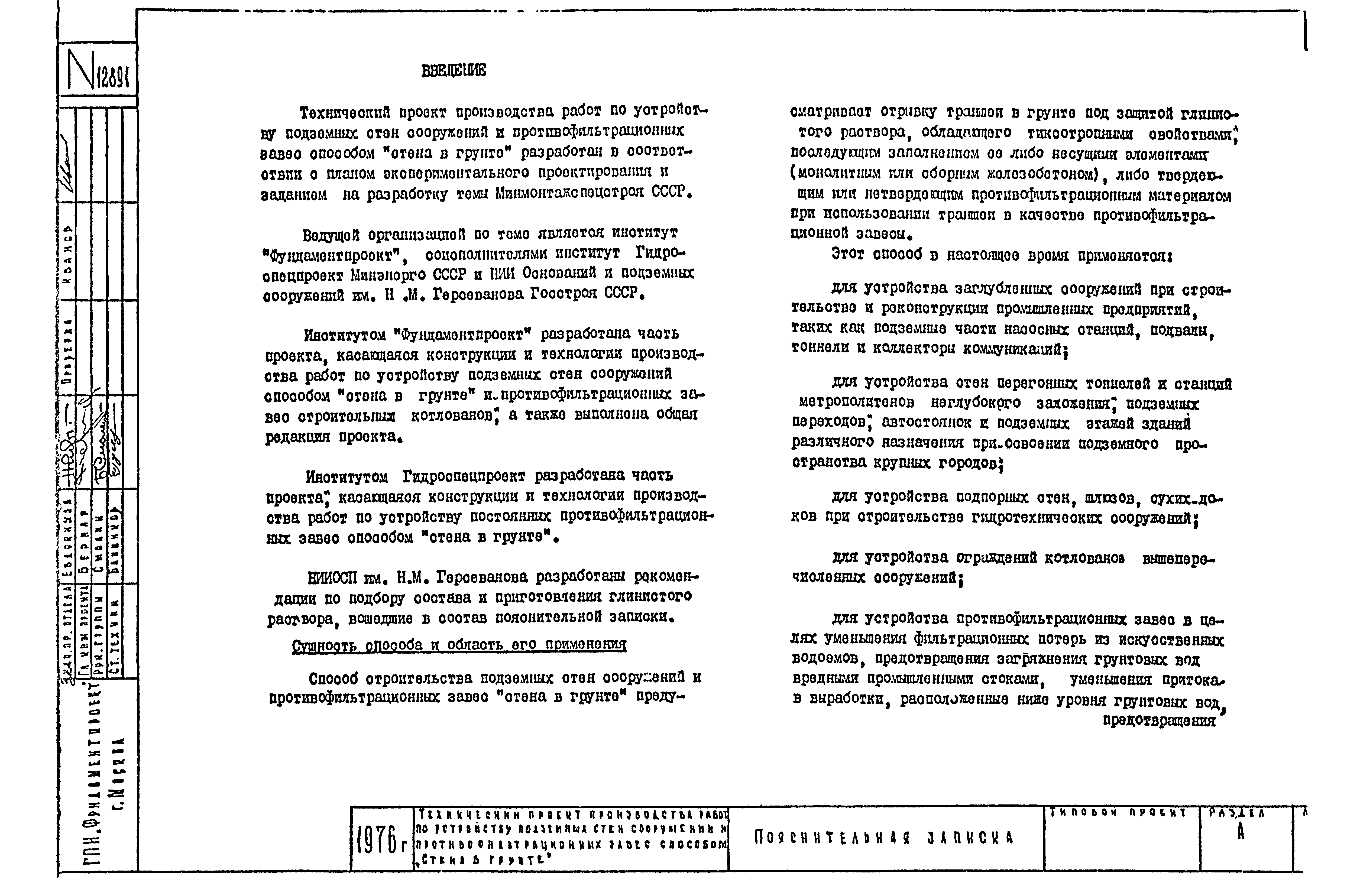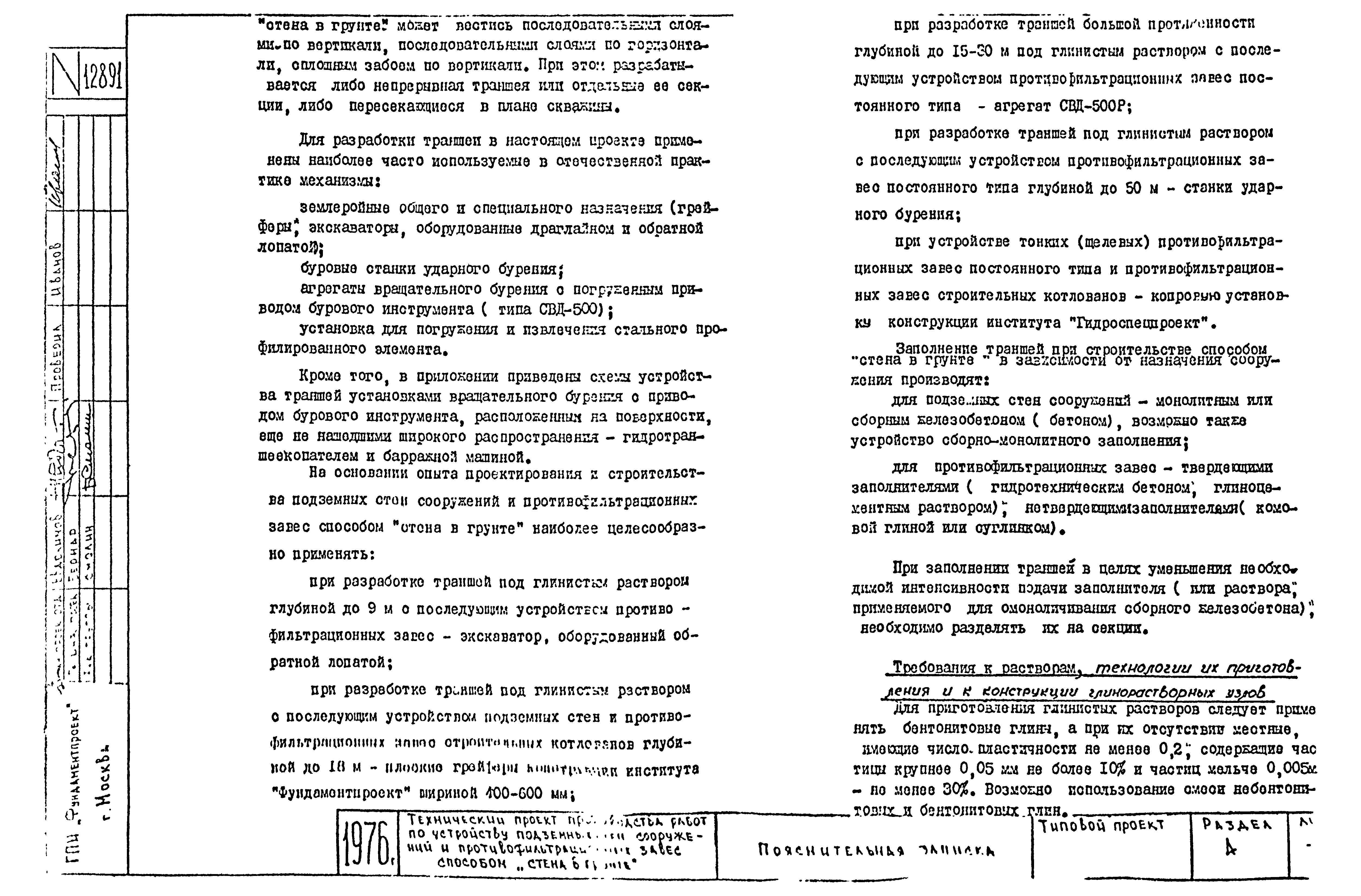 | Название рус.: | Технический проект производства работ по устройству подземных стен сооружений и противофильтрационных завес способом "стена в грунте" |