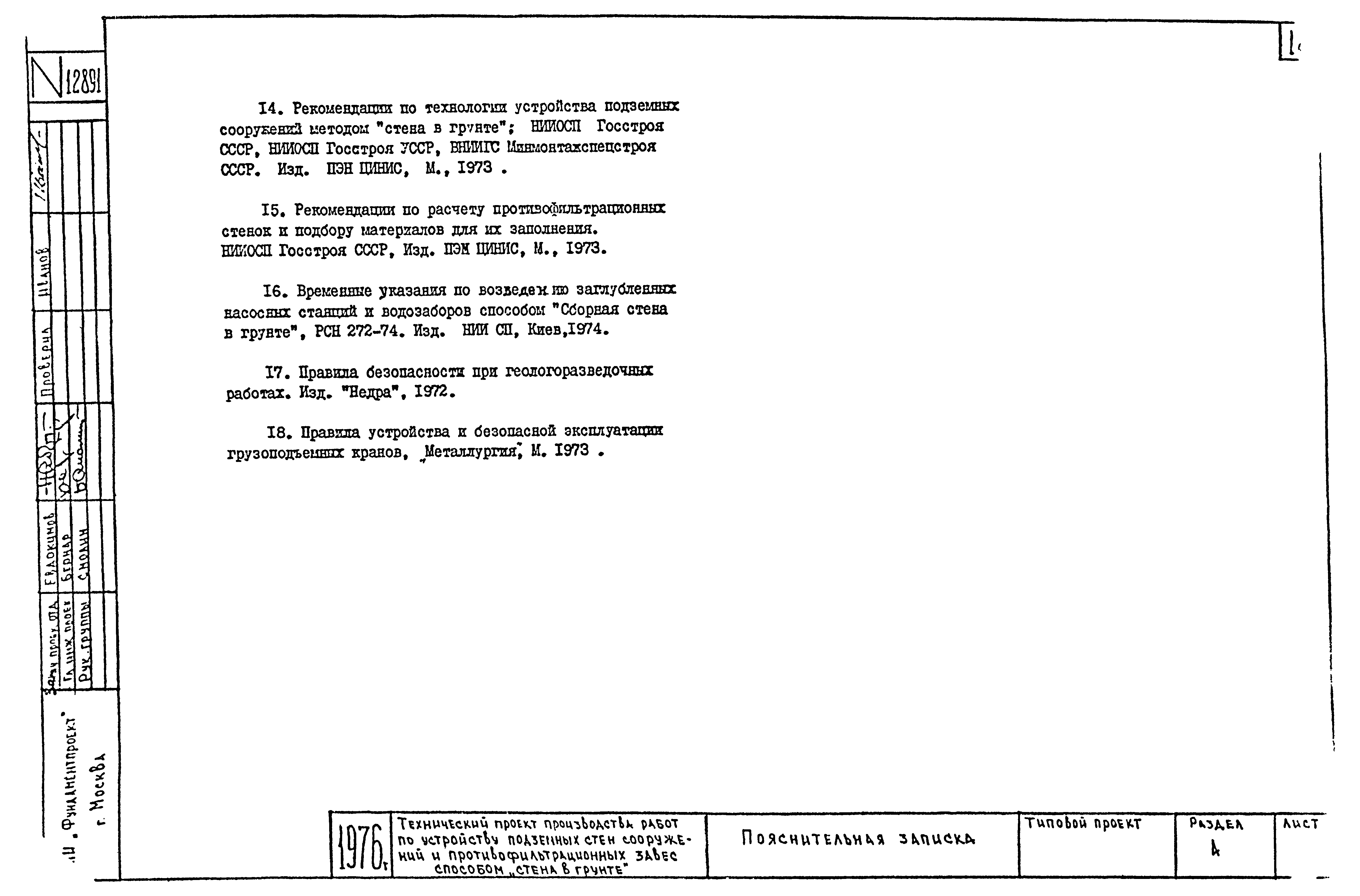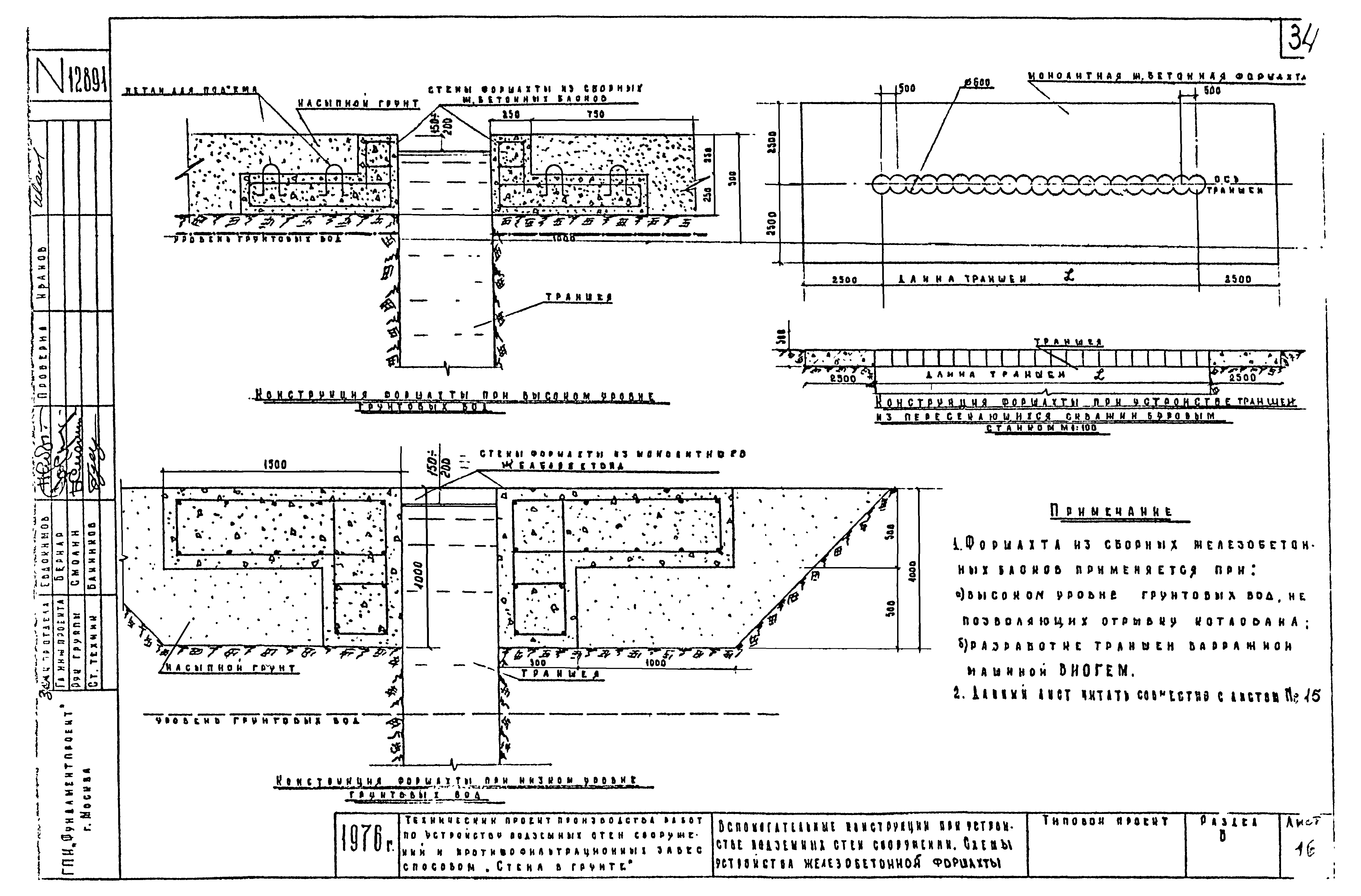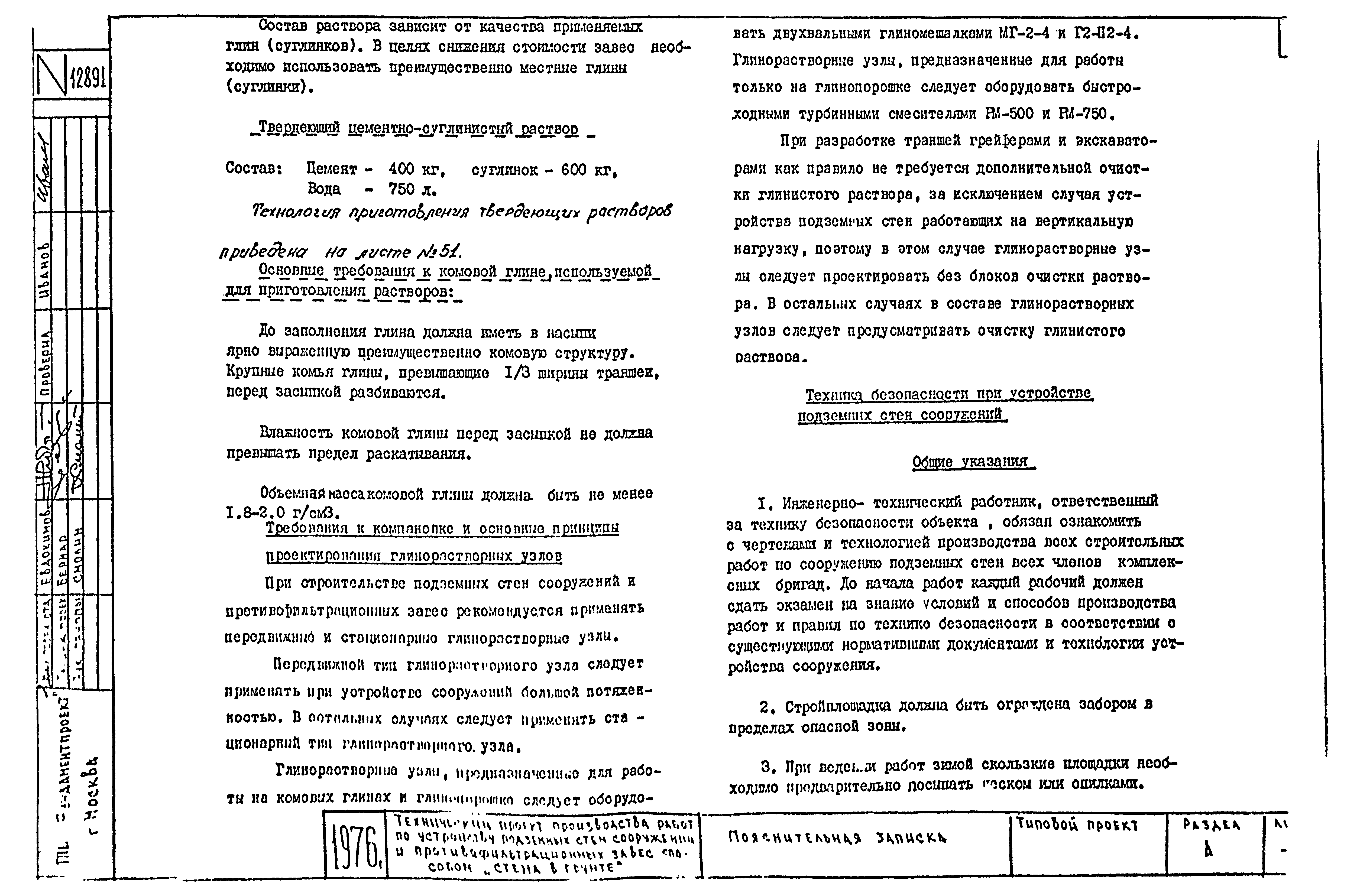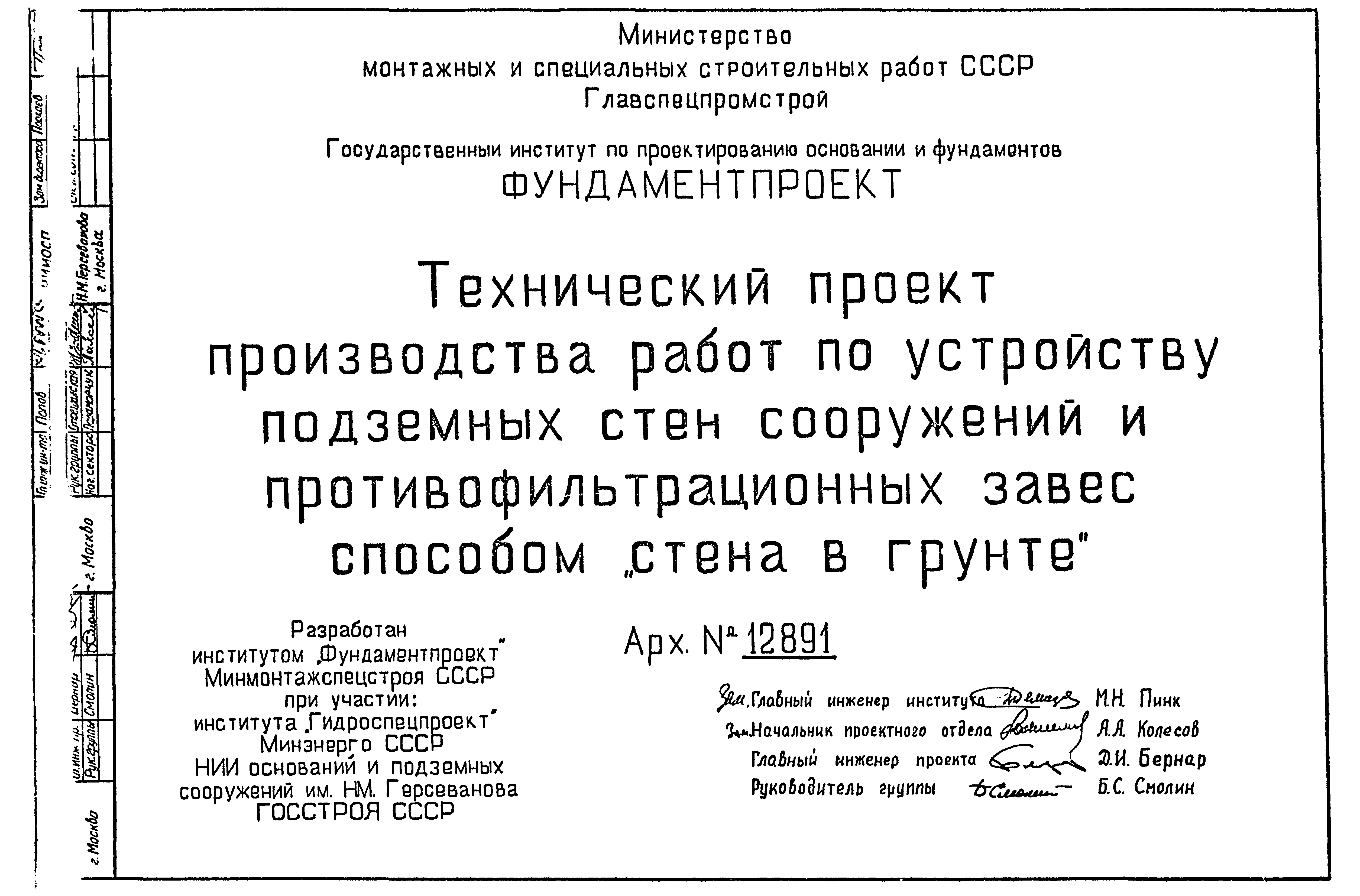 | Название рус.: | Технический проект производства работ по устройству подземных стен сооружений и противофильтрационных завес способом "стена в грунте" |