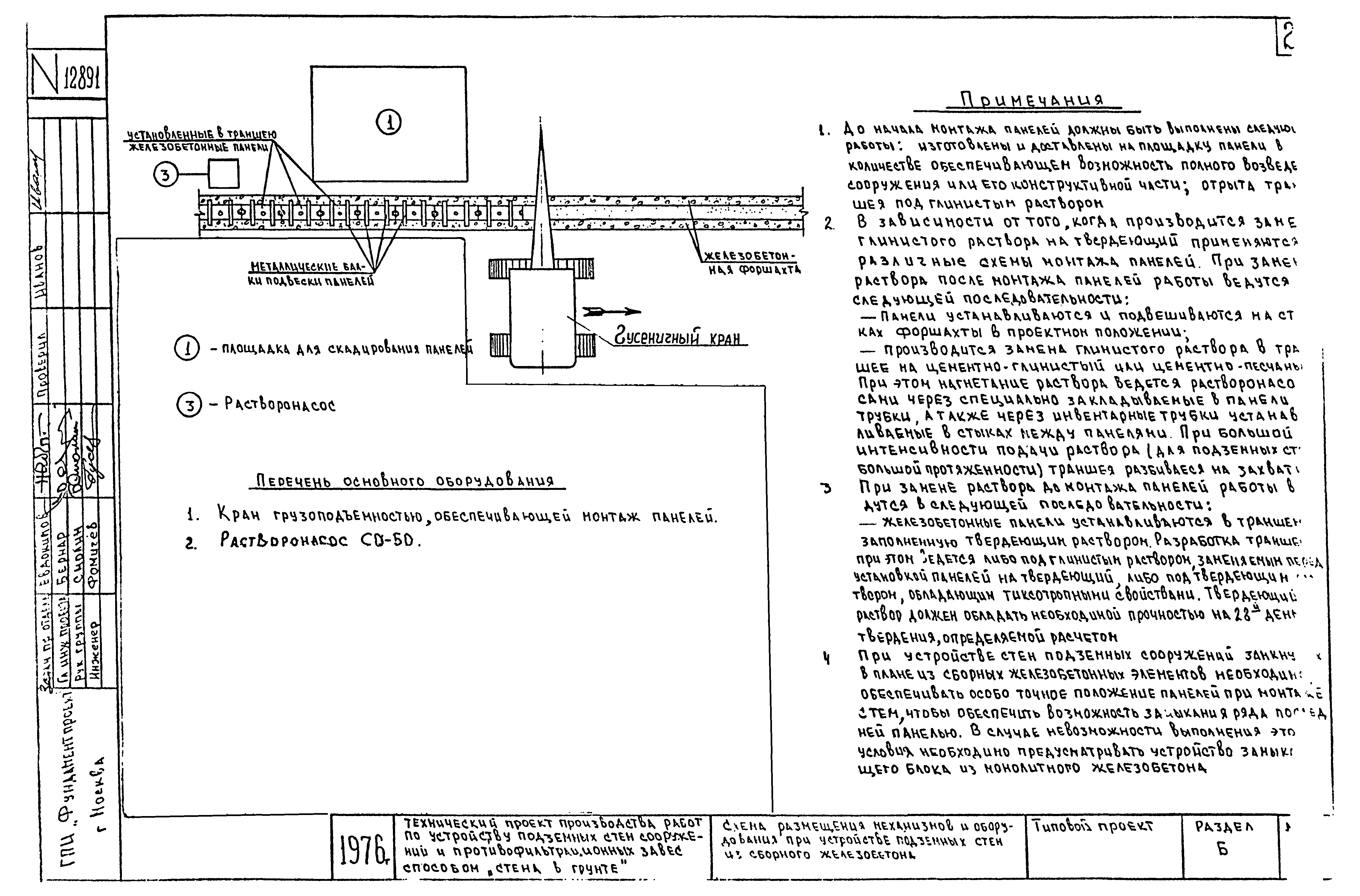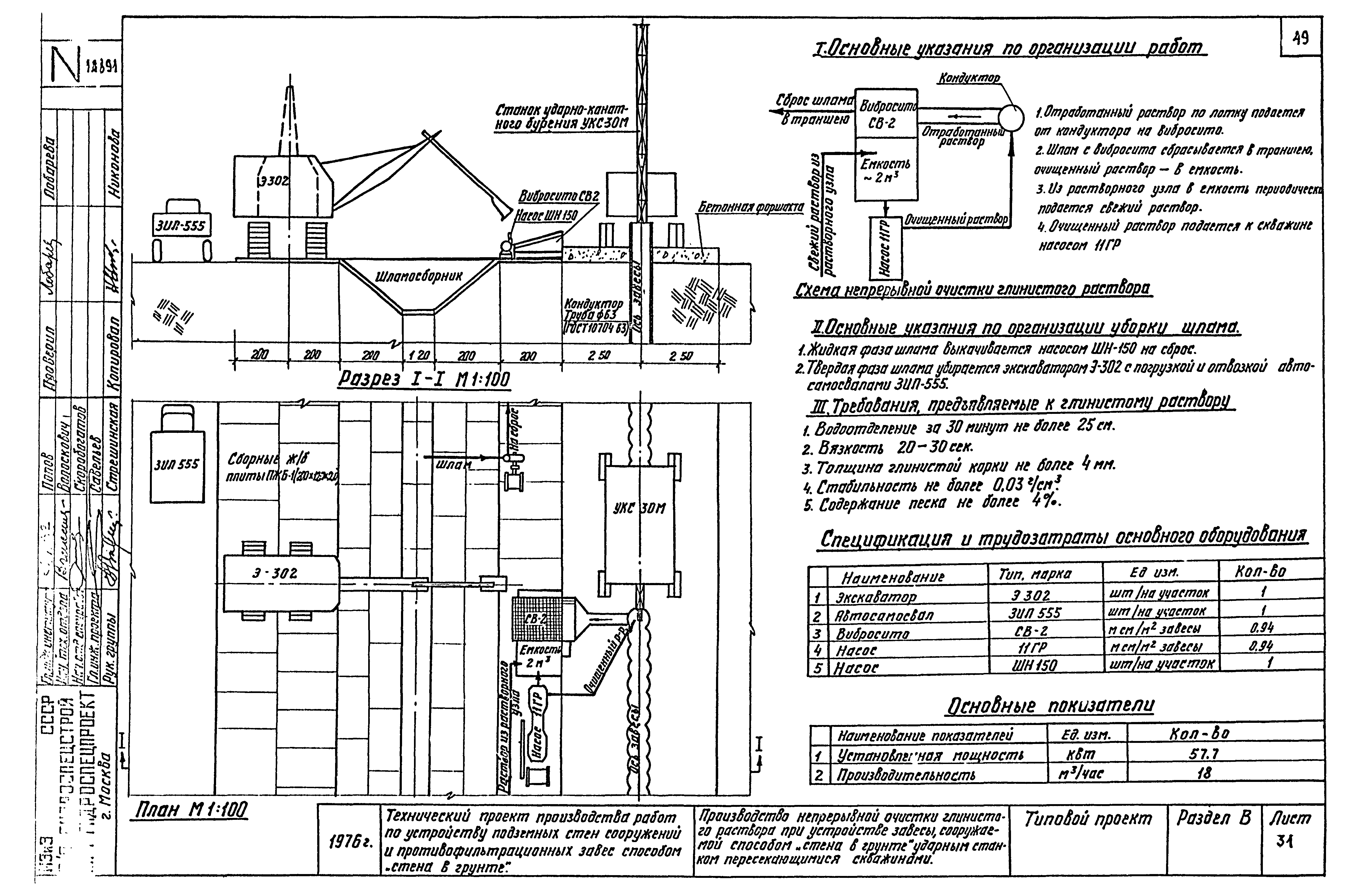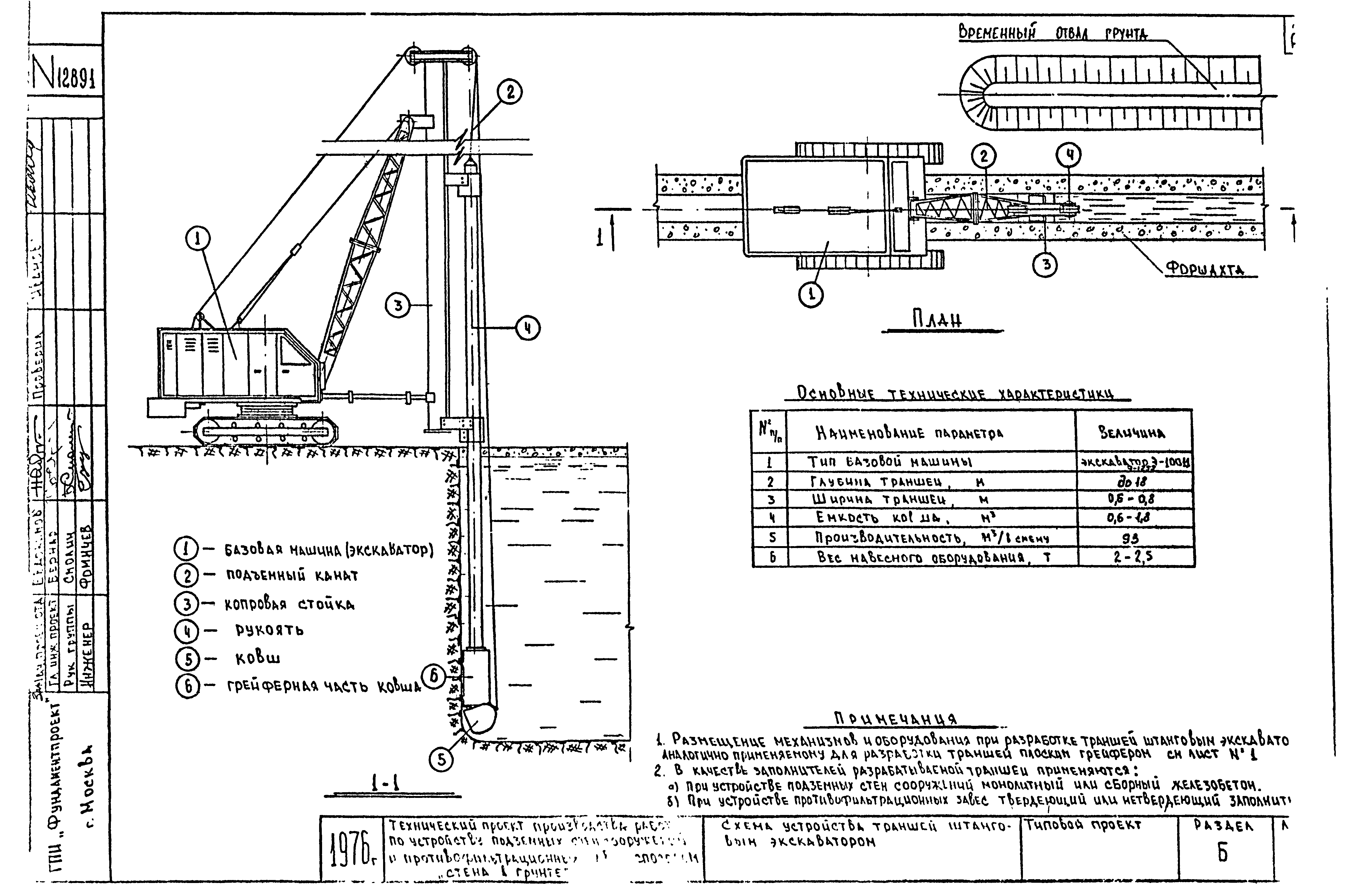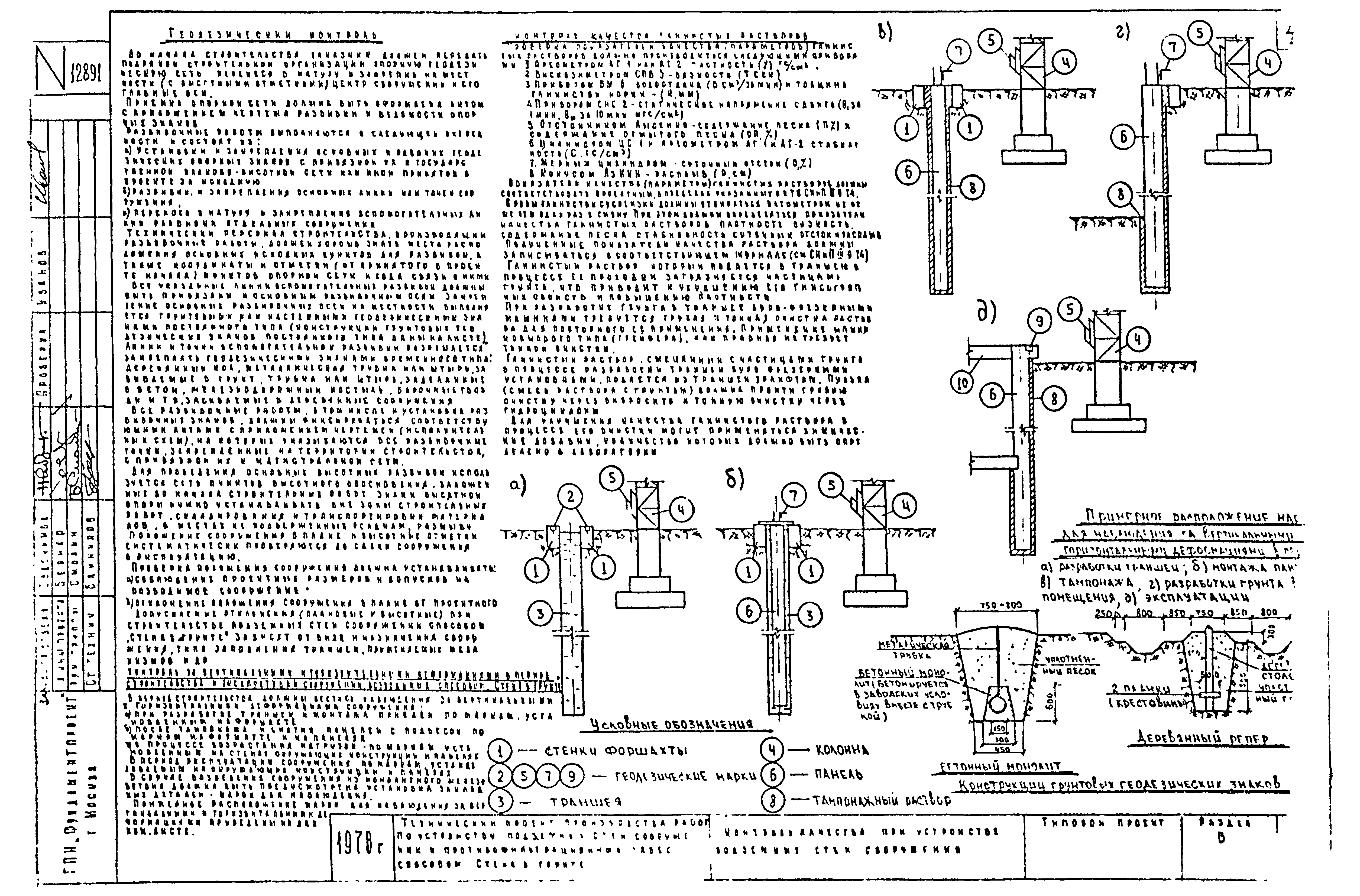 | Оглавление: | Титульный лист Раздел А. Пояснительная записка Раздел Б. Схемы устройства подземных стен сооружений способом "стена в грунте" Раздел В. Схема устройства противофильтрационных завес сооружаемых способом "стена в грунте" Приложение 1. Схема размещения оборудования и схема устройства траншеи барражной машиной Приложение 2. Схема размещения механизмов и оборудования при устройстве траншей гидротраншеекопателем ВНИИГС Приложение 3. Схема устройства траншей гидротраншеекопателем ВНИИГС Приложение 4. Задание на разработку темы |