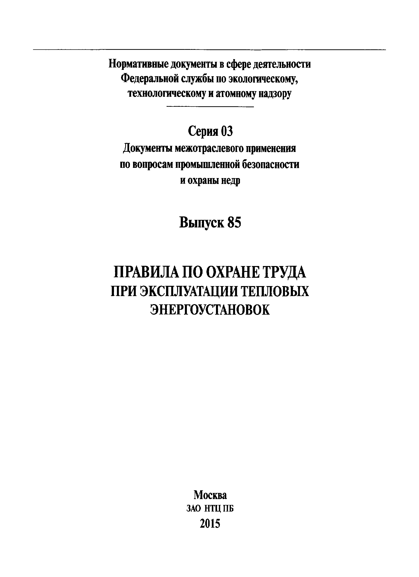 | Издан: | ЗАО НТЦ ПБ (2015 г. (выпуск 85)) Официальный интернет-портал правовой информации (www.pravo.gov.ru) (от 07.10.2015 г. Номер опубликования: 0001201510070032) |