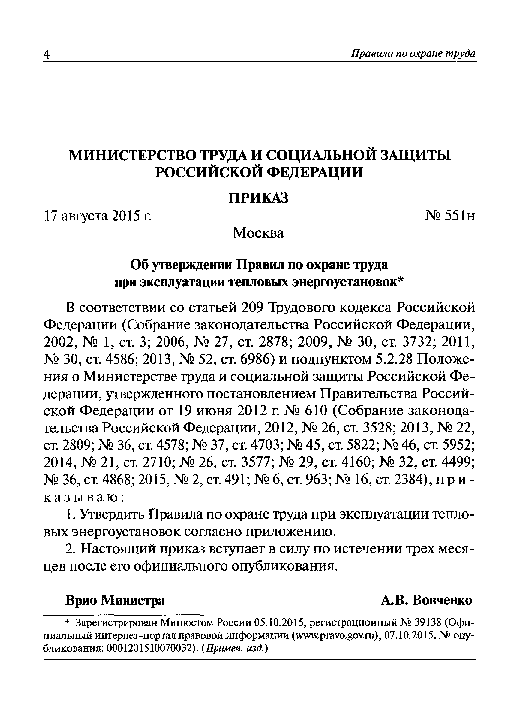 | Название рус.: | Правила по охране труда при эксплуатации тепловых энергоустановок |