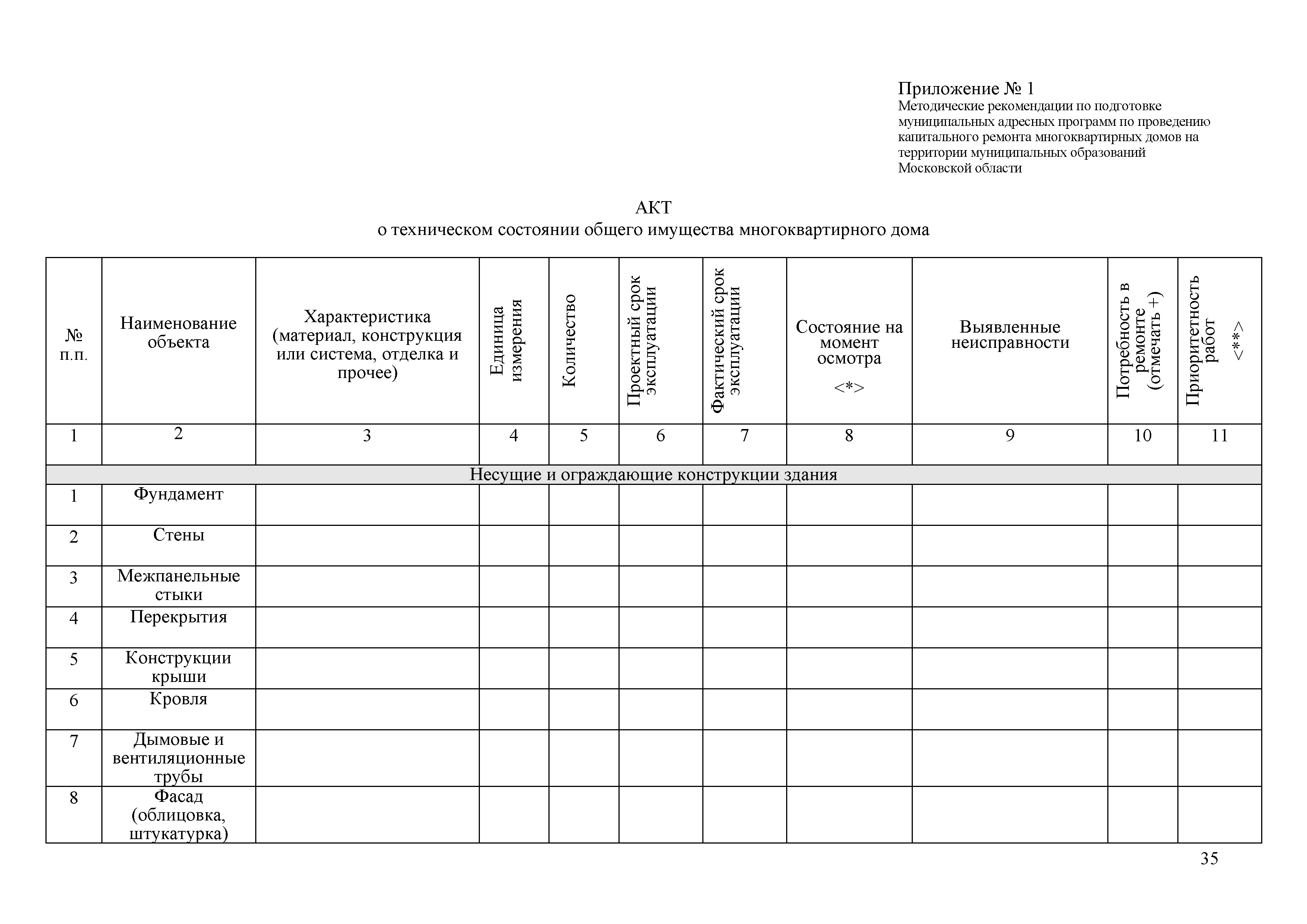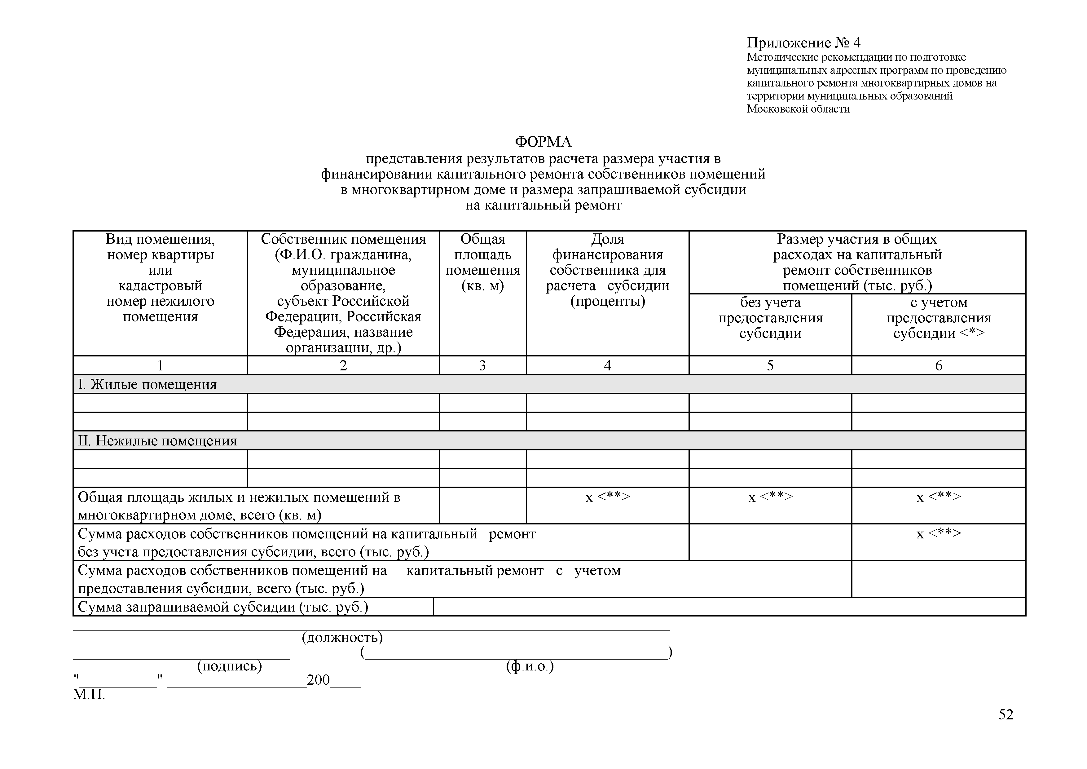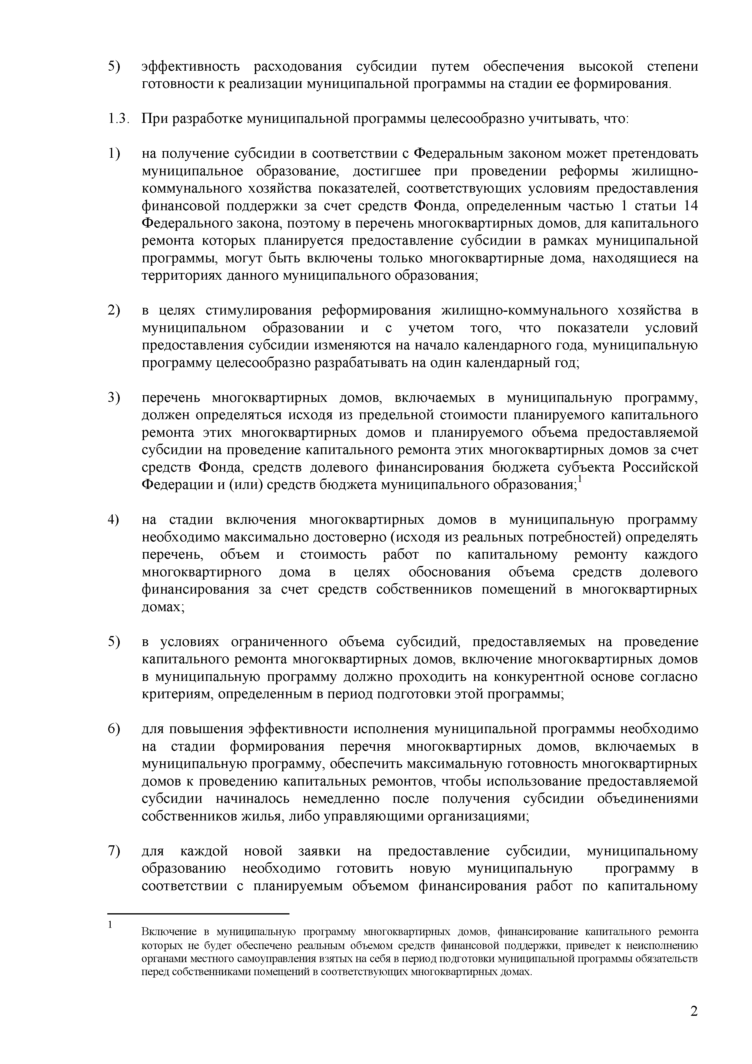 Методические рекомендации по подготовке муниципальных адресных программ по проведению капитального ремонта многоквартирных домов на территории муниципальных образований Московской области с использованием средств, предоставляемых в соответствии с Федеральным законом от 21.07.2007 г. № 185-ФЗ "О Фонде содействия реформированию жилищно-коммунального хозяйства"| Статус: | действует | | Название рус.: | Методические рекомендации по подготовке муниципальных адресных программ по проведению капитального ремонта многоквартирных домов на территории муниципальных образований Московской области с использованием средств, предоставляемых в соответствии с Федеральным законом от 21.07.2007 г. № 185-ФЗ "О Фонде содействия реформированию жилищно-коммунального хозяйства" | | Дата добавления в базу: | 12.02.2016 | | Дата актуализации: | 01.01.2021 | | Область применения: | Методические рекомендации разработаны в целях методического обеспечения подготовки муниципальными образованиями адресных программ по проведению капитального ремонта многоквартирных домов на территории муниципальных образований Московской области с использованием средств предоставляемых в соответствии с Федеральным законом от 21.07.2007 № 185-ФЗ "О Фонде содействия реформированию жилищно-коммунального хозяйства" | | Оглавление: | 1 Общие положения 2 Этапы разработки муниципальной программы 3 Цели муниципальной программы 4 Условия предоставления субсидии 5 Виды капитального ремонта общего имущества многоквартирных домов 6 Источники и объемы финансирования муниципальной адресной программы. Методика расчета размера субсидии 7 Порядок подачи обращений на включение многоквартирного дома в муниципальную программу и перечень документов, прилагаемых к этому обращению 8 Порядок подачи обращения муниципального образования на участие в региональной адресной программе и перечень документов, прилагаемых к этому обращению 9 Порядок включения многоквартирных домов в адресную программу муниципального образования по проведению капитального ремонта многоквартирных домов 10 Критерии оценки заявок для включения многоквартирных домов в муниципальную программу 11 Перечень требований к разработке дефектных ведомостей и смет на капитальный ремонт многоквартирных домом в Московской области Приложение 1. Акт о техническом состоянии общего имущества многоквартирного дома Приложение 2. Дефектная ведомость капитального ремонта многоквартирного дома Приложение 3. Протокол общего собрания собственников Приложение 4. Форма представления результатов расчета размера участия в финансировании капитального ремонта собственников помещений Приложение 5. Подвиды и перечень работ | | Утверждён: | Министерство жилищно-коммунального хозяйства Московской области