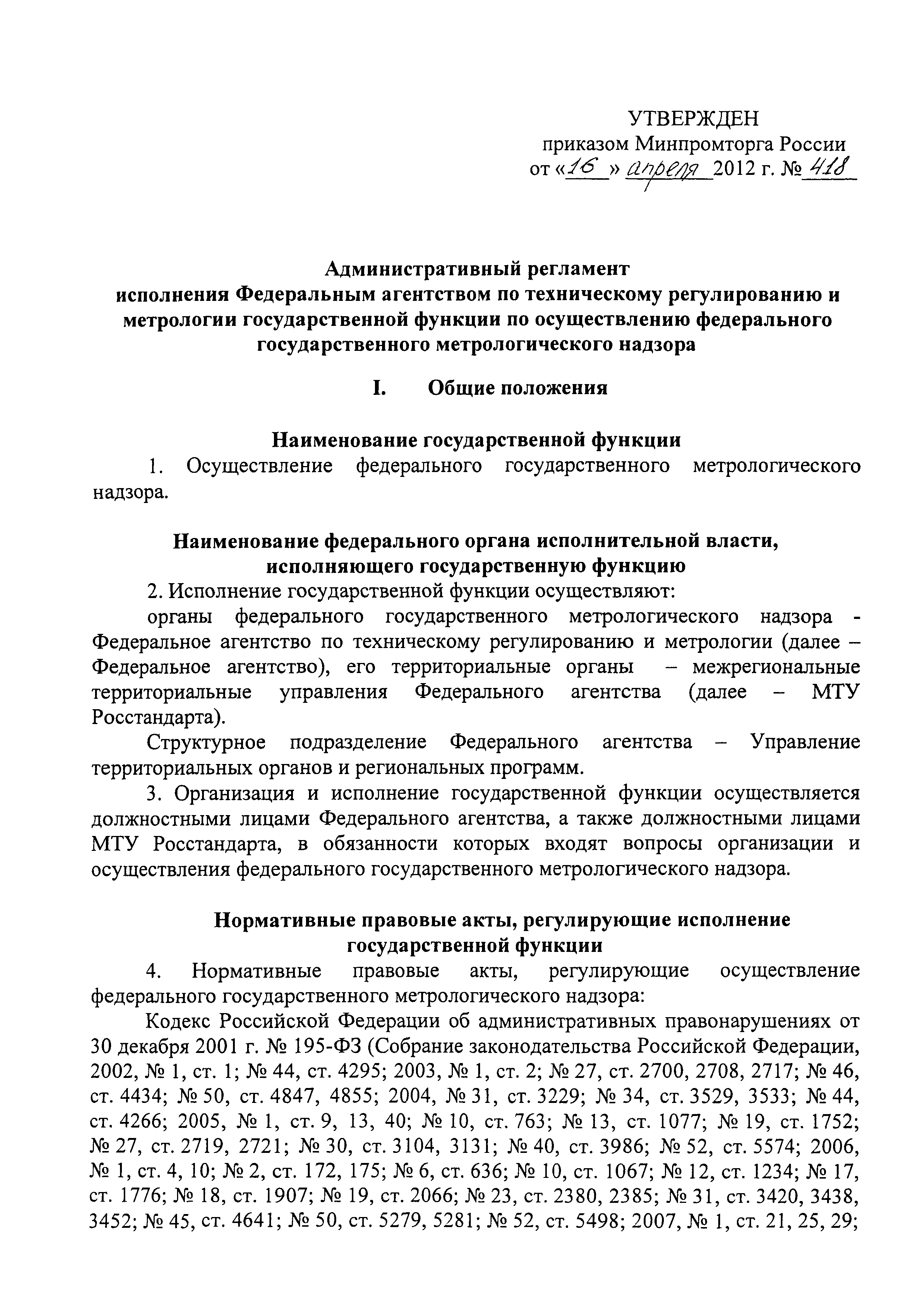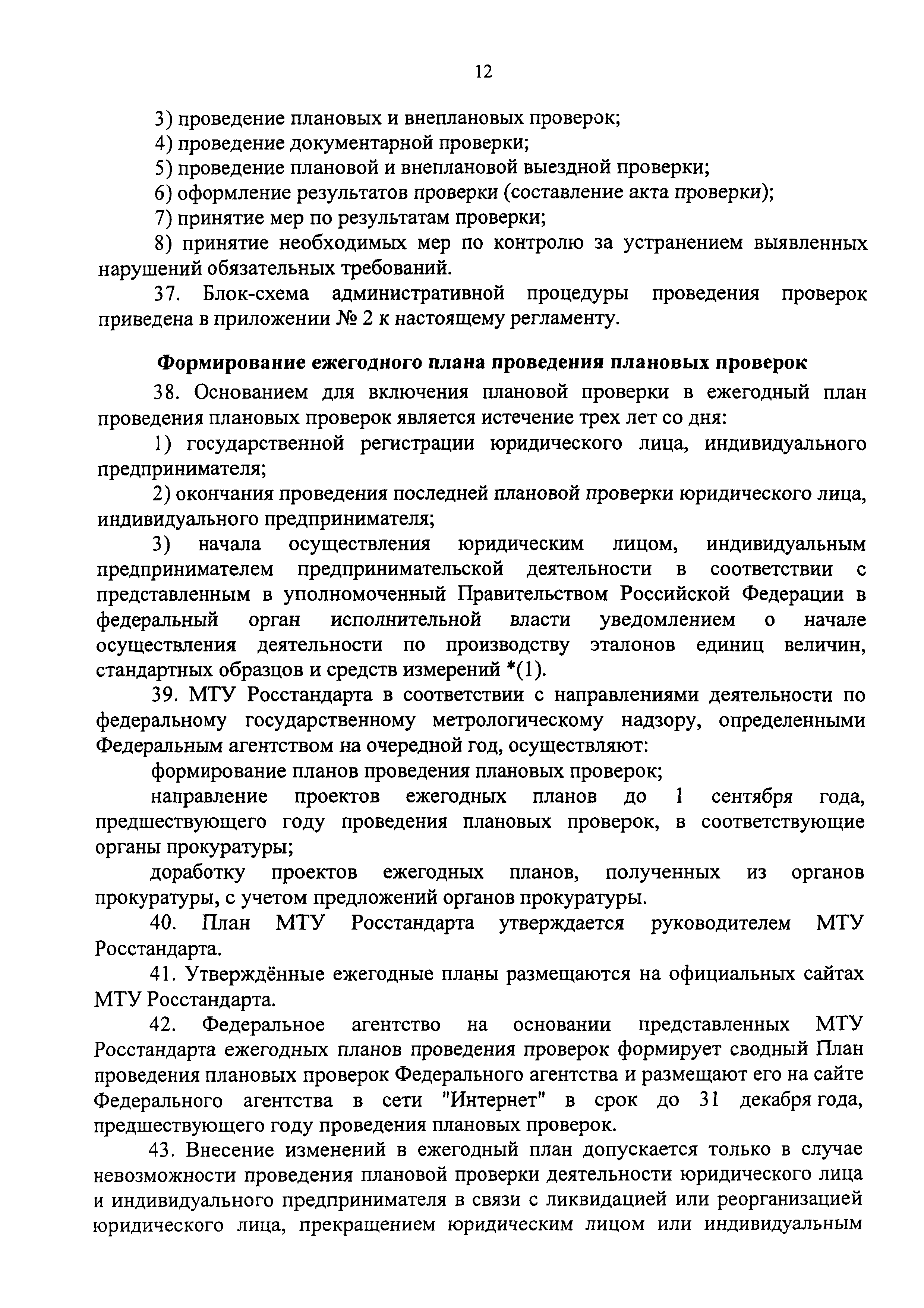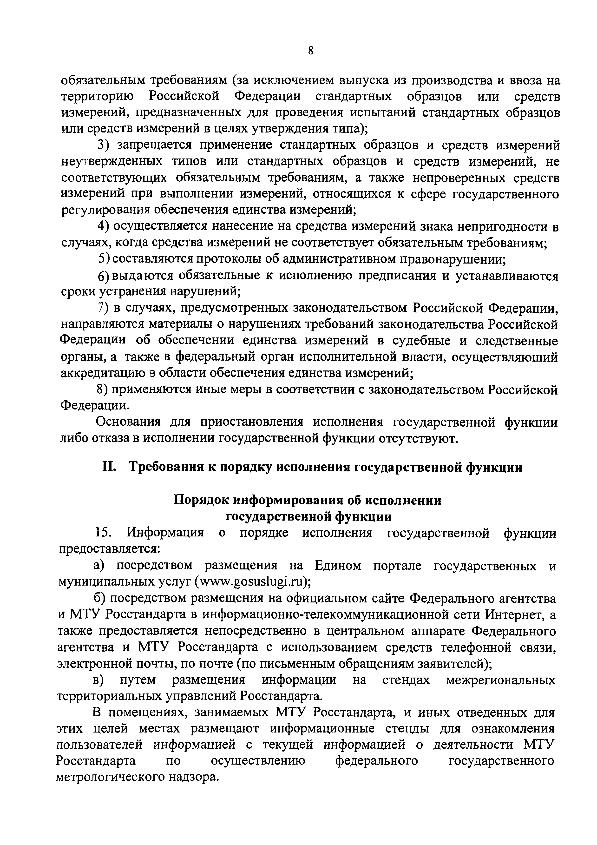 | Оглавление: | I. Общие положения II. Требования к порядку исполнения государственной функции III. Состав, последовательность и сроки выполнения административных процедур (действий), требования к порядку их выполнения, в том числе особенности выполнения административных процедур (действий) в электронной форме IV. Порядок и формы контроля за исполнением государственной функции V. Досудебный (внесудебный) порядок обжалования решений и действий (бездействия) органа, исполняющего государственную функцию, а также их должностных лиц Приложение № 1. Межрегиональные территориальные управления Госстандарта (МТУ Росстандарта) Приложение № 2. Блок-схема административной процедуры проведения проверок Приложение № 3. Блок-схема административной процедуры оформления результатов проверки и принятия мер по результатам проверки |