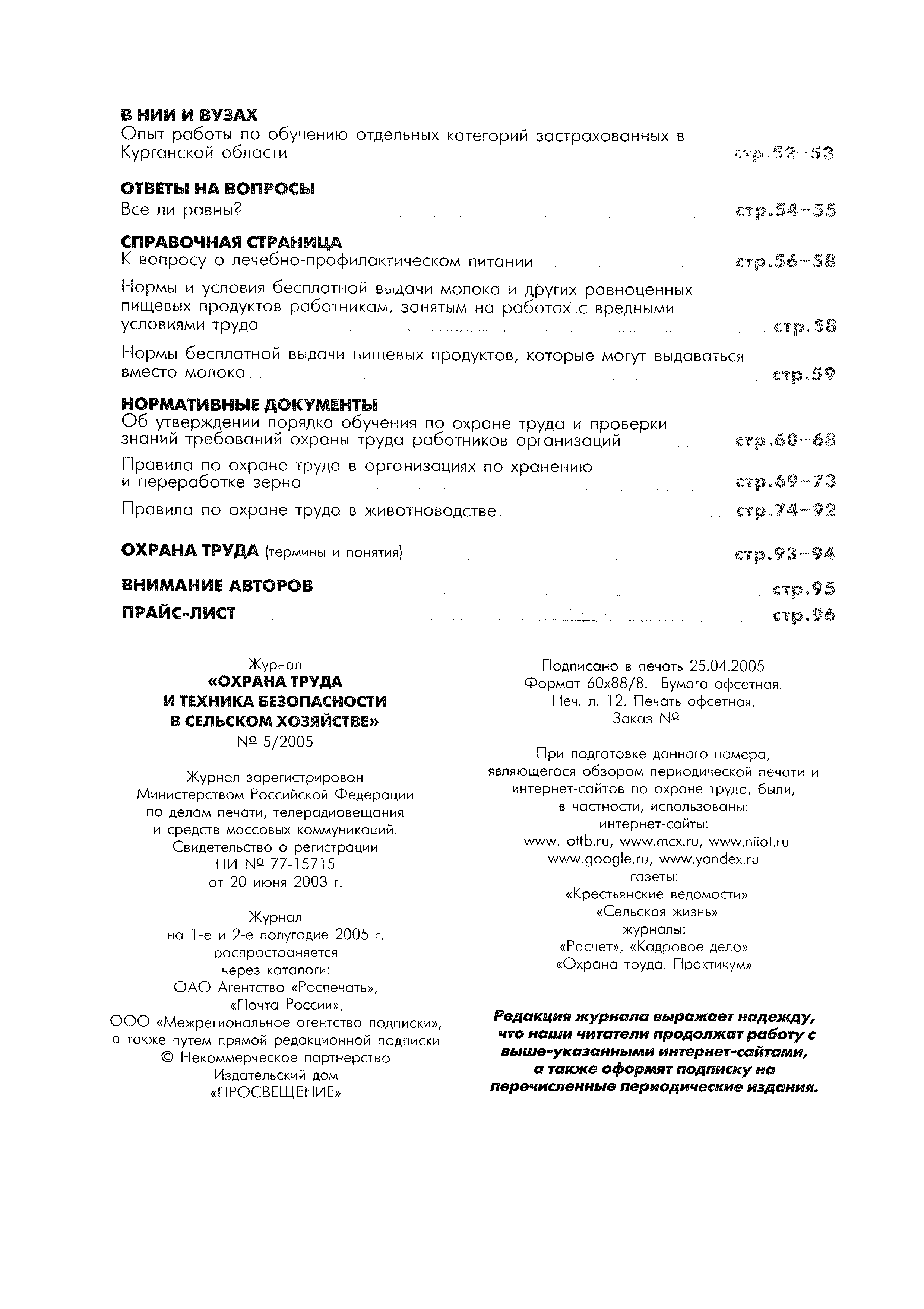 | Издан: | Издательский дом Просвещение (2005 г. (Журнал "Охрана труда и техника безопасности в сельском хозяйстве" № 5)) |