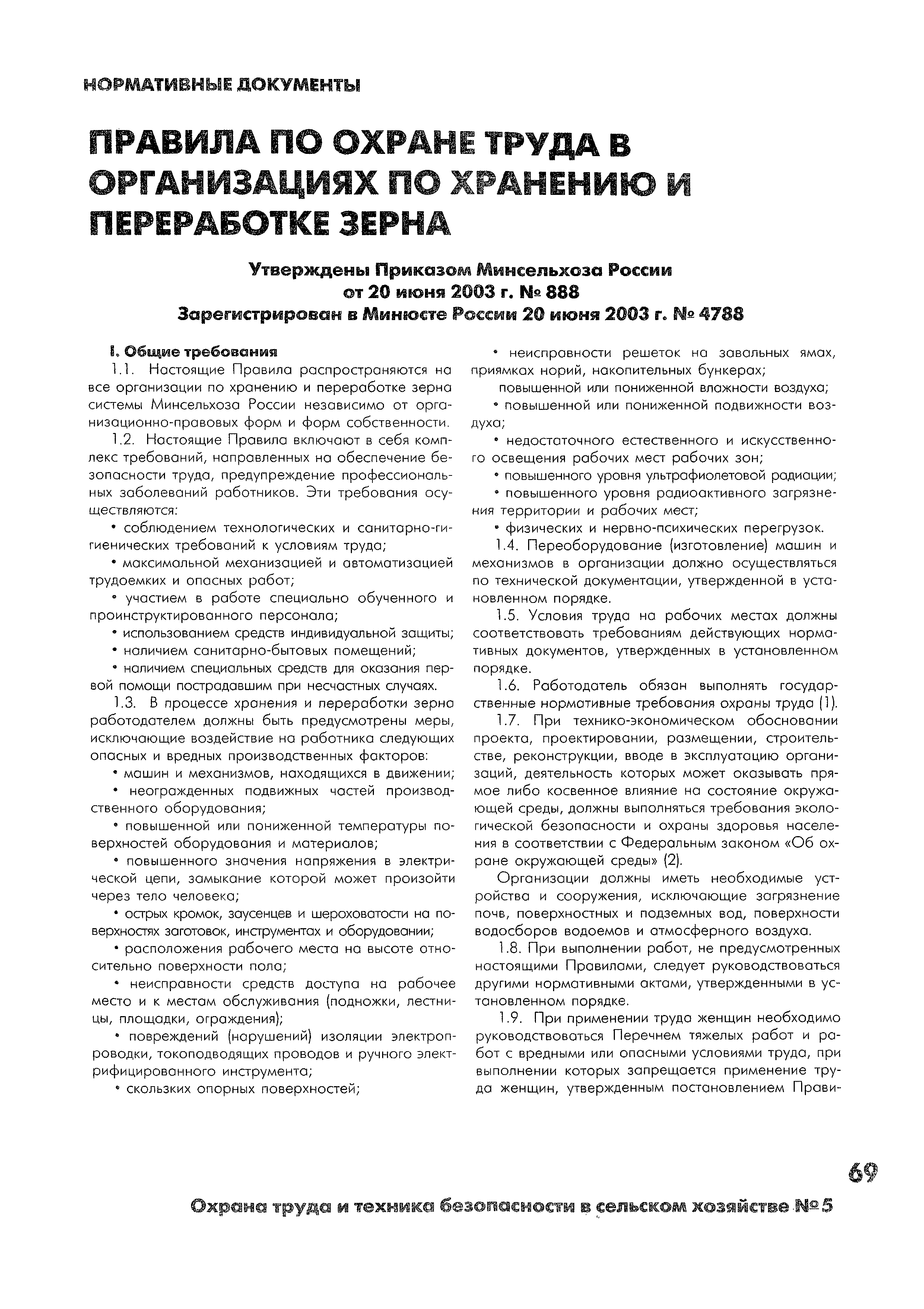 | Название рус.: | Правила по охране труда в организациях по хранению и переработке зерна |