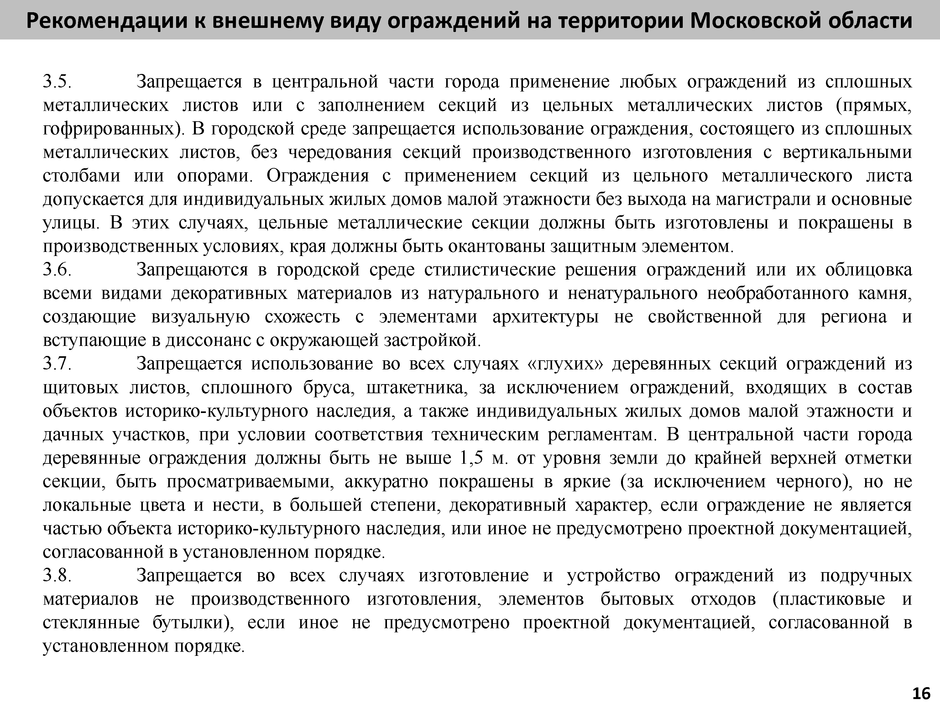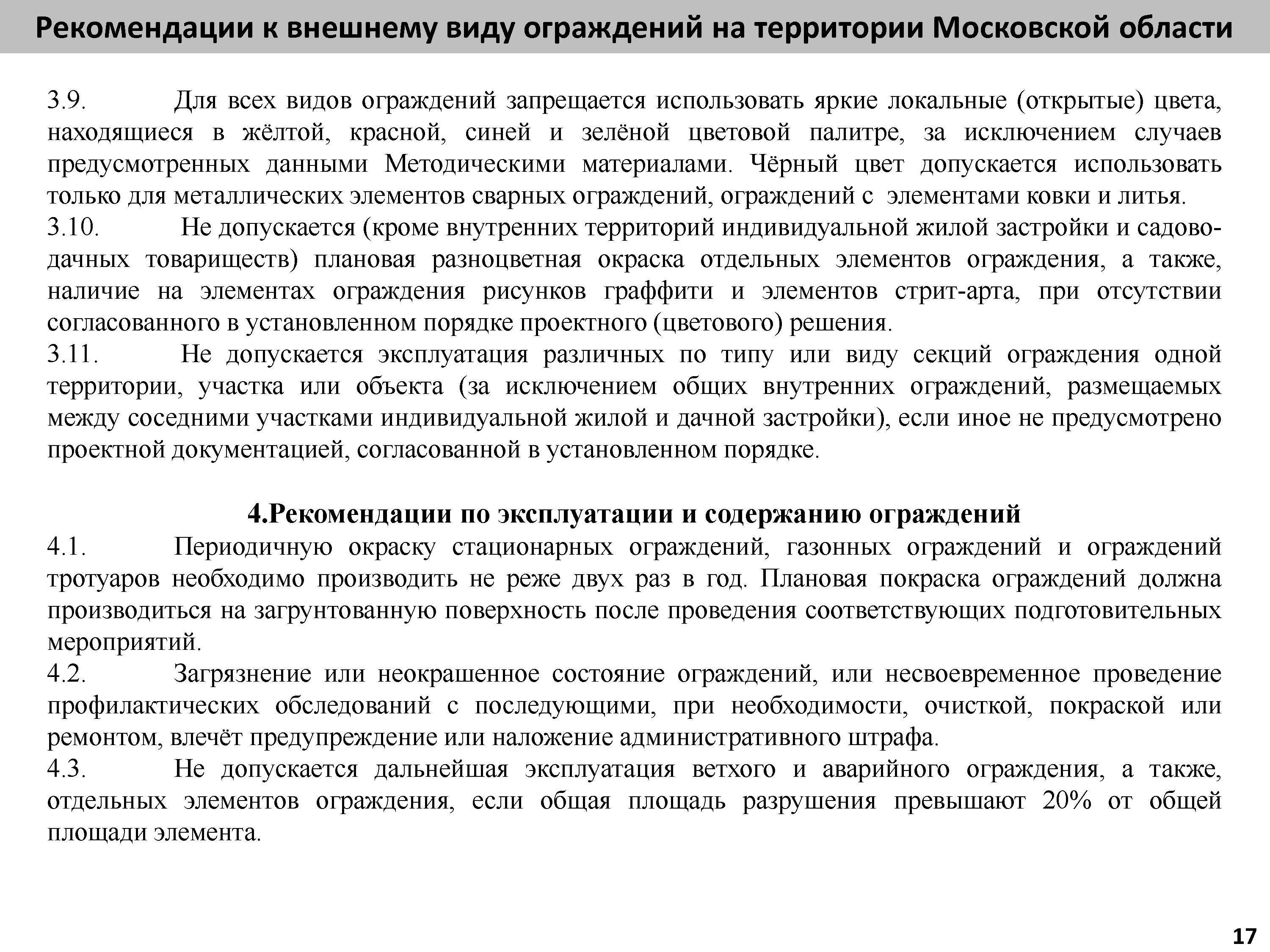 | Название рус.: | Методические рекомендации по проектированию и внешнему виду ограждений, размещаемых на территории Московской области |