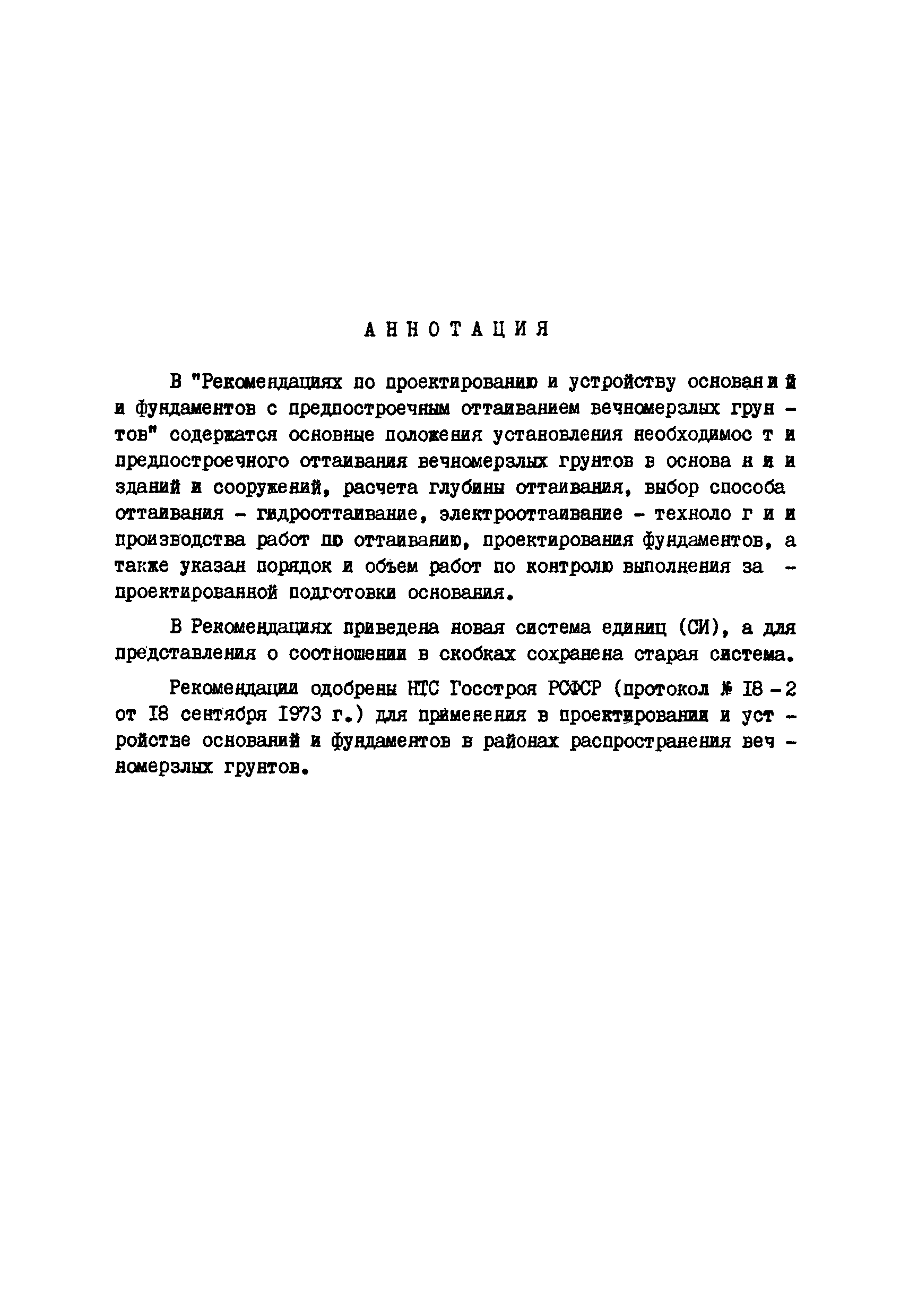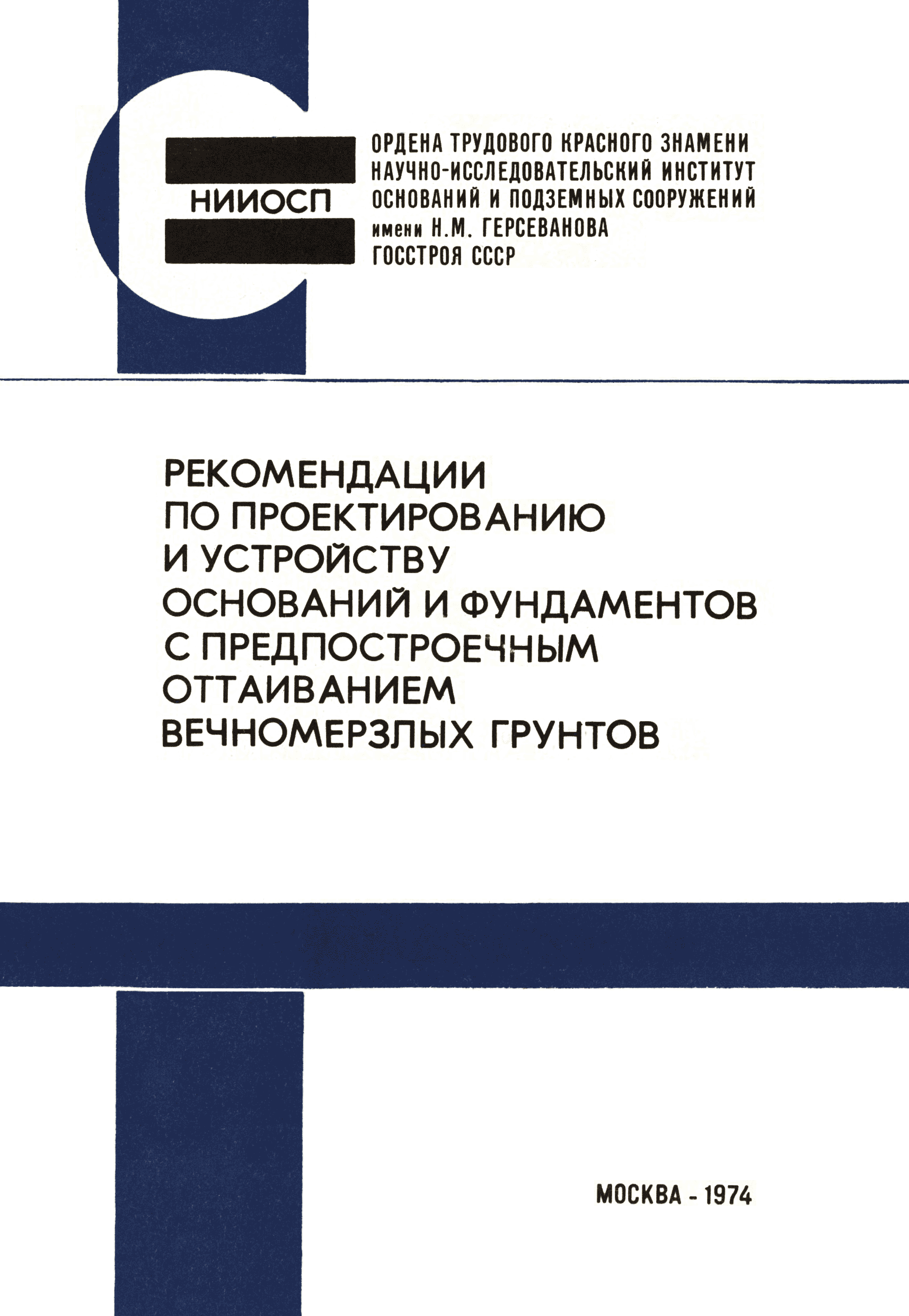| Название рус.: | Рекомендации по проектированию и устройству оснований и фундаментов с предпостроечным оттаиванием вечномерзлых грунтов |