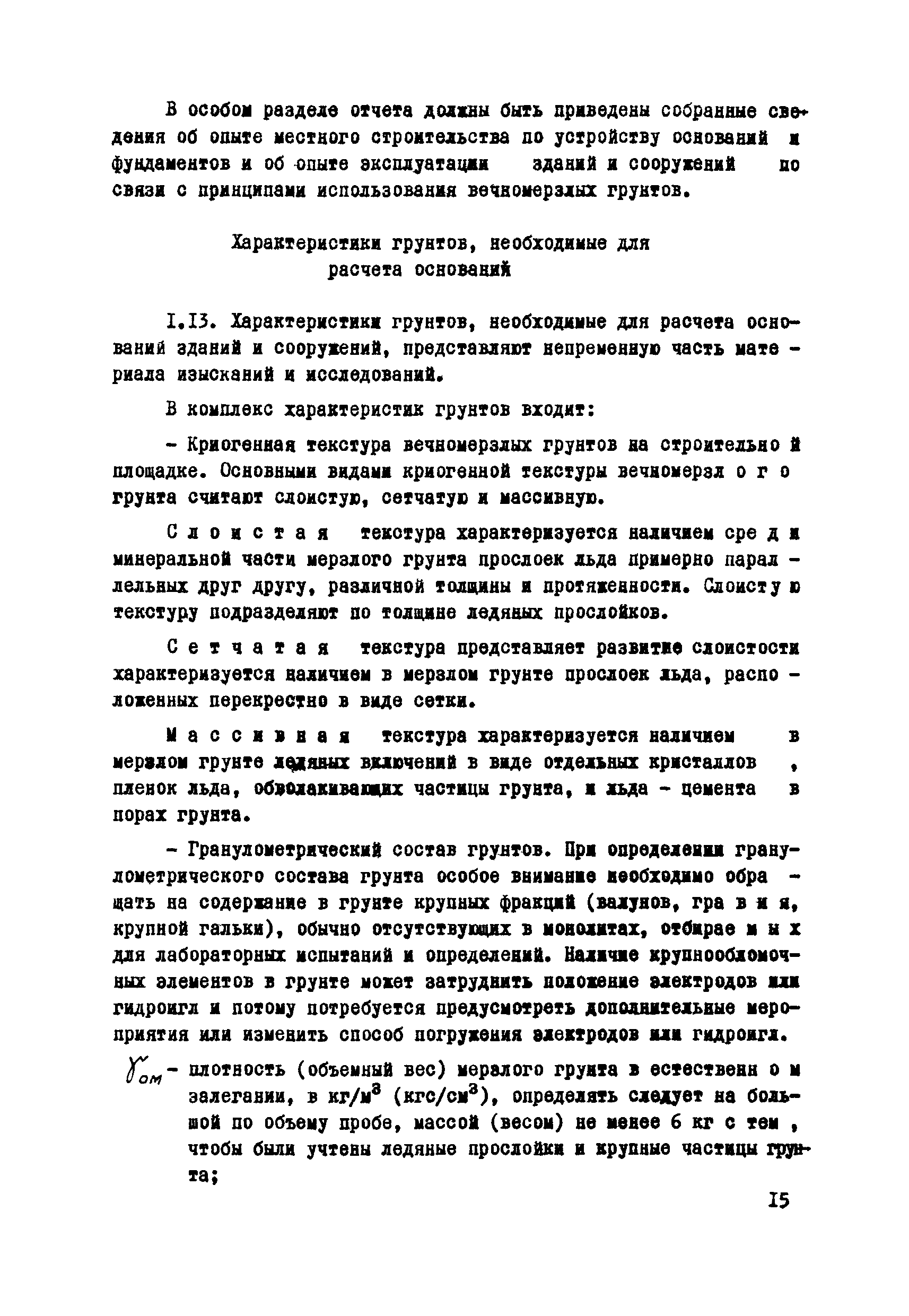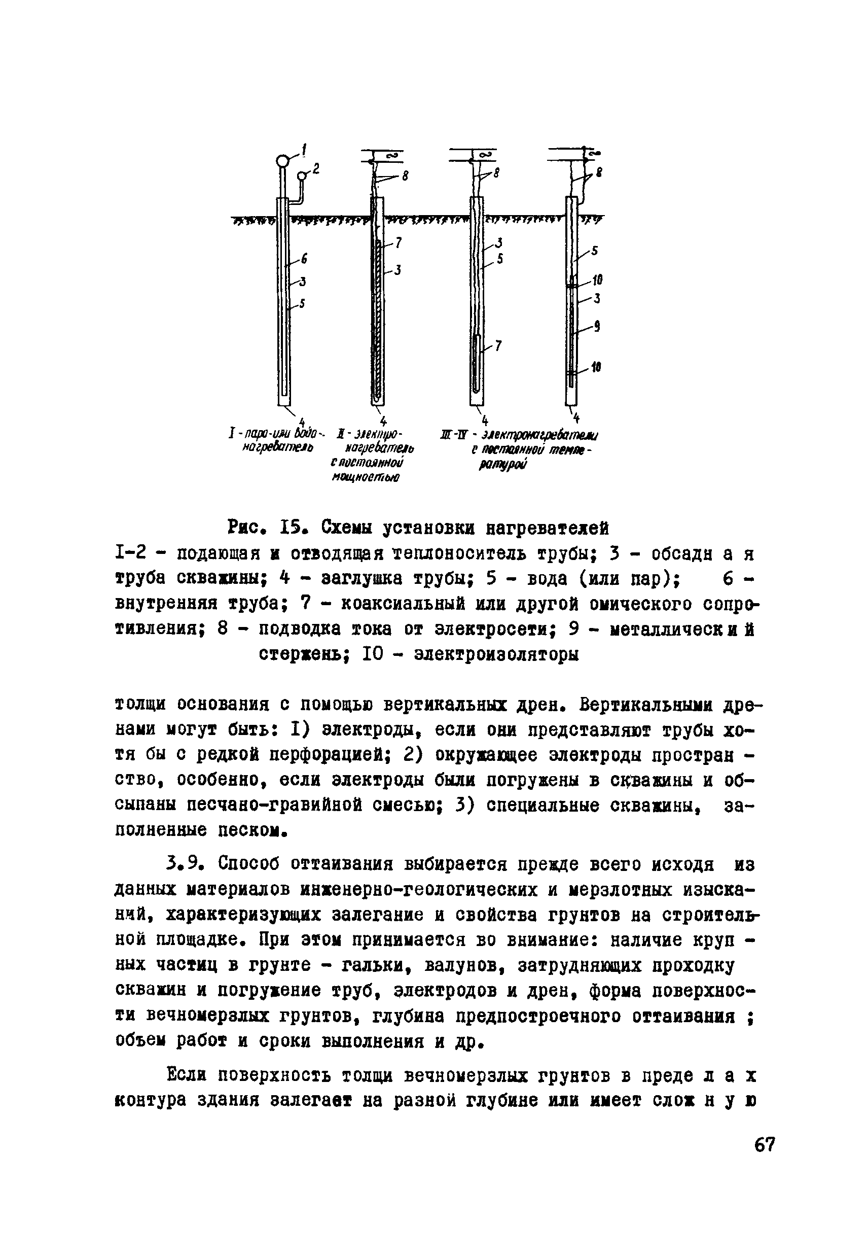 | Оглавление: | Глава I. Основные предпосылки проектирования оснований и фундаментов с предпостроечным оттаиванием вечномерзлых грунтов Общие положения Предварительное определение необходимости предпостроечного оттаивание вечномерзлых грунтов в основании Требования к инженерно-геокриологическим (инженерно-геологическим и мерзлотным) изысканиям и исследованиям Характеристики грунтов, необходимые для расчета оснований Глава II. Проектирование оснований и фундаментов с предпостроечным оттаиванием вечномерзлых грунтов Общий порядок проектирования основания Расчет зоны оттаивания вечномерзлых грунтов в основании проектируемого здания Примеры расчета Расчет осадки оттаивающего основания Определение необходимой глубины предпостроечного оттаивания основания Расчет несущей способности оснований, сложенных оттаявшими грунтами Учет влияния на устойчивость здания последующего в эксплуатационный период оттаивания нижней части основания Типы фундаментов, применяемых на оттаявших грунтах Глава III. Проектирование предпостроечного оттаивания вечномерзлых грунтов в основании и производство работ Основные положения Способы оттаивания вечномерзлых грунтов в основании и условиях их применения Проектирование гидрооттаивания Проектирование электрооттаивания Выбор способа оттаивания мерзлых грунтов Организация работ по предпостроечному оттаиванию мерзлых грунтов Электрооттаивание Гидрооттаивание Контроль выполнения работ Глава IV. Техника безопасности Глава V. Основные положения правил эксплуатации зданий Приложения |