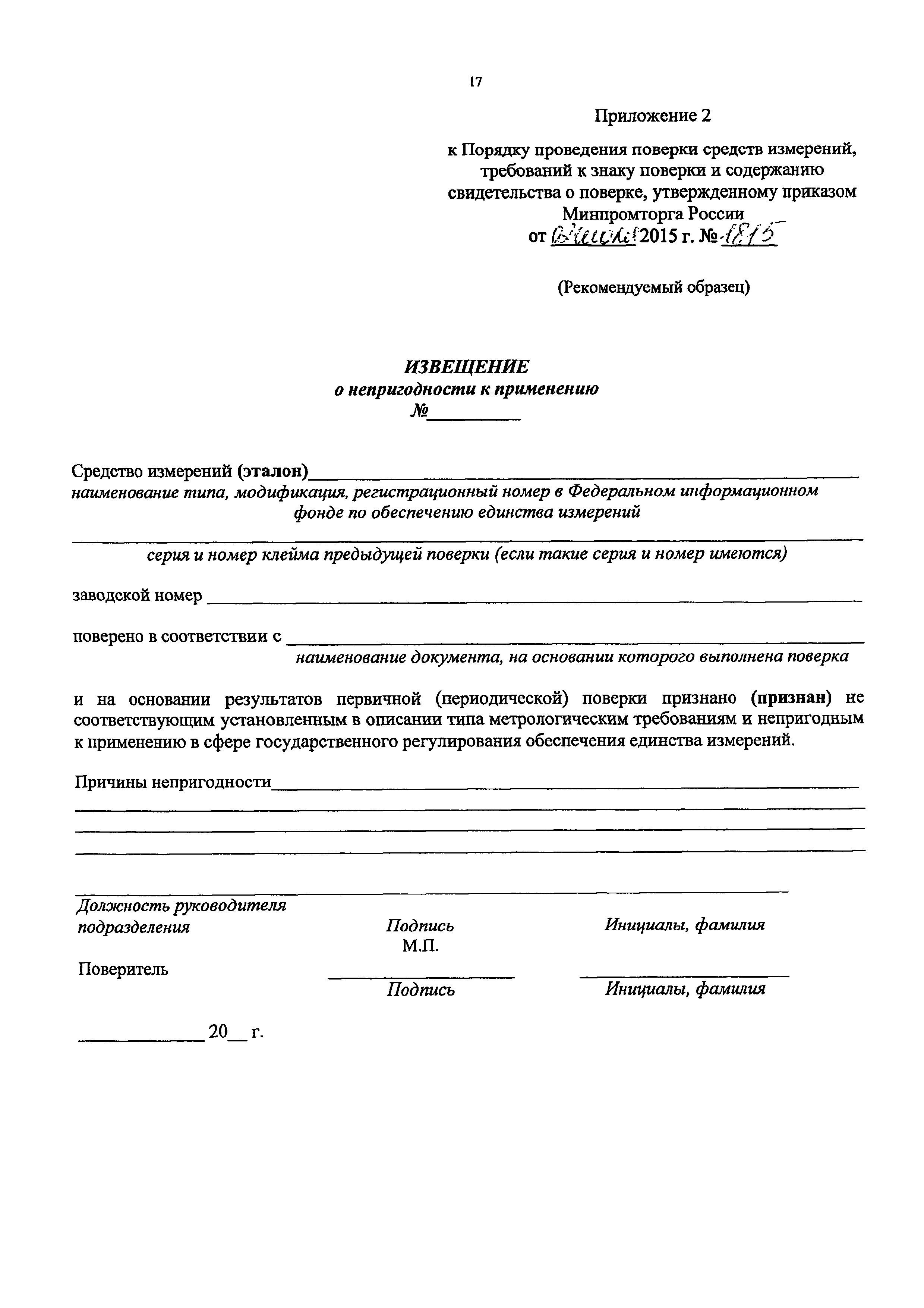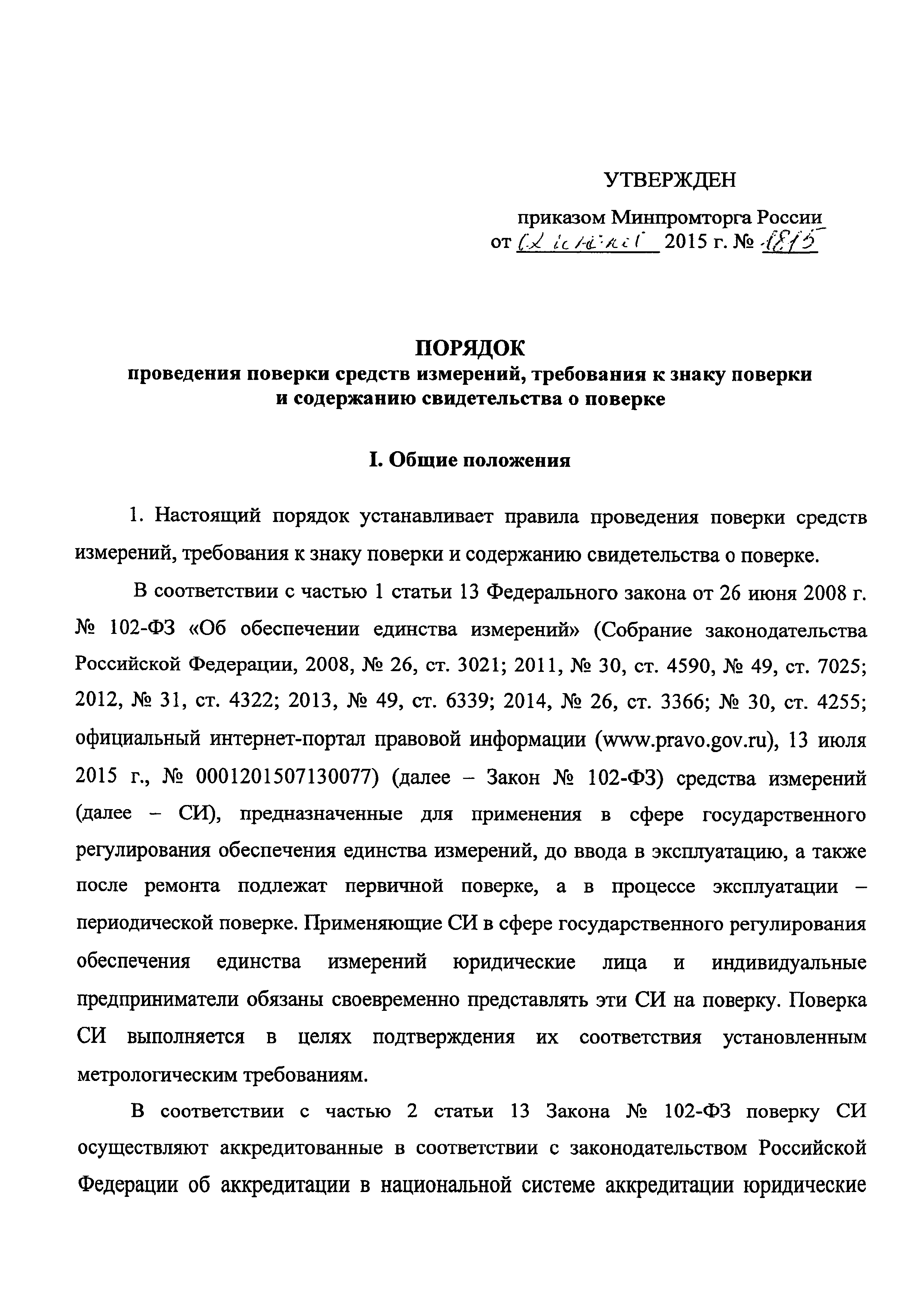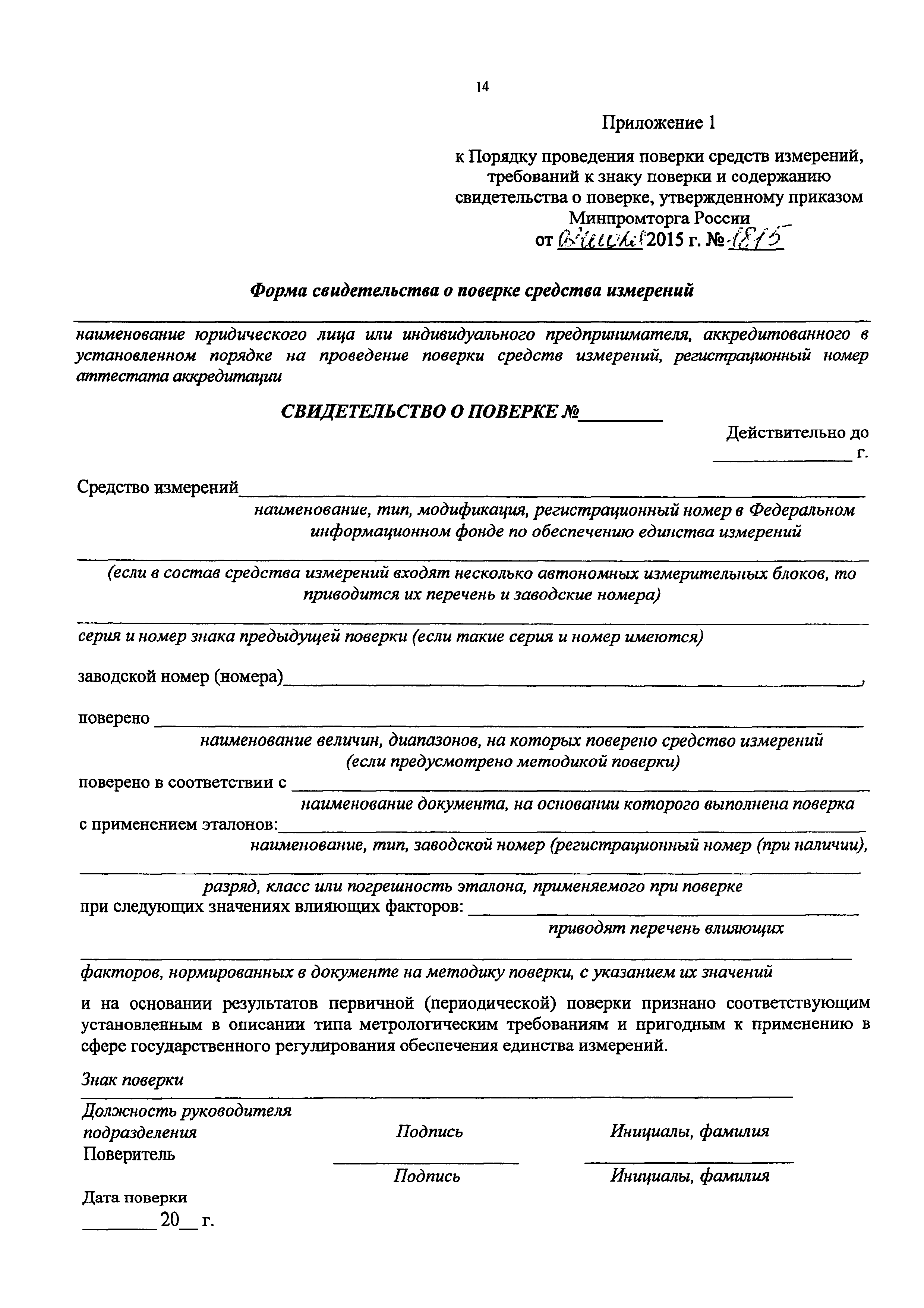 | Название рус.: | Порядок проведения поверки средств измерений, требования к знаку поверки и содержанию свидетельства о поверке |