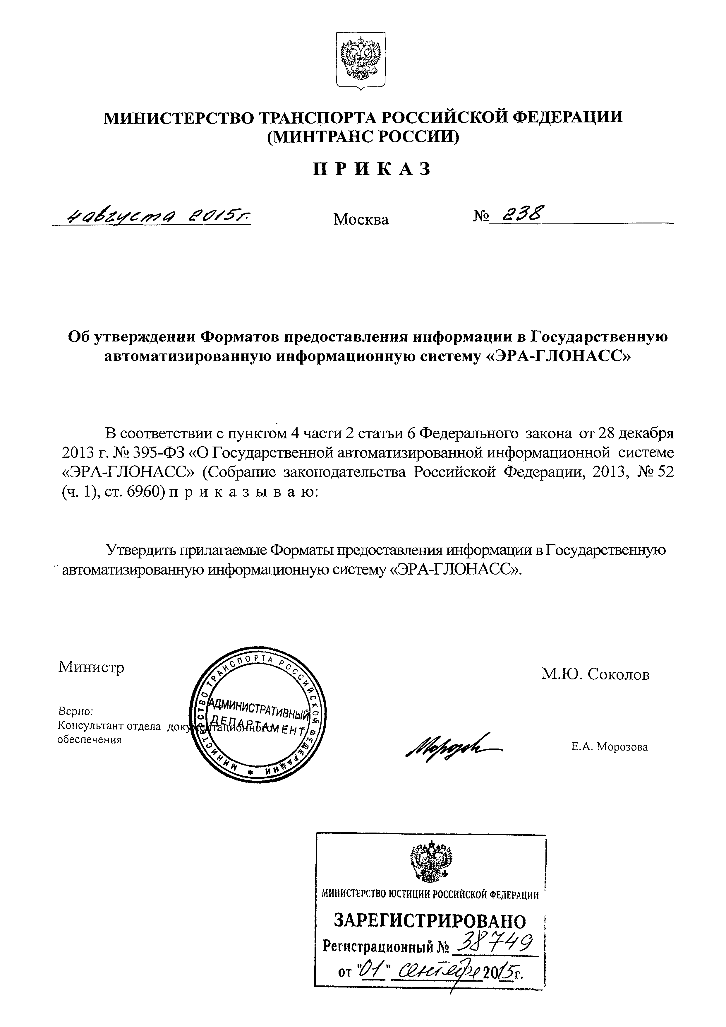 | Утверждён: | 04.08.2015 Министерство транспорта Российской Федерации (Russian Federation Ministry of Transportation 238)