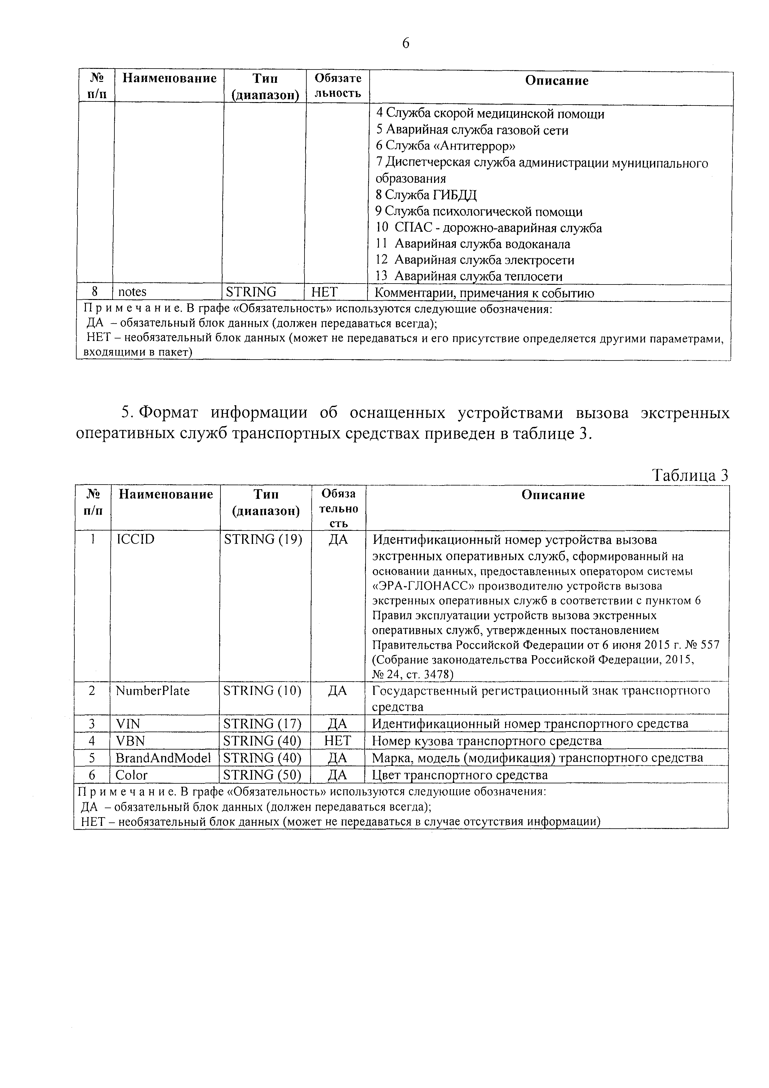 | Область применения: | Форматы предоставления информации в Государственную автоматизированную информационную систему "ЭРА-ГЛОНАСС" предназначены для обеспечения единообразия при предоставлении информации в систему "ЭРА-ГЛОНАСС" обладателями указанной информации |