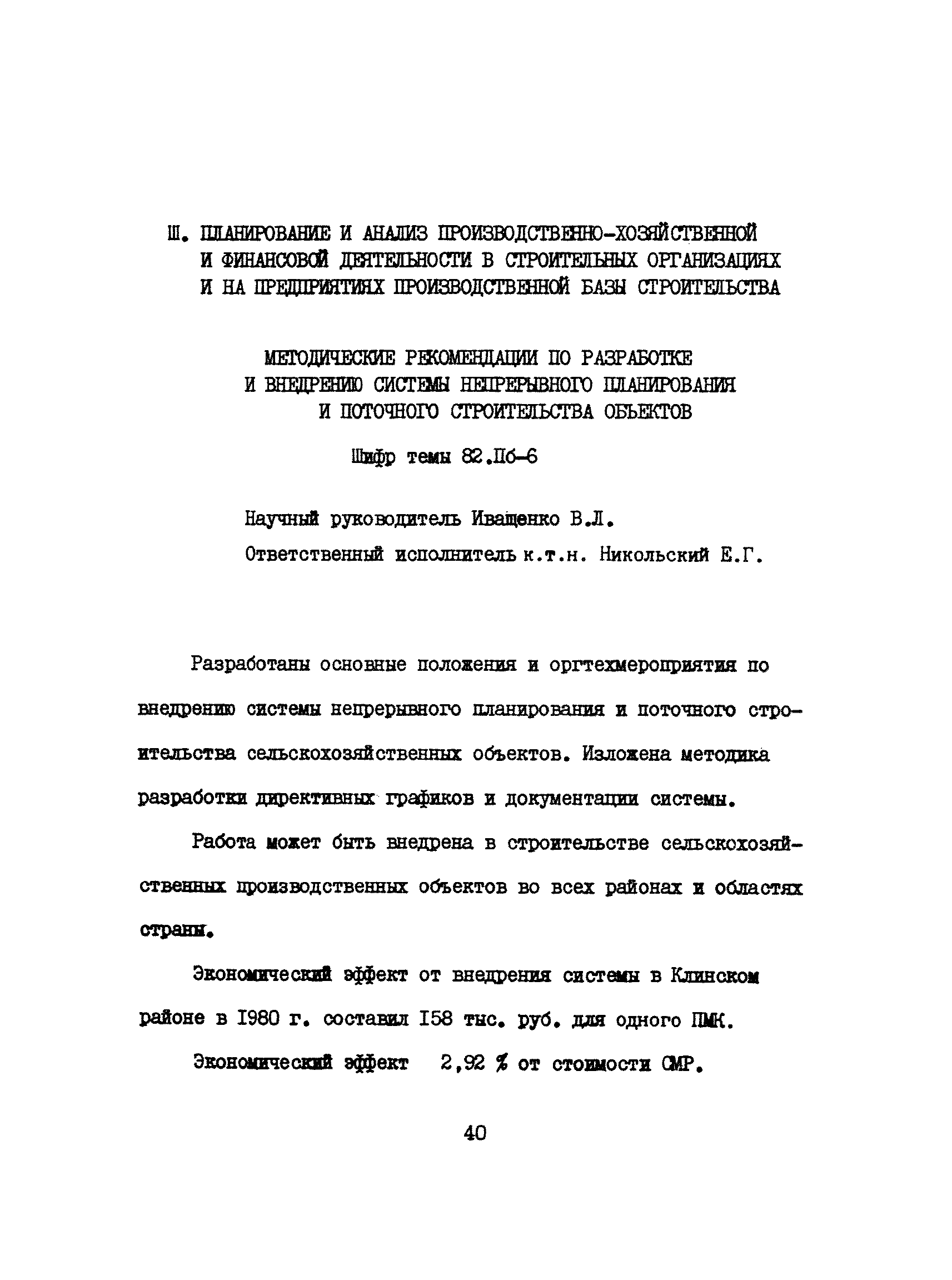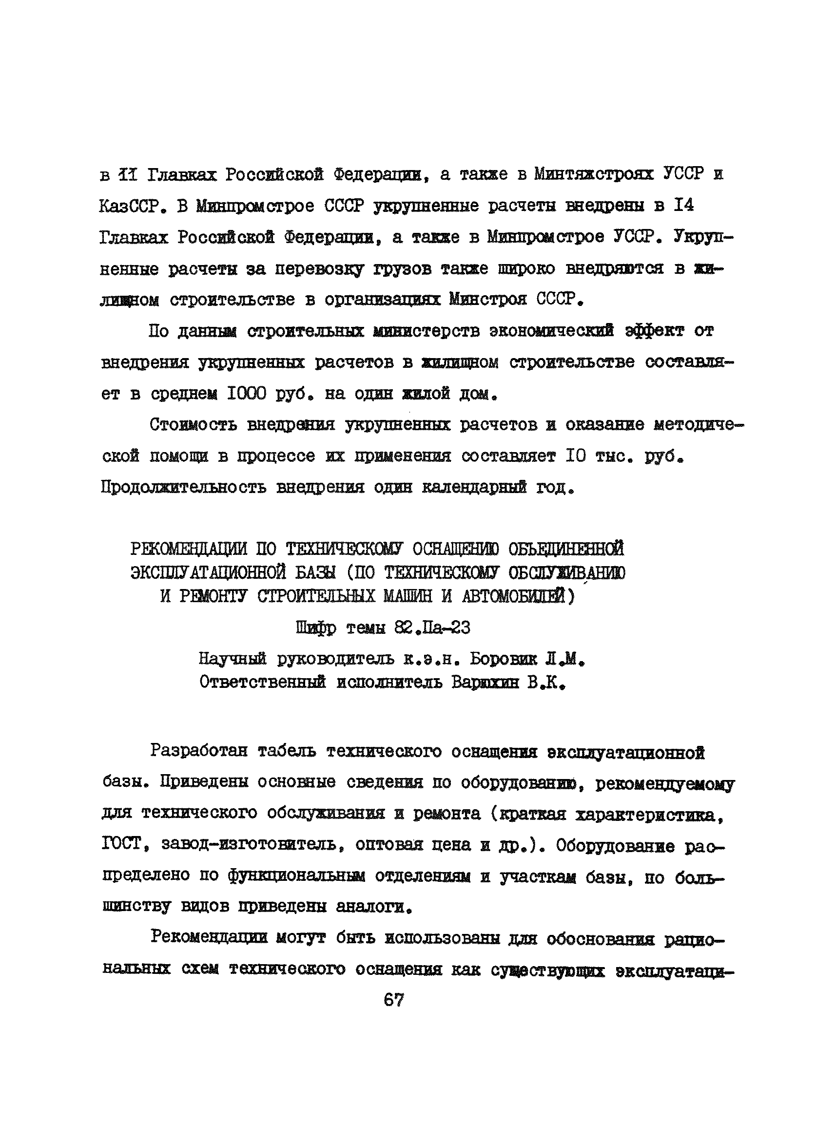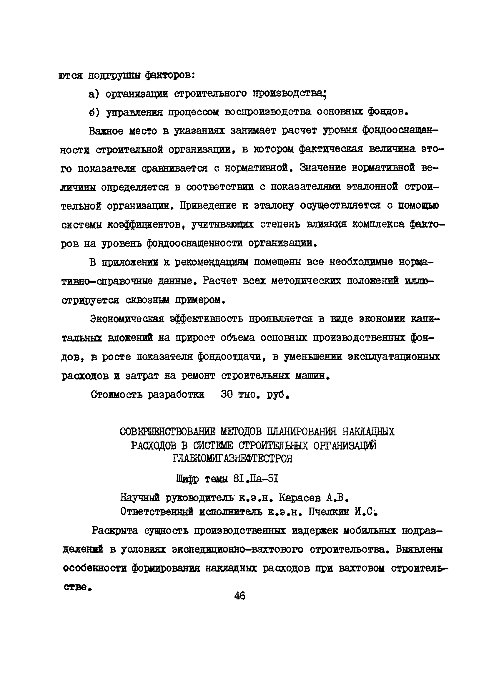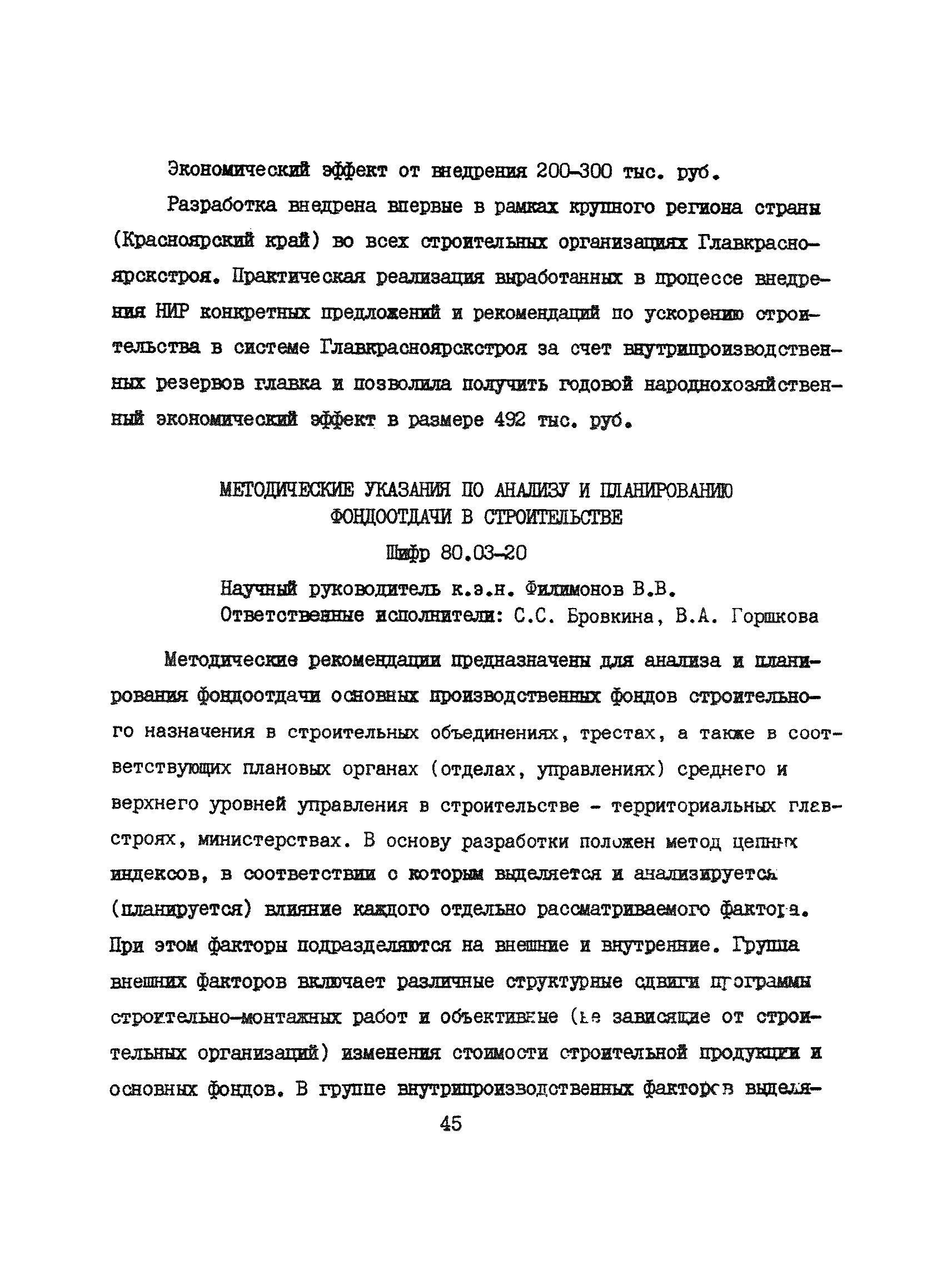 Аннотации законченных научно-исследовательских работ, рекомендуемых для широкого внедрения в строительное производство и на предприятиях строительной индустрии| Статус: | справочные материалы, мп, тпр | | Название рус.: | Аннотации законченных научно-исследовательских работ, рекомендуемых для широкого внедрения в строительное производство и на предприятиях строительной индустрии | | Дата добавления в базу: | 12.02.2016 | | Дата актуализации: | 01.01.2021 | | Область применения: | Аннотации предназначены для инженерно-технических работников строительных министерств и ведомств, строительно-монтажных организаций, оргтехстроев и предприятий строительной индустрии. | | Оглавление: | I. Управление строительными организациями и предприятиями производственной базы строительства II. Совершенствование организации строительного производства III. Планирование и анализ производственно-хозяйственной и финансовой деятельности в строительных организациях и на предприятиях производственной базы строительства IV. Совершенствование качества строительства и строительных конструкций и деталей V. определение потребности и планирование комплектных поставок строительных деталей и конструкций VI. Социальные факторы повышения эффективности деятельности строительных и обслуживающих строительство организаций и предприятий производственной базы | | Разработан: | МИСИ им. В.В. Куйбышева