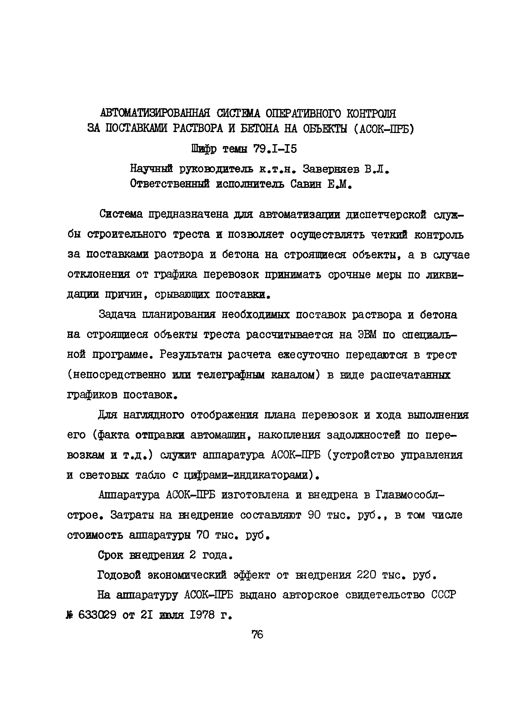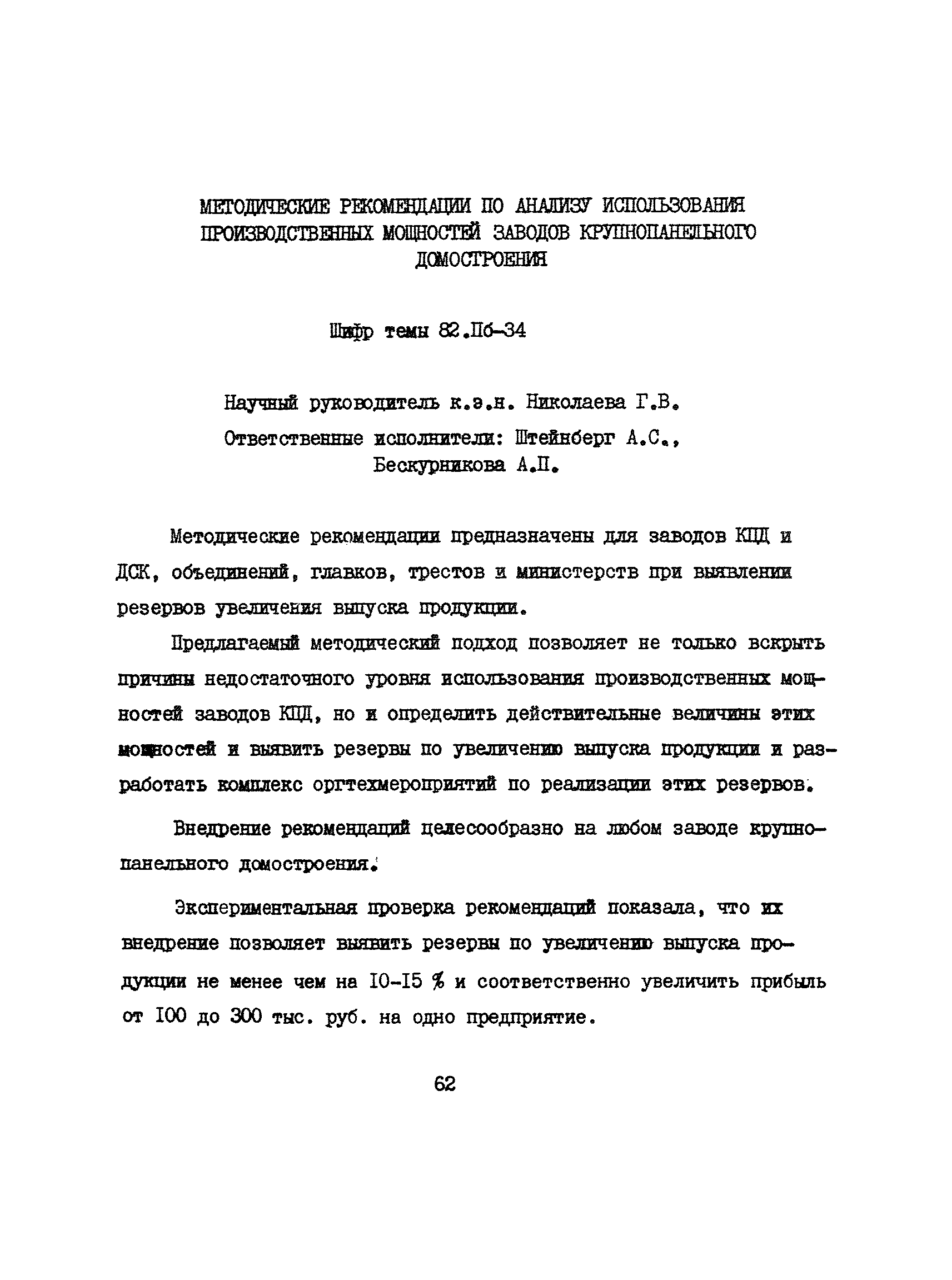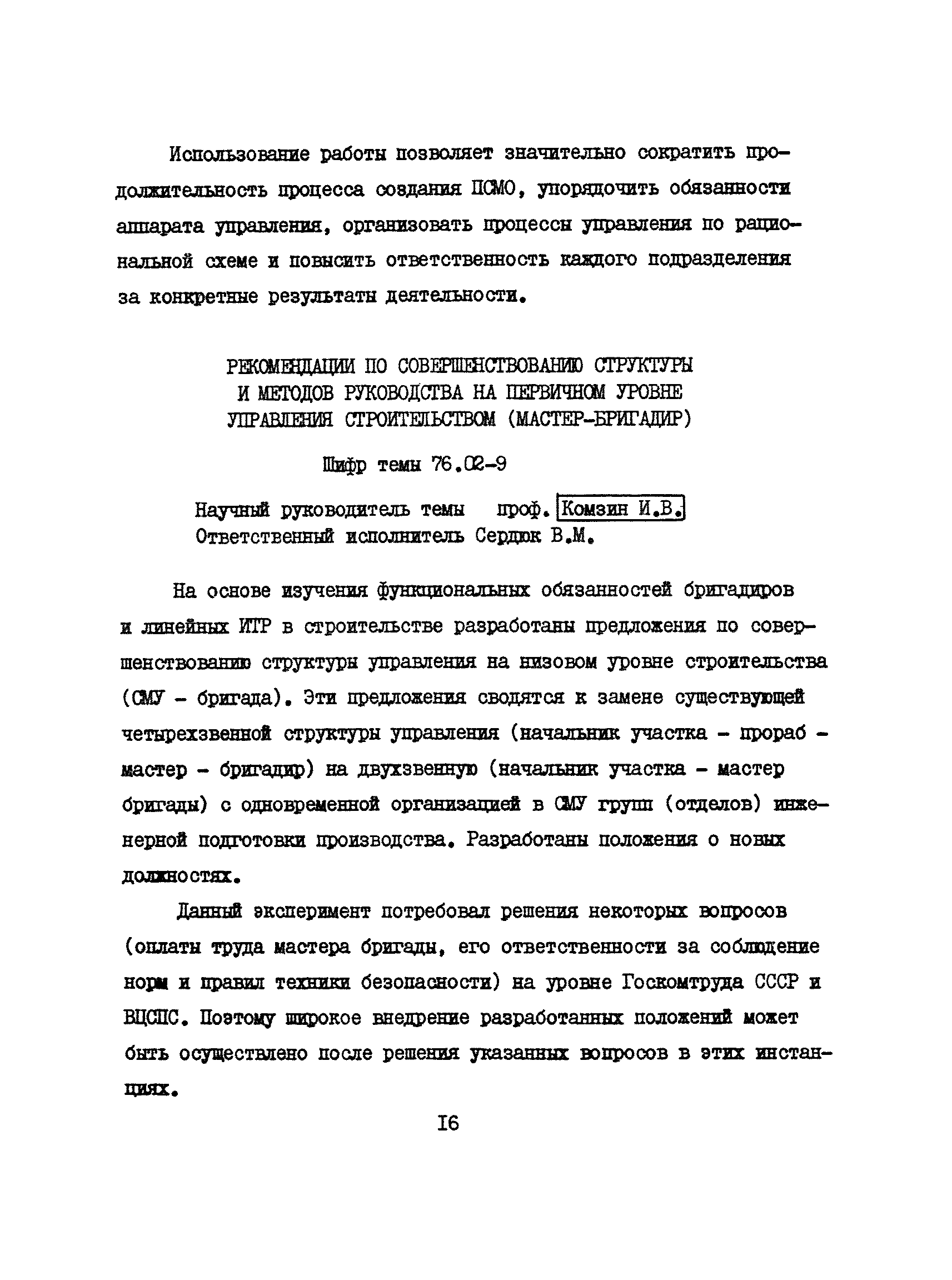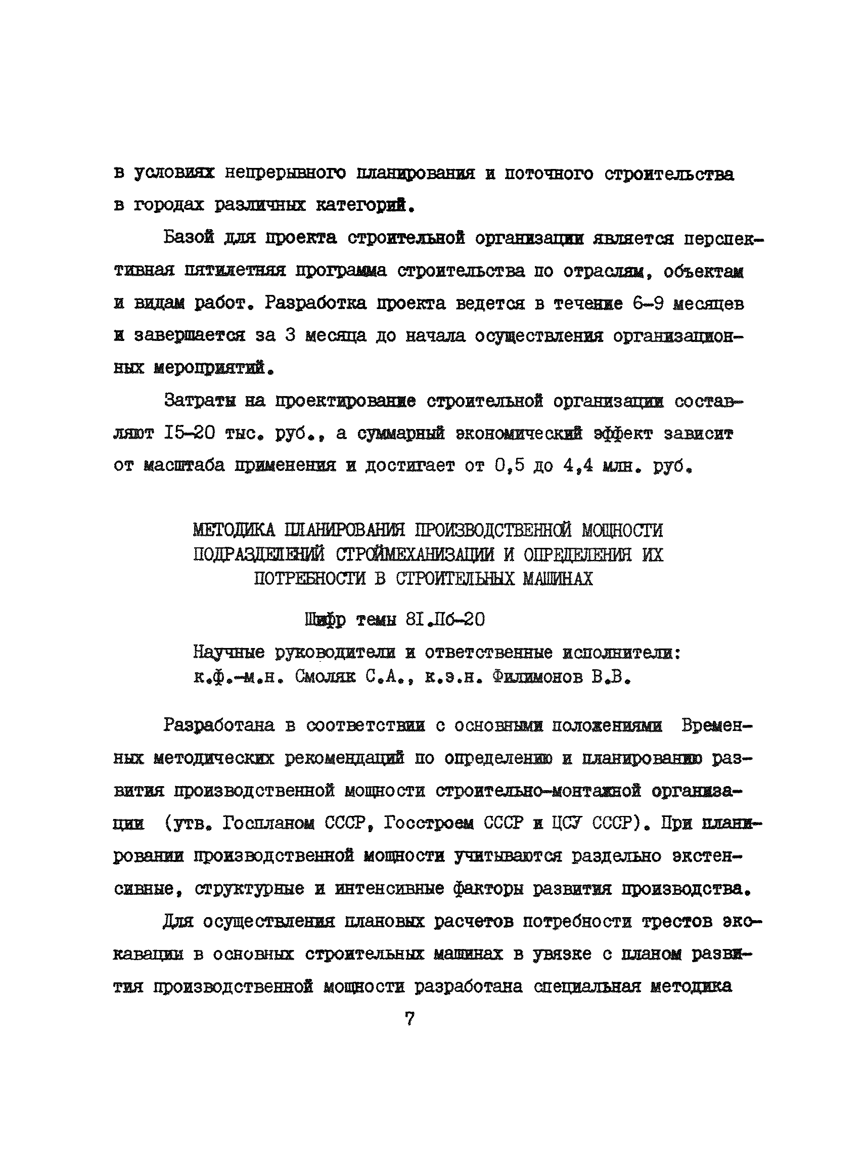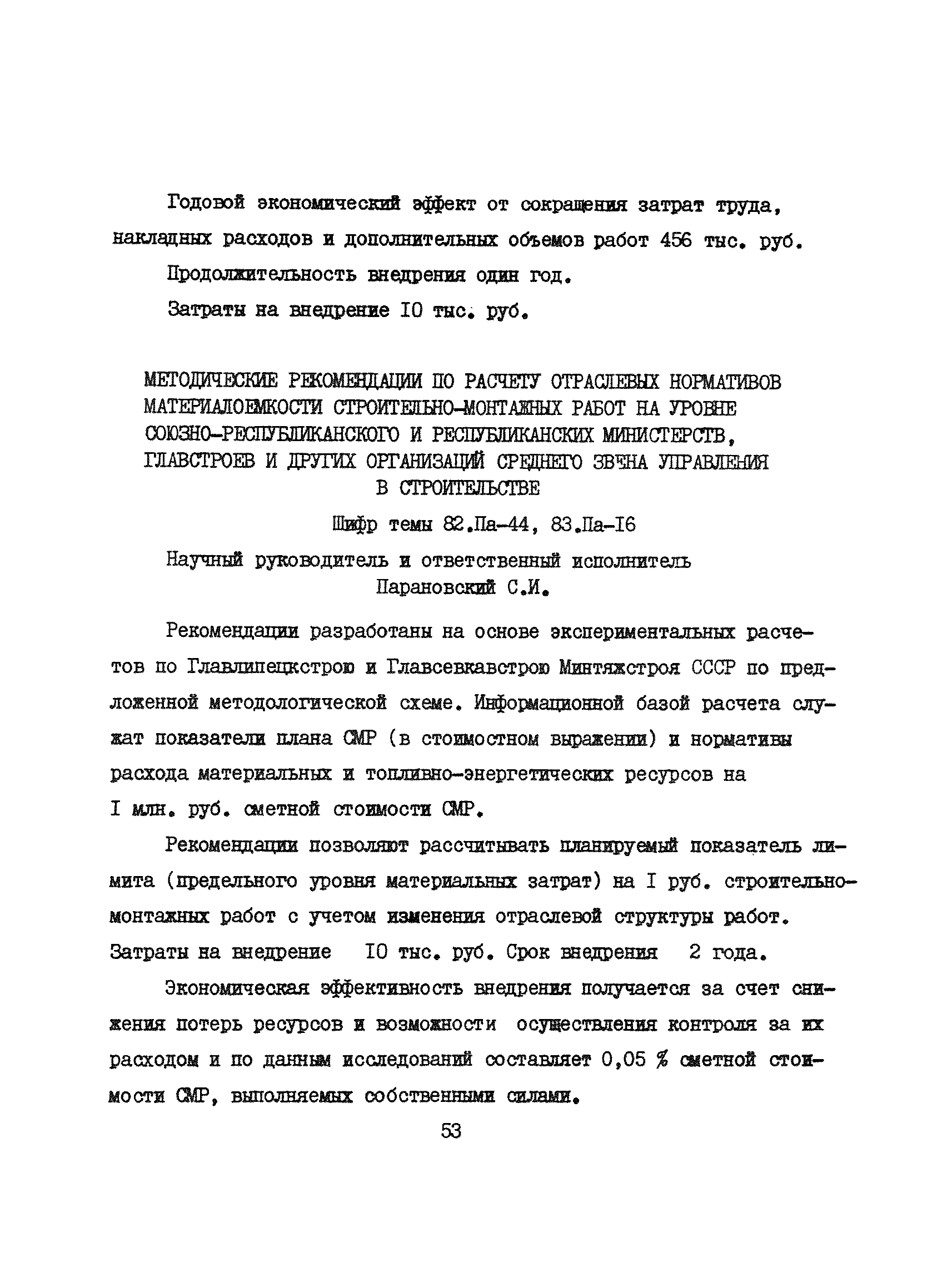 Аннотации законченных научно-исследовательских работ, рекомендуемых для широкого внедрения в строительное производство и на предприятиях строительной индустрии| Статус: | справочные материалы, мп, тпр | | Название рус.: | Аннотации законченных научно-исследовательских работ, рекомендуемых для широкого внедрения в строительное производство и на предприятиях строительной индустрии | | Дата добавления в базу: | 12.02.2016 | | Дата актуализации: | 01.01.2021 | | Область применения: | Аннотации предназначены для инженерно-технических работников строительных министерств и ведомств, строительно-монтажных организаций, оргтехстроев и предприятий строительной индустрии. | | Оглавление: | I. Управление строительными организациями и предприятиями производственной базы строительства II. Совершенствование организации строительного производства III. Планирование и анализ производственно-хозяйственной и финансовой деятельности в строительных организациях и на предприятиях производственной базы строительства IV. Совершенствование качества строительства и строительных конструкций и деталей V. определение потребности и планирование комплектных поставок строительных деталей и конструкций VI. Социальные факторы повышения эффективности деятельности строительных и обслуживающих строительство организаций и предприятий производственной базы | | Разработан: | МИСИ им. В.В. Куйбышева