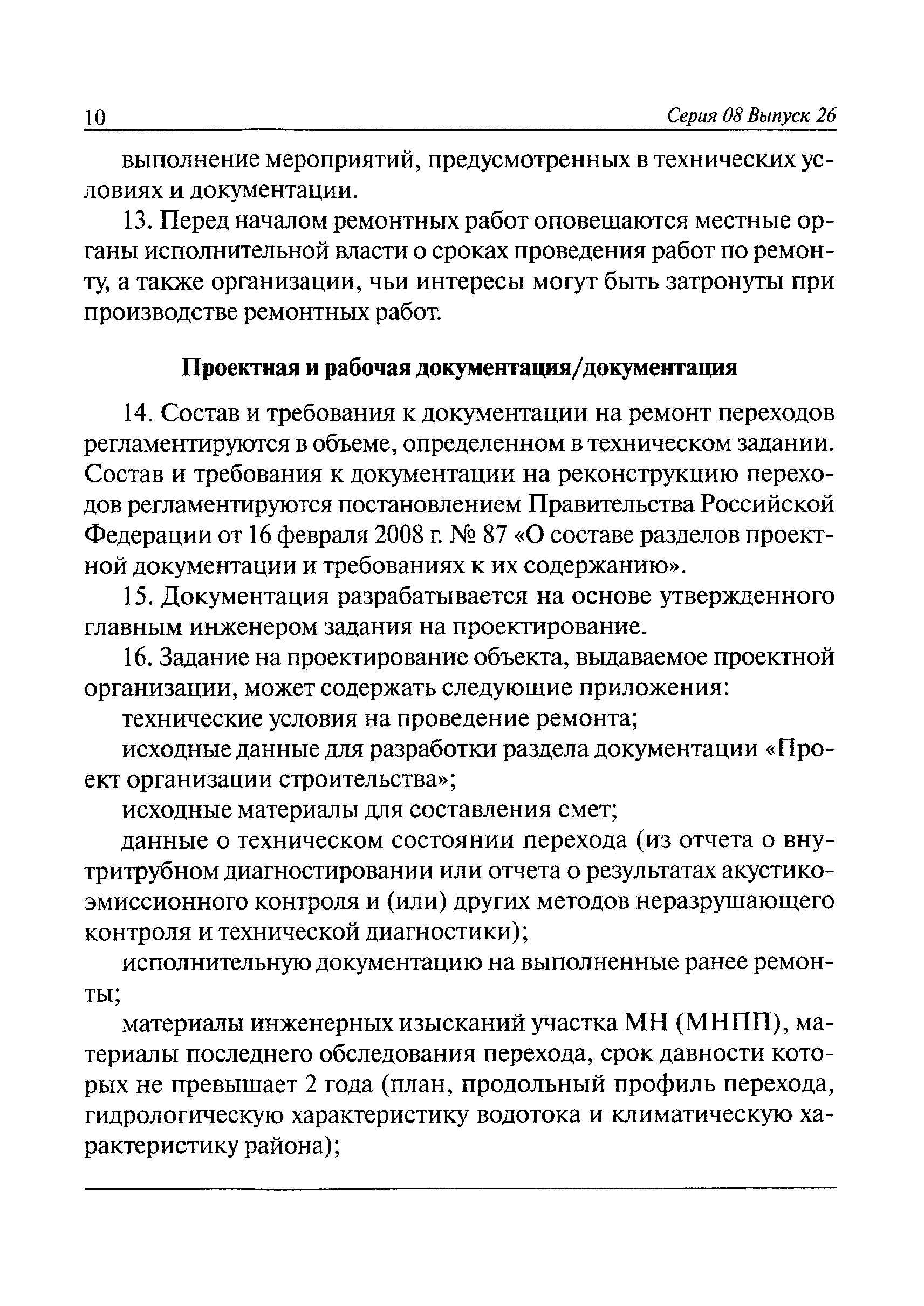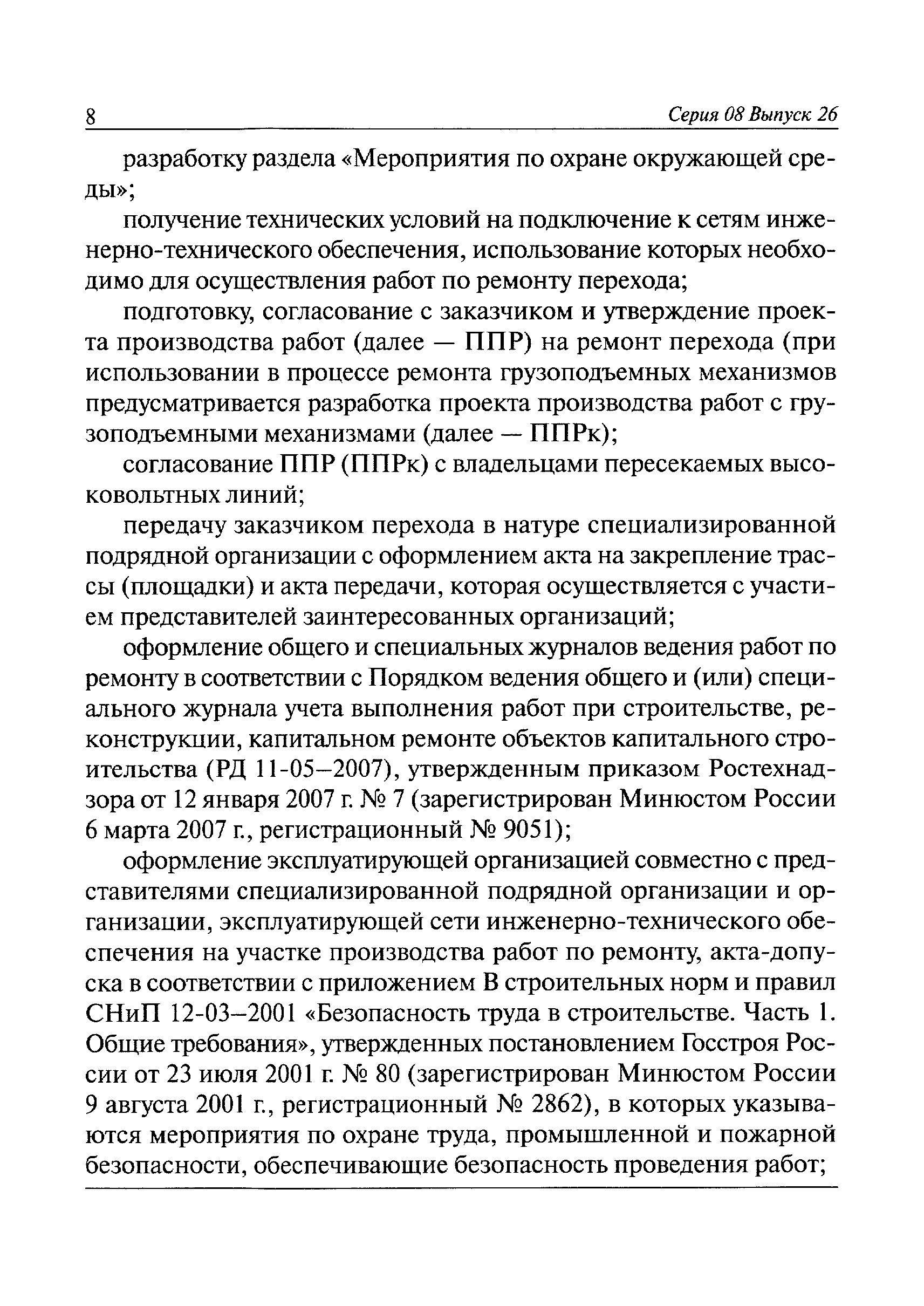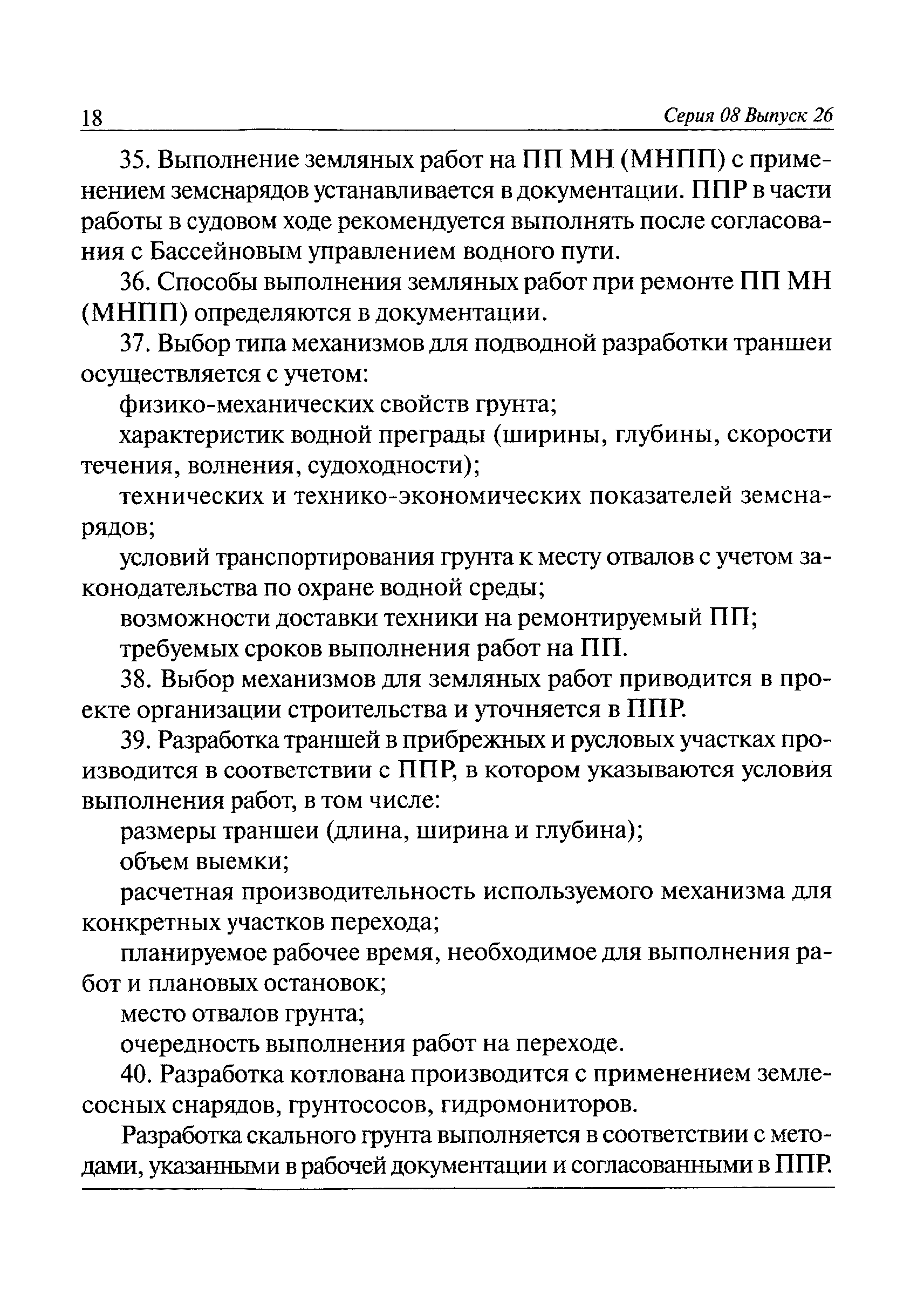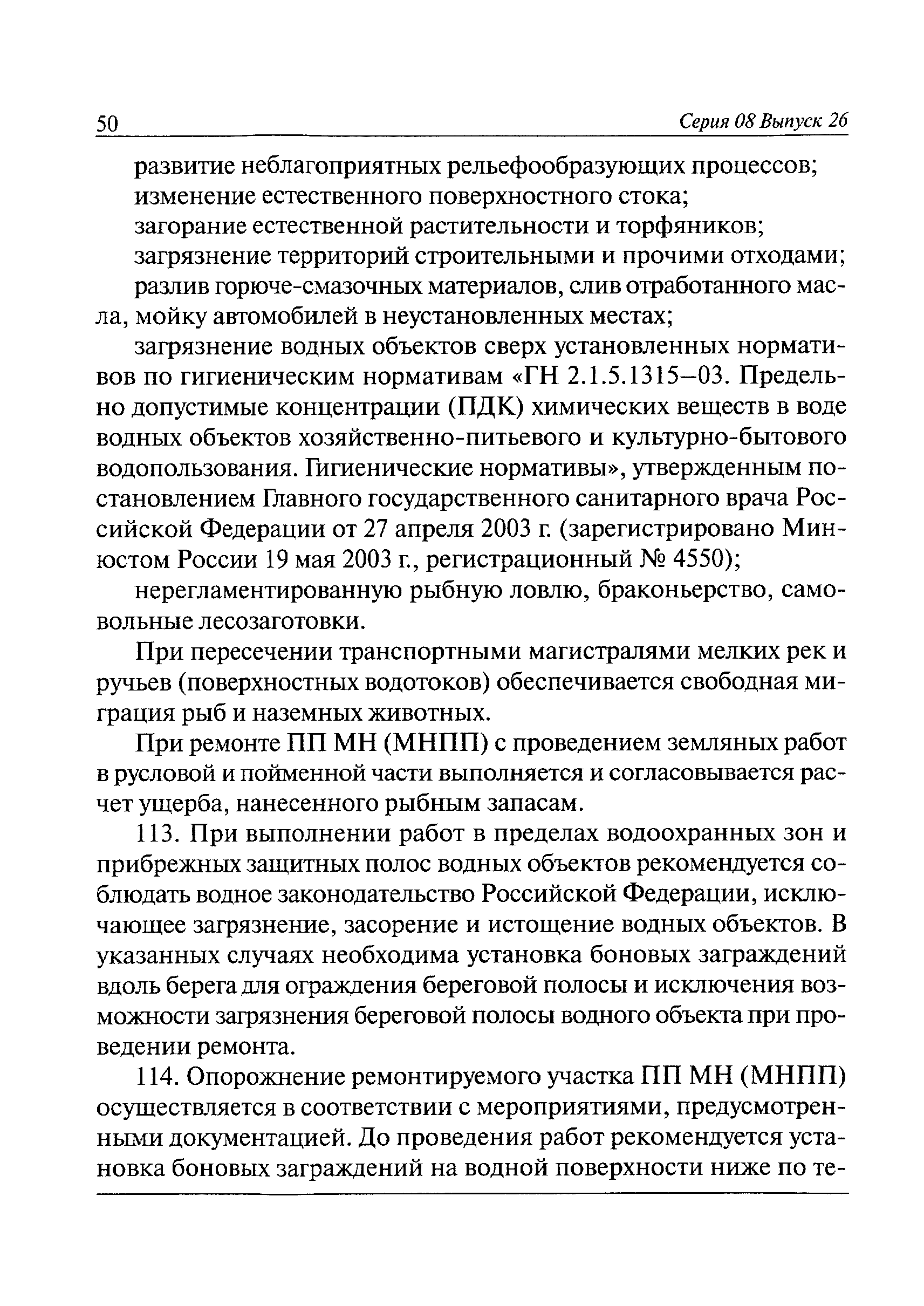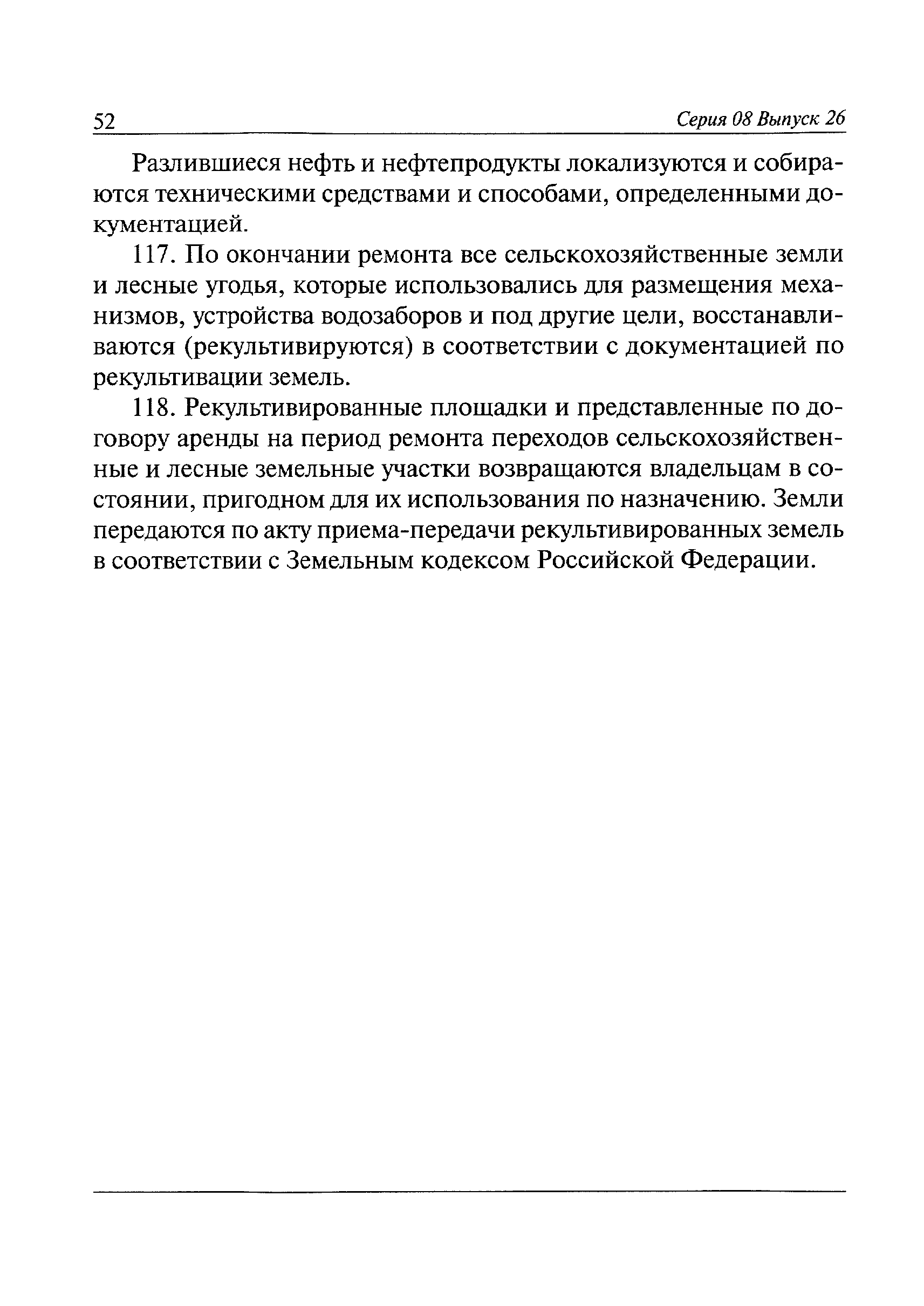 Руководство по безопасности "Рекомендации по ремонту магистральных нефтепроводов и нефтепродуктопроводов на переходах через водные преграды, железные и автомобильные дороги I - IV категорий"| Статус: | действует | | Название рус.: | Руководство по безопасности "Рекомендации по ремонту магистральных нефтепроводов и нефтепродуктопроводов на переходах через водные преграды, железные и автомобильные дороги I - IV категорий" | | Дата добавления в базу: | 12.02.2016 | | Дата актуализации: | 01.01.2021 | | Область применения: | Руководство по безопасности содержит рекомендации по организации и производству магистральных нефтепроводов и нефтепродуктопроводов на указанных периодах. | | Оглавление: | I. Общие положения II. Рекомендации по организации ремонта III. Рекомендации по производству основных работ по ремонту IV. Производство ремонтных работ на переходах V. Рекомендации по охране окружающей среды Приложение № 1. Термины и определения Приложение № 2 | | Утверждён: | 26.12.2014 Федеральная служба по экологическому, технологическому и атомному надзору (617)