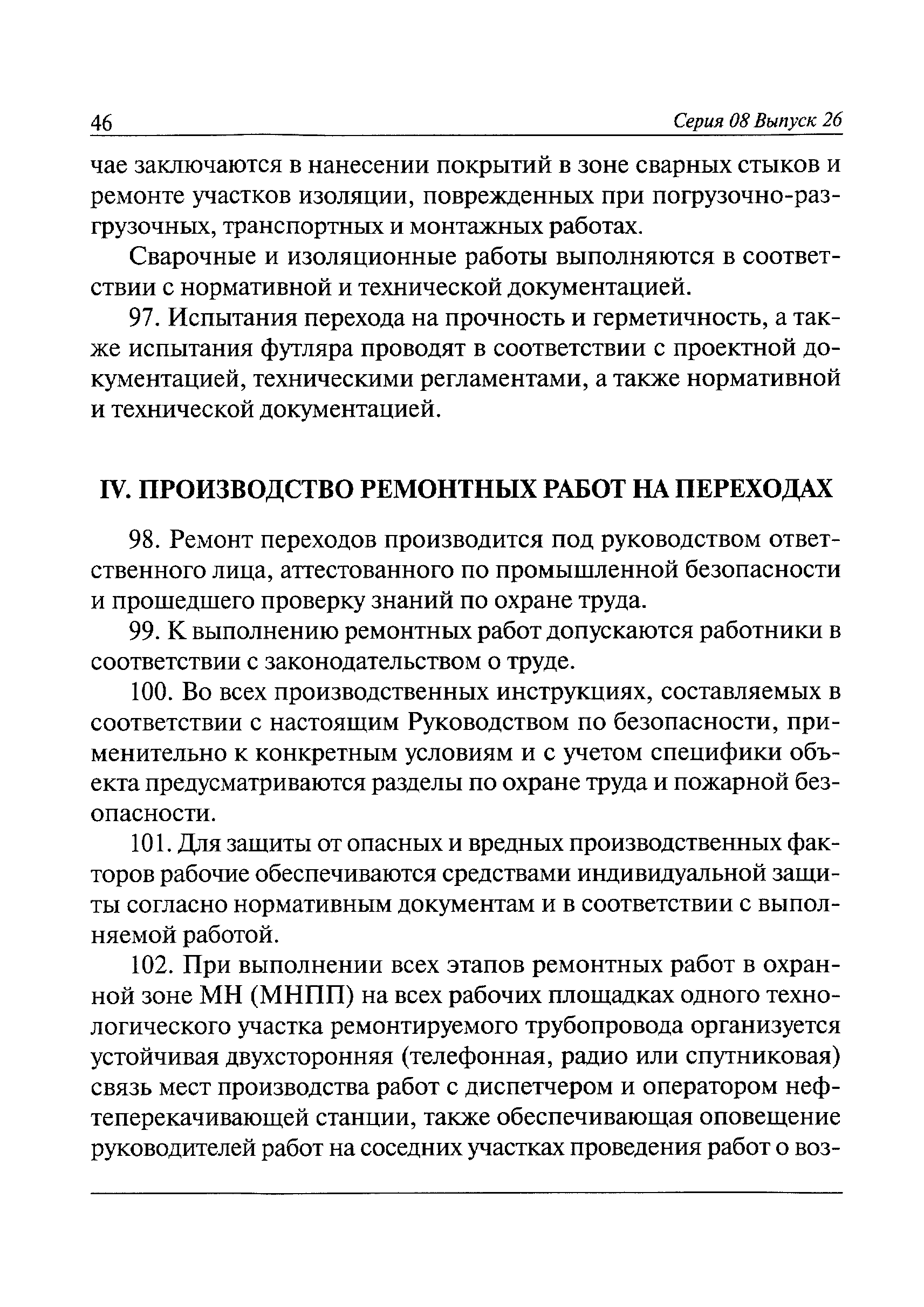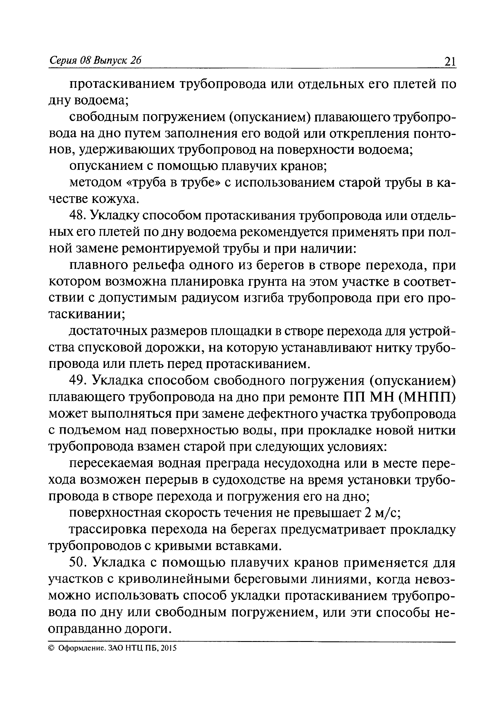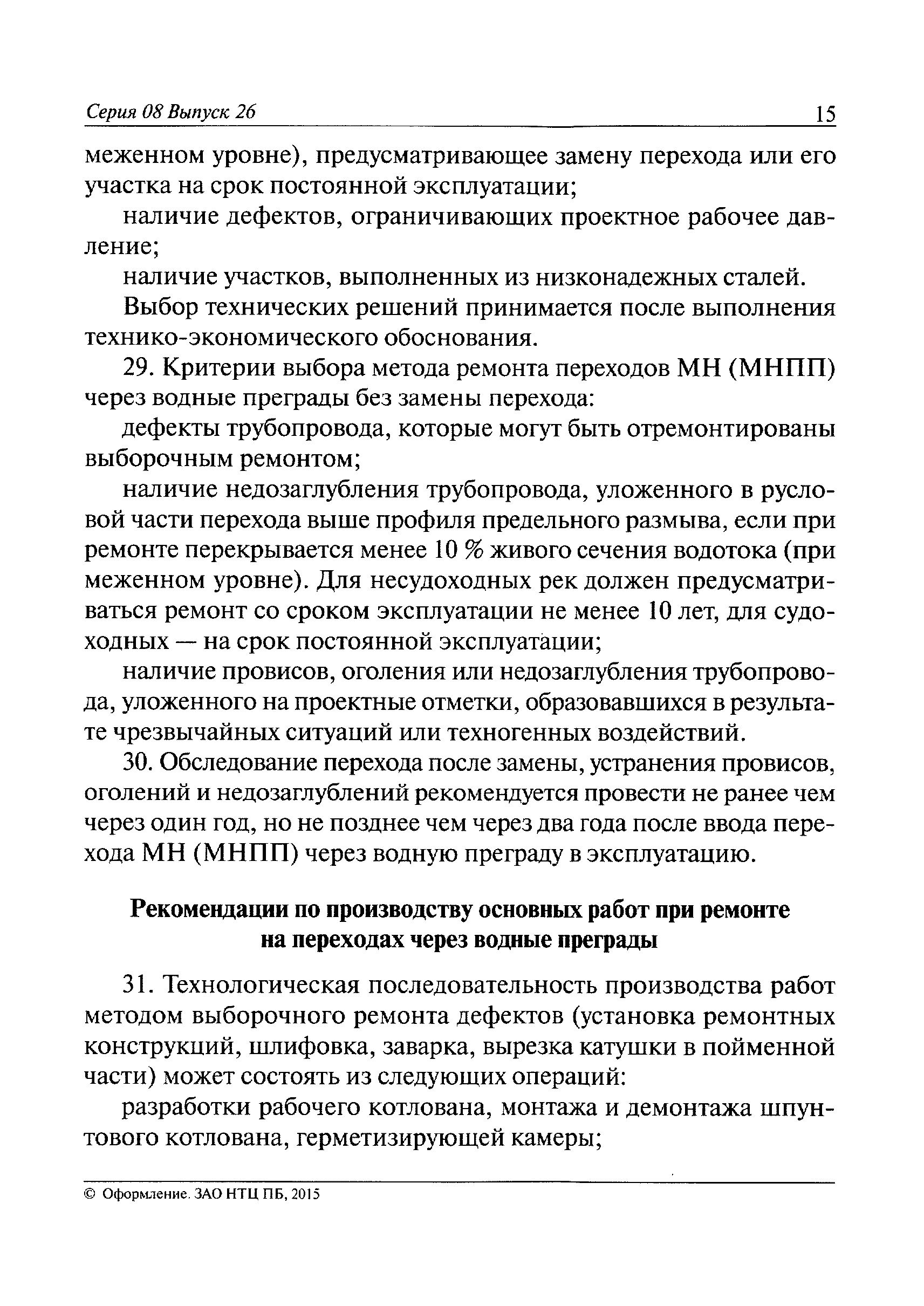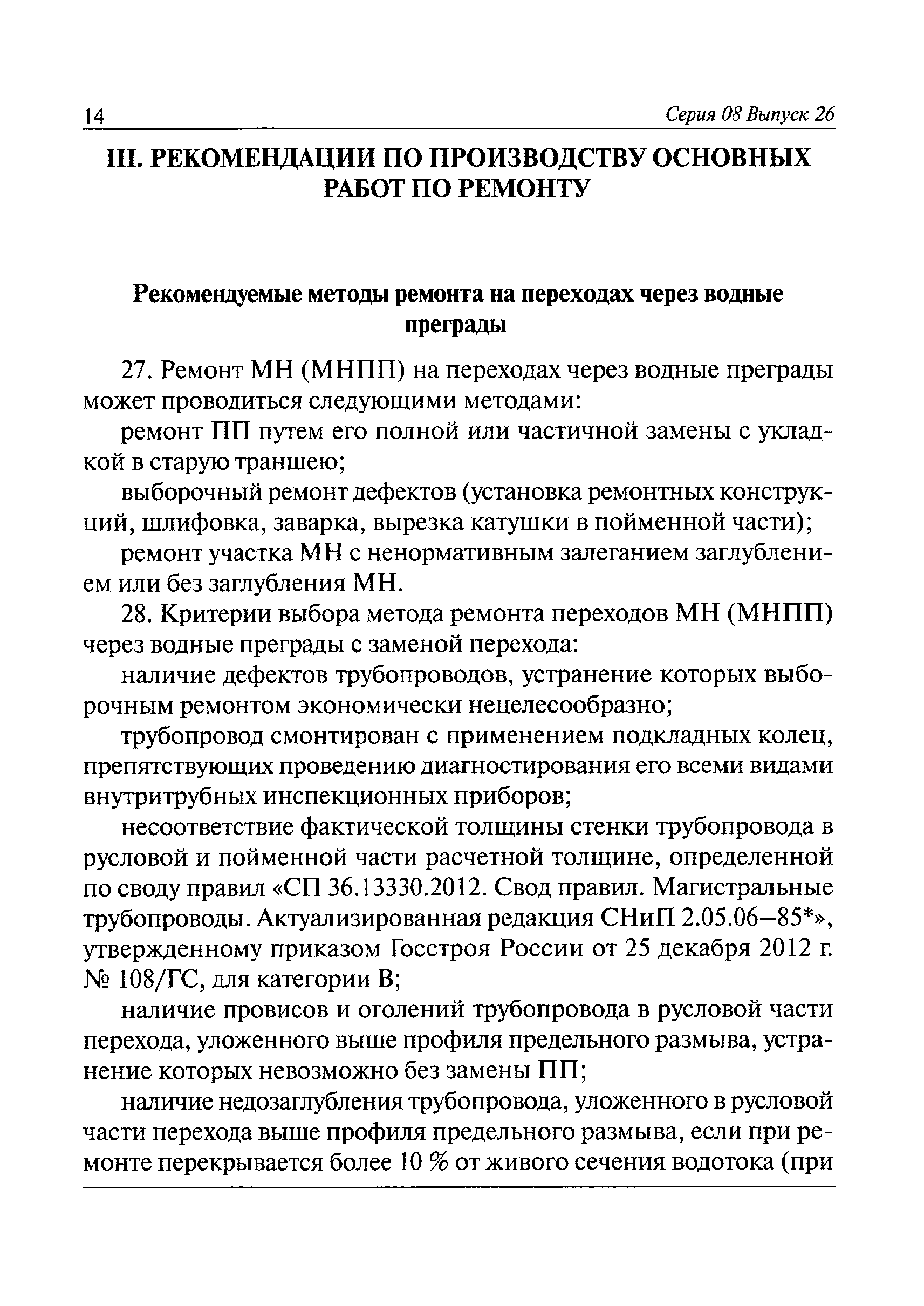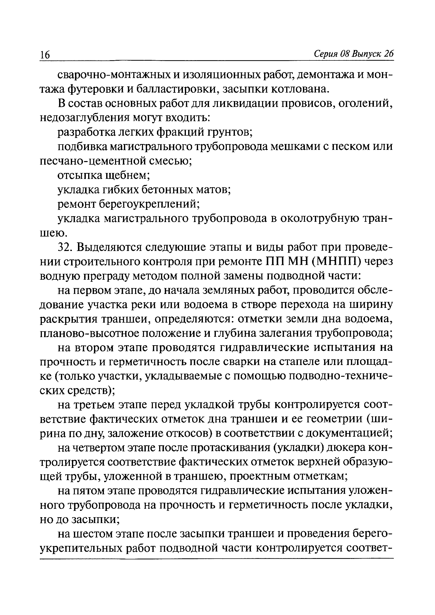 Скачать Руководство по безопасности Рекомендации по ремонту магистральных нефтепроводов и нефтепродуктопроводов на переходах через водные преграды, железные и автомобильные дороги I - IV категорийДата актуализации: 01.01.2021