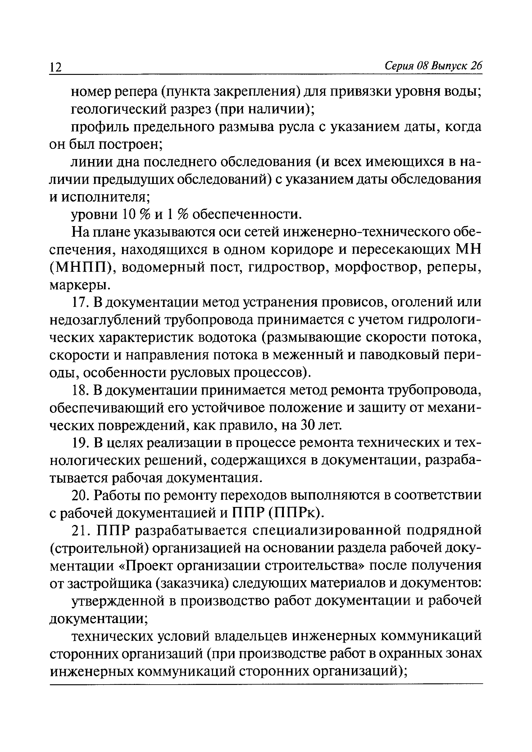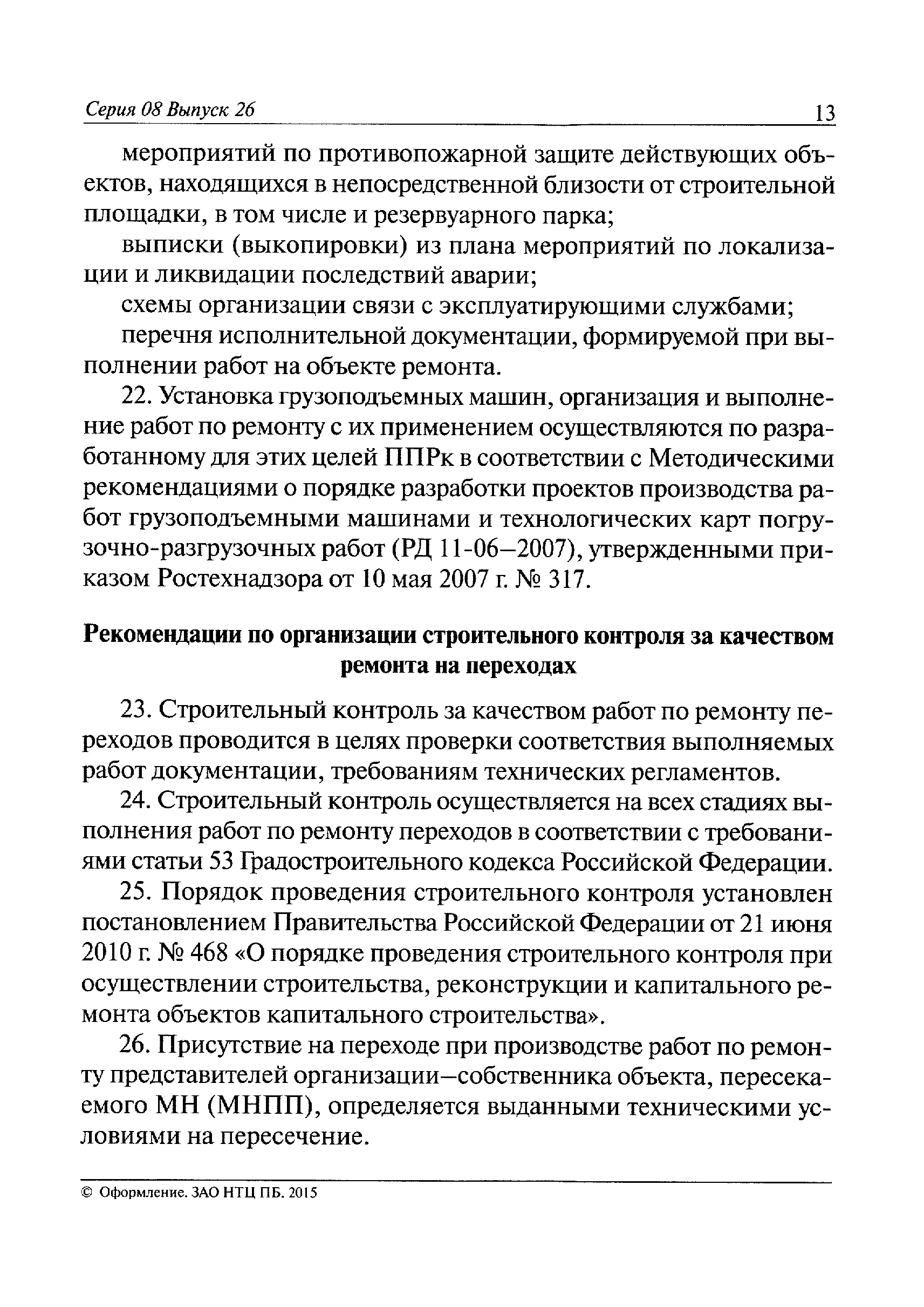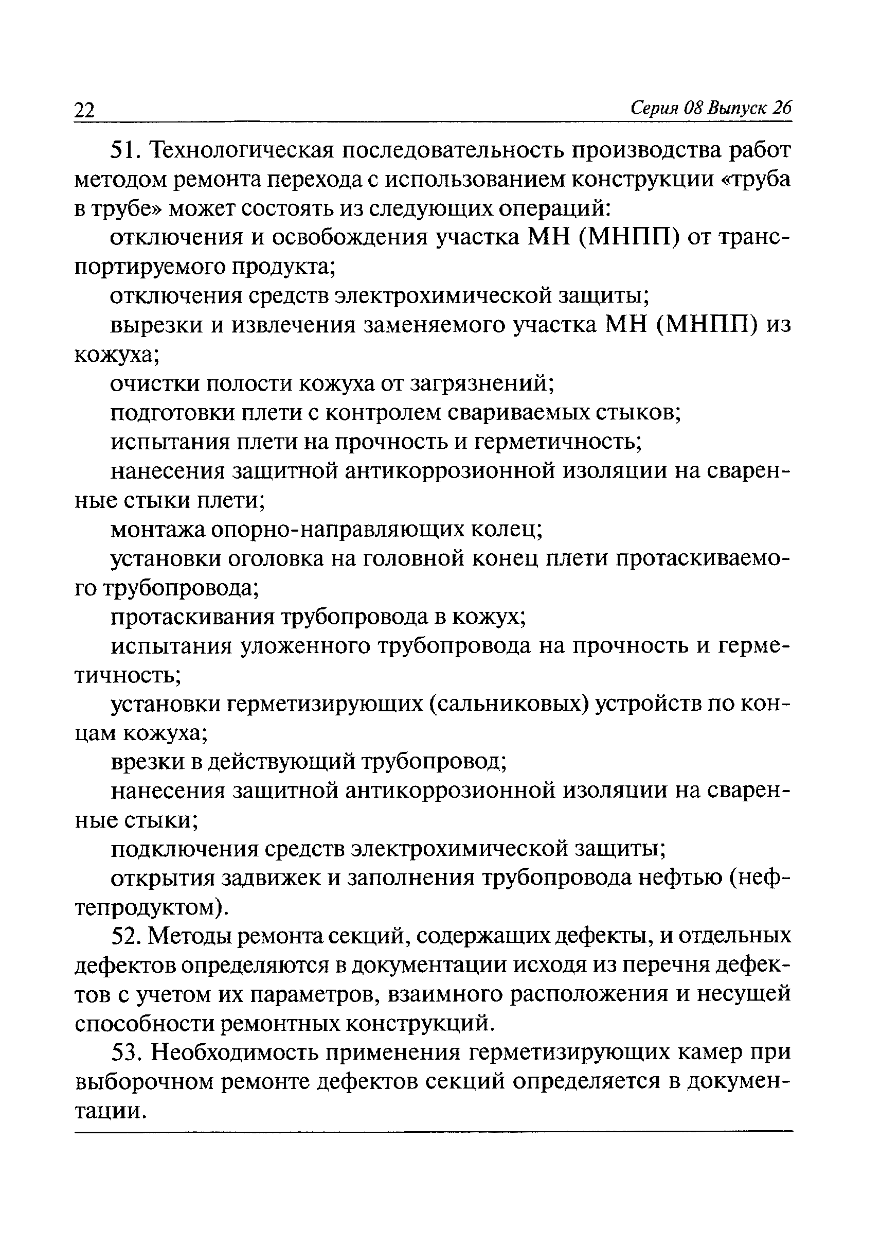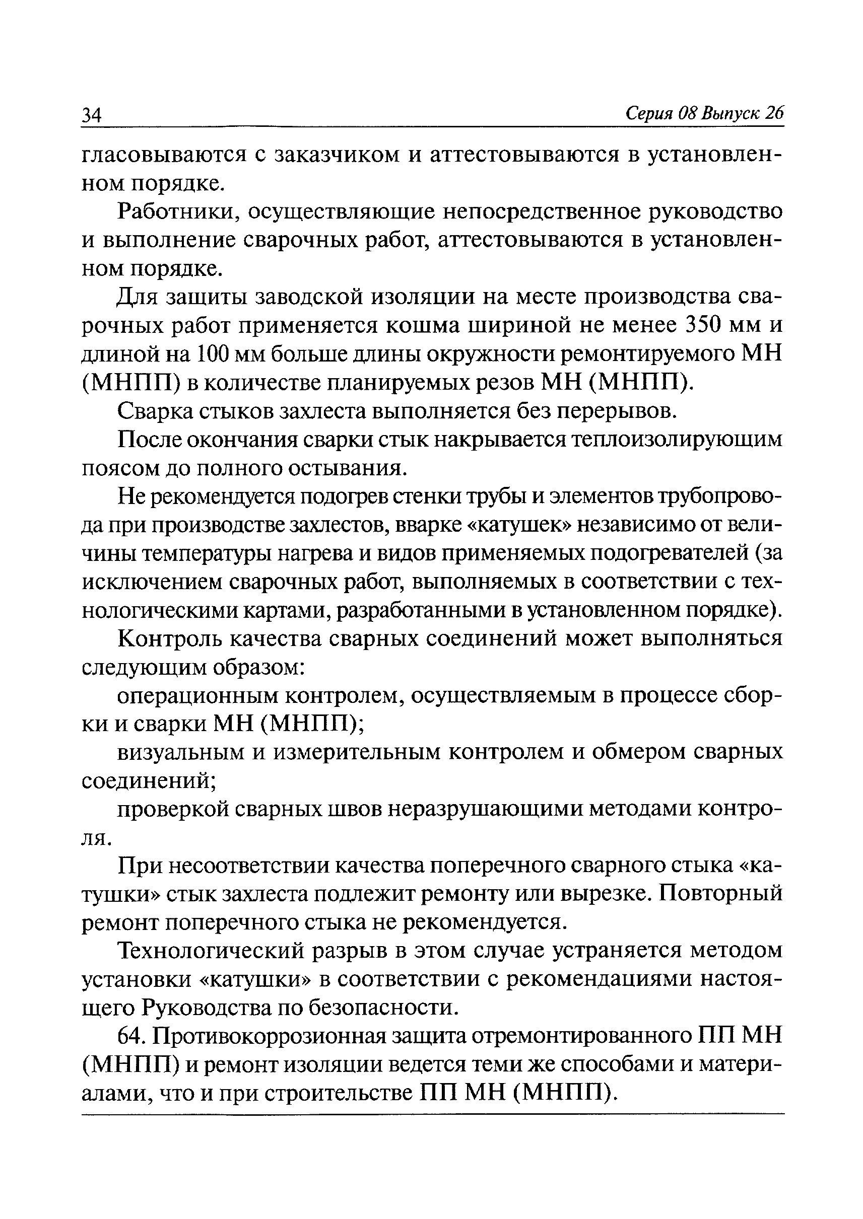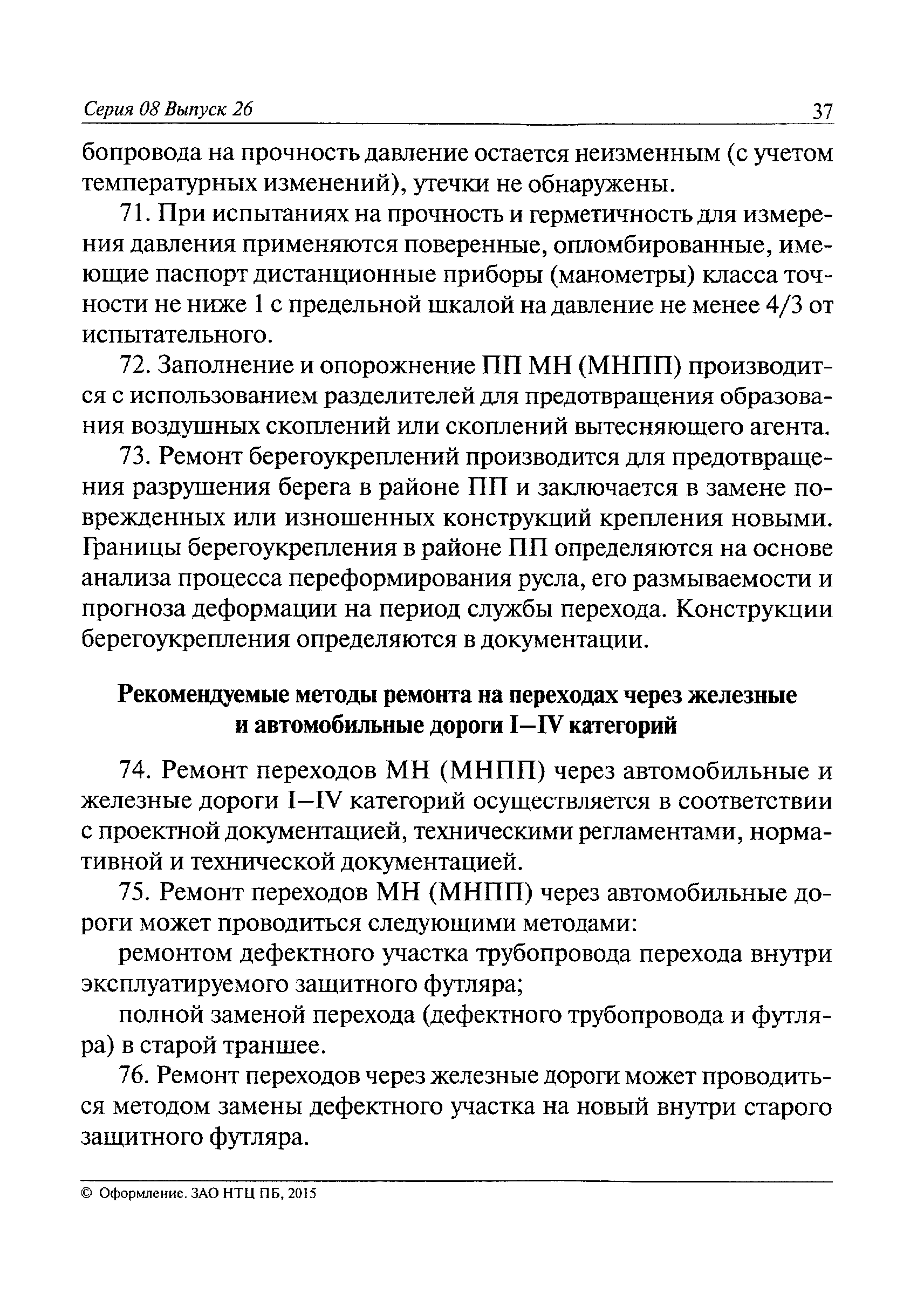 Скачать Руководство по безопасности Рекомендации по ремонту магистральных нефтепроводов и нефтепродуктопроводов на переходах через водные преграды, железные и автомобильные дороги I - IV категорийДата актуализации: 01.01.2021