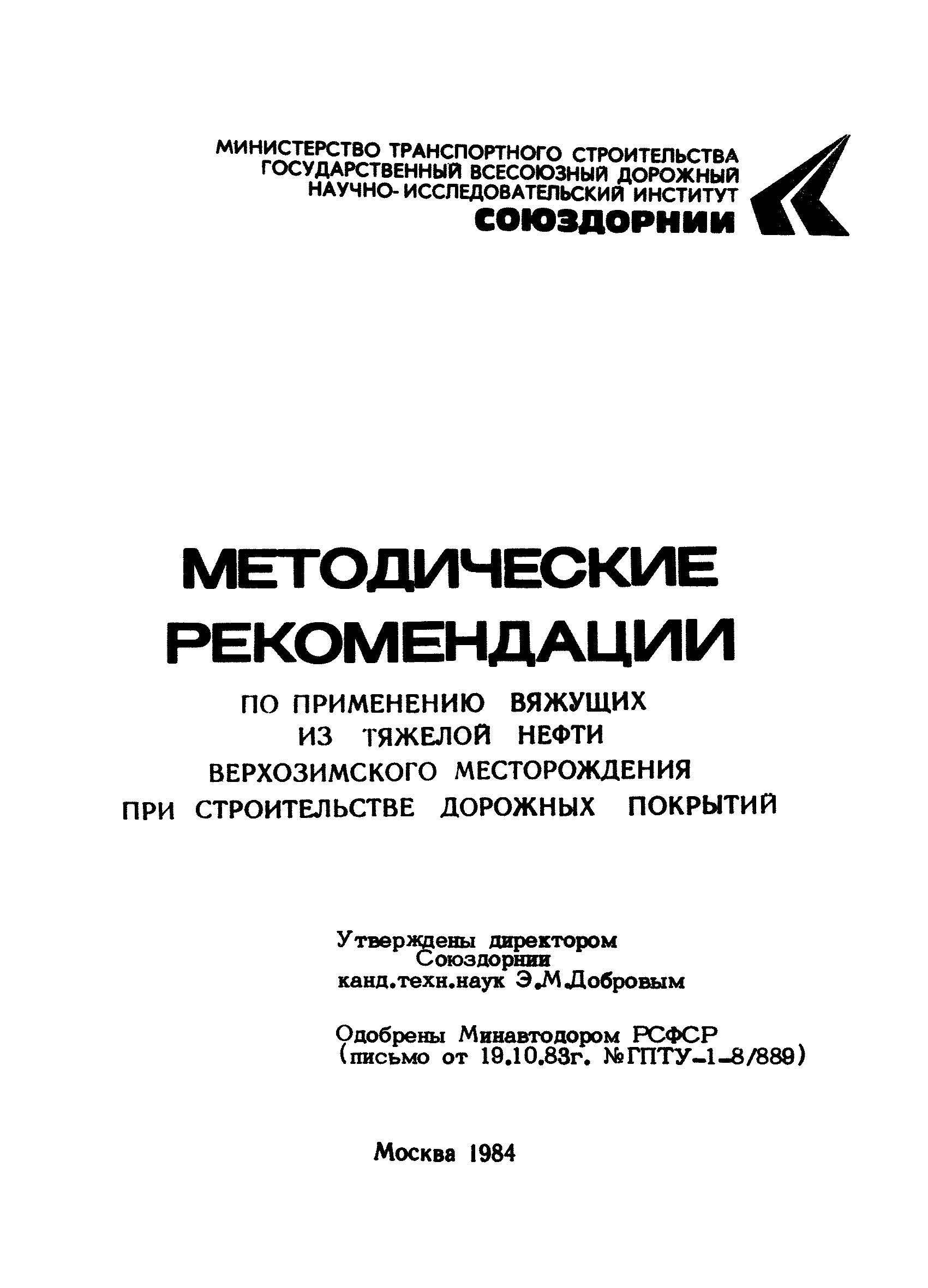 | Принят: | 19.10.1983 Минавтодор РСФСР (Russian Federation Minavtodor ГПТУ-1-8/889) |