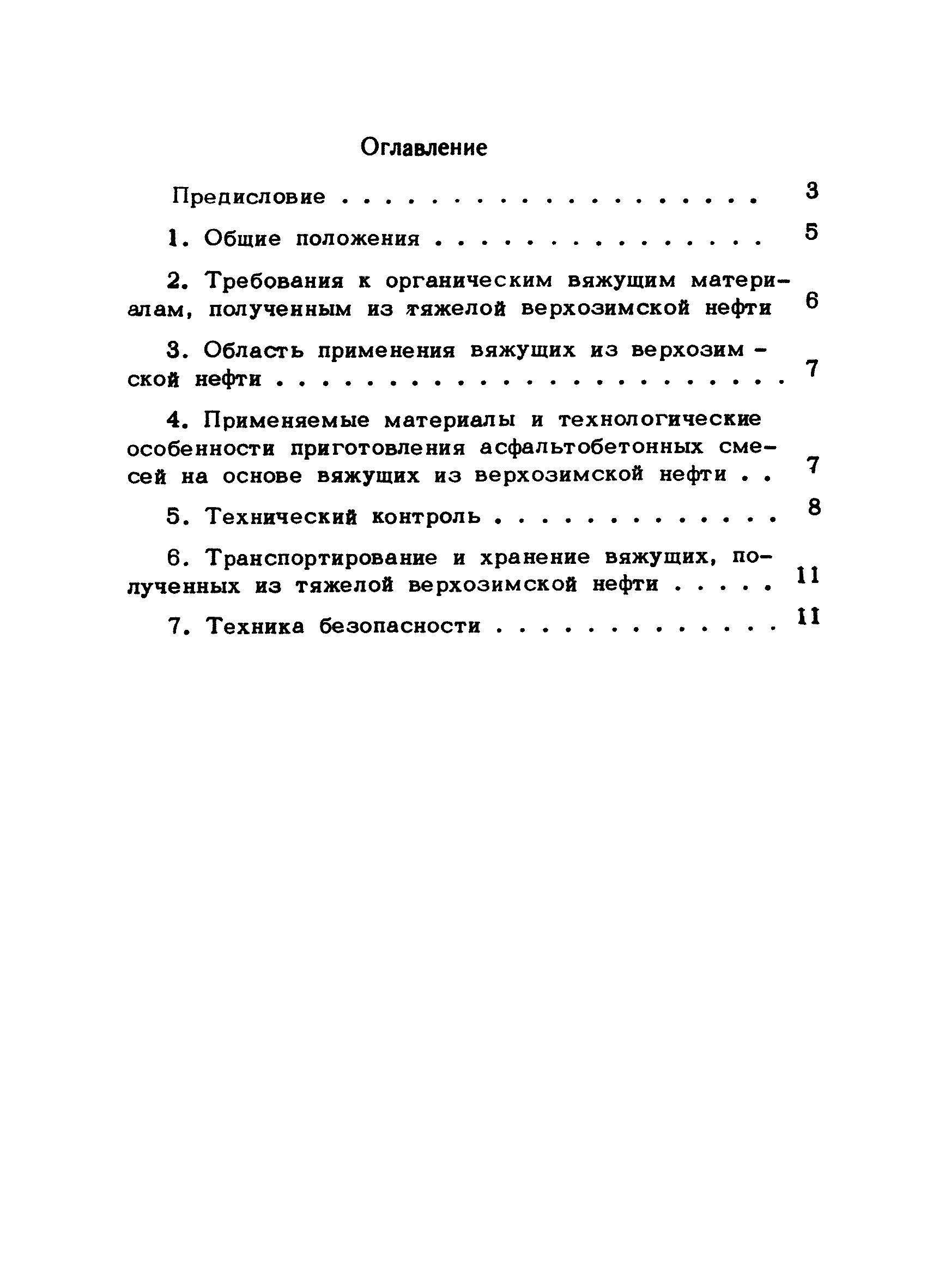 | Оглавление: | Предисловие 1. Общие положения 2. Требования к органическим вяжущим материалам, полученным из тяжелой верхозимской нефти 3. Область применения вяжущих из верхозимской нефти 4. Применяемые материалы и технологические особенности приготовления асфальтобетонных смесей на основе вяжущих из верхозимской нефти 5. Технический контроль 6. Транспортирование и хранение вяжущих, полученных из тяжелой верхозимской нефти 7. Техника безопасности |