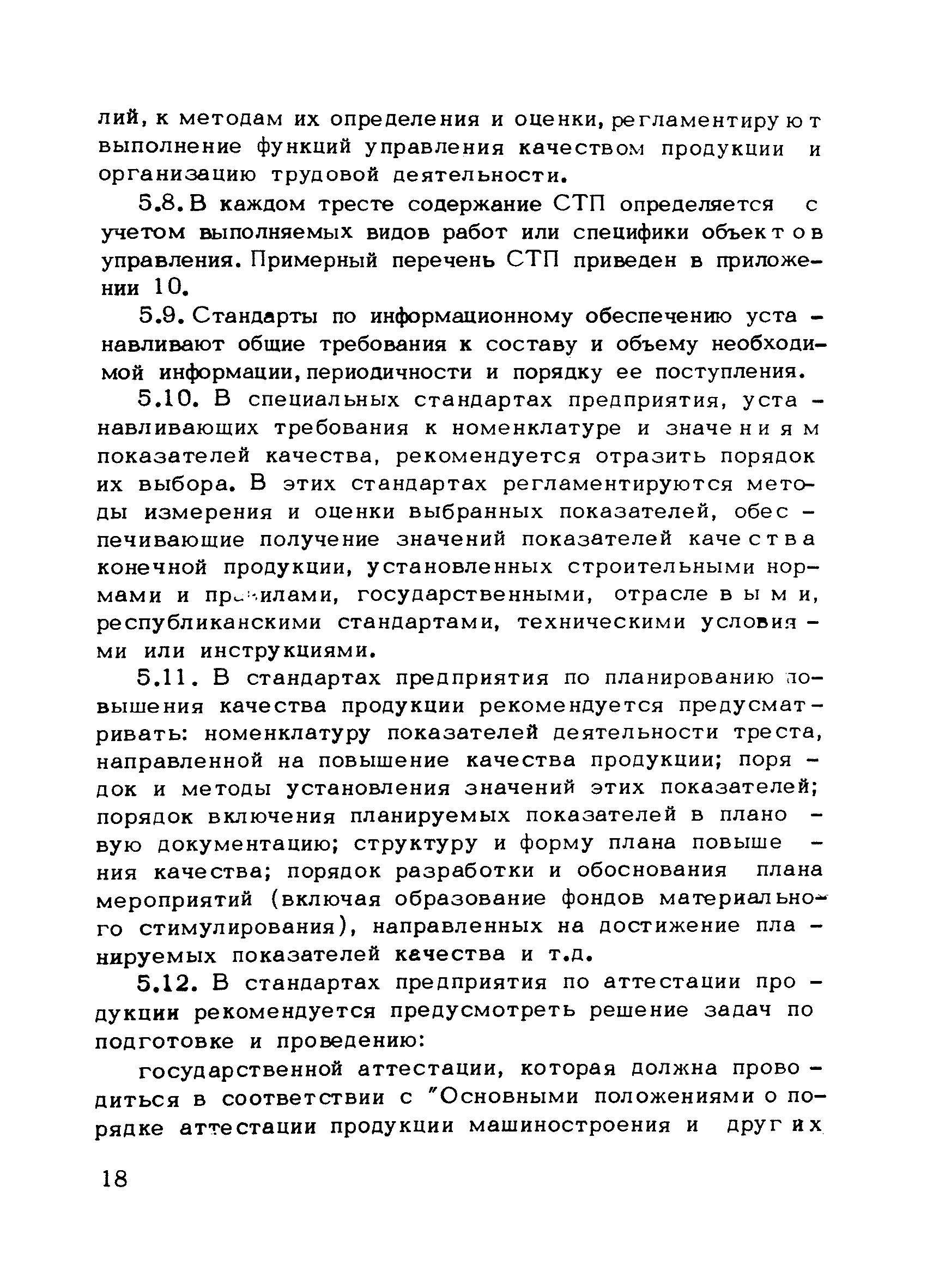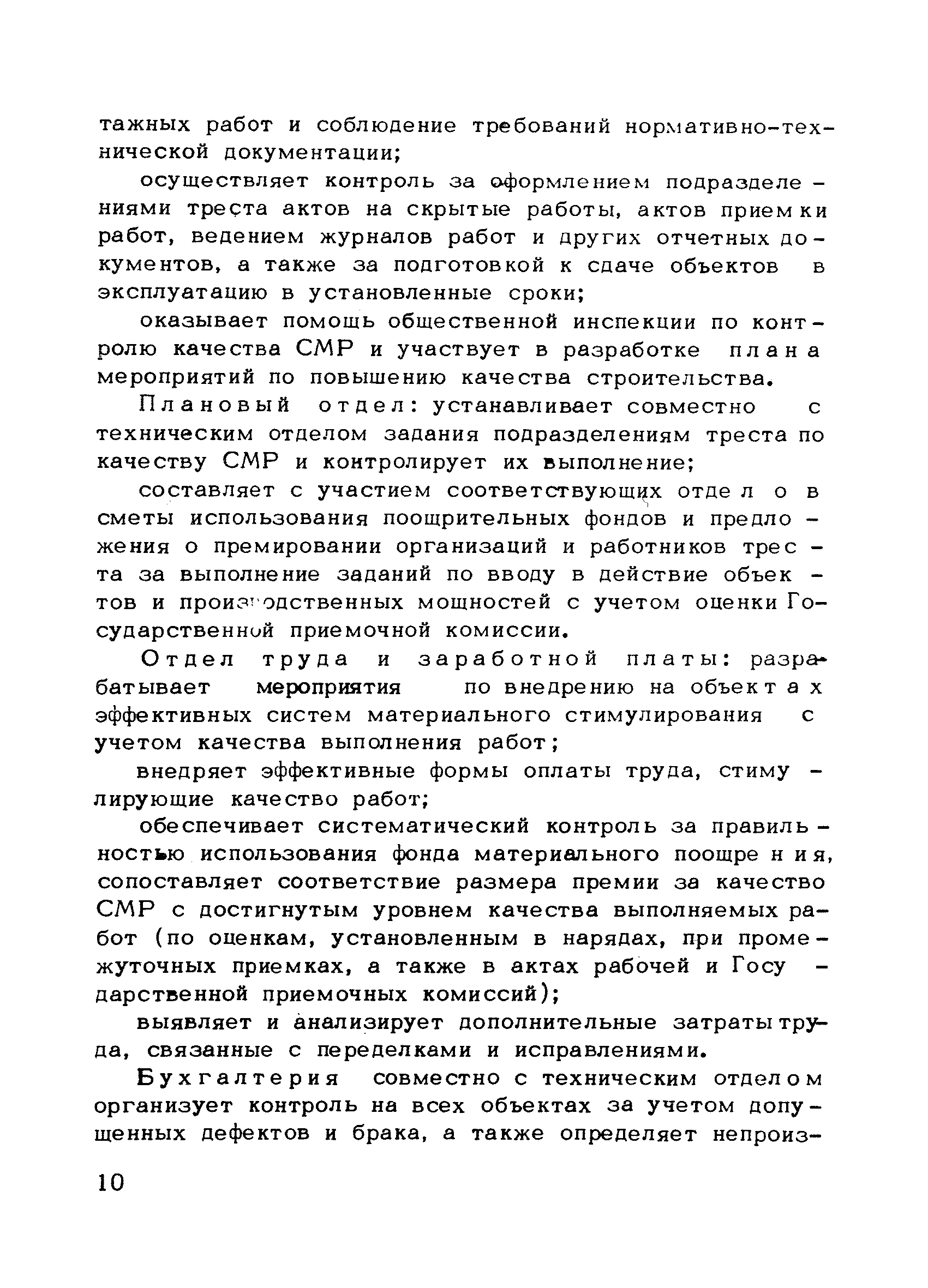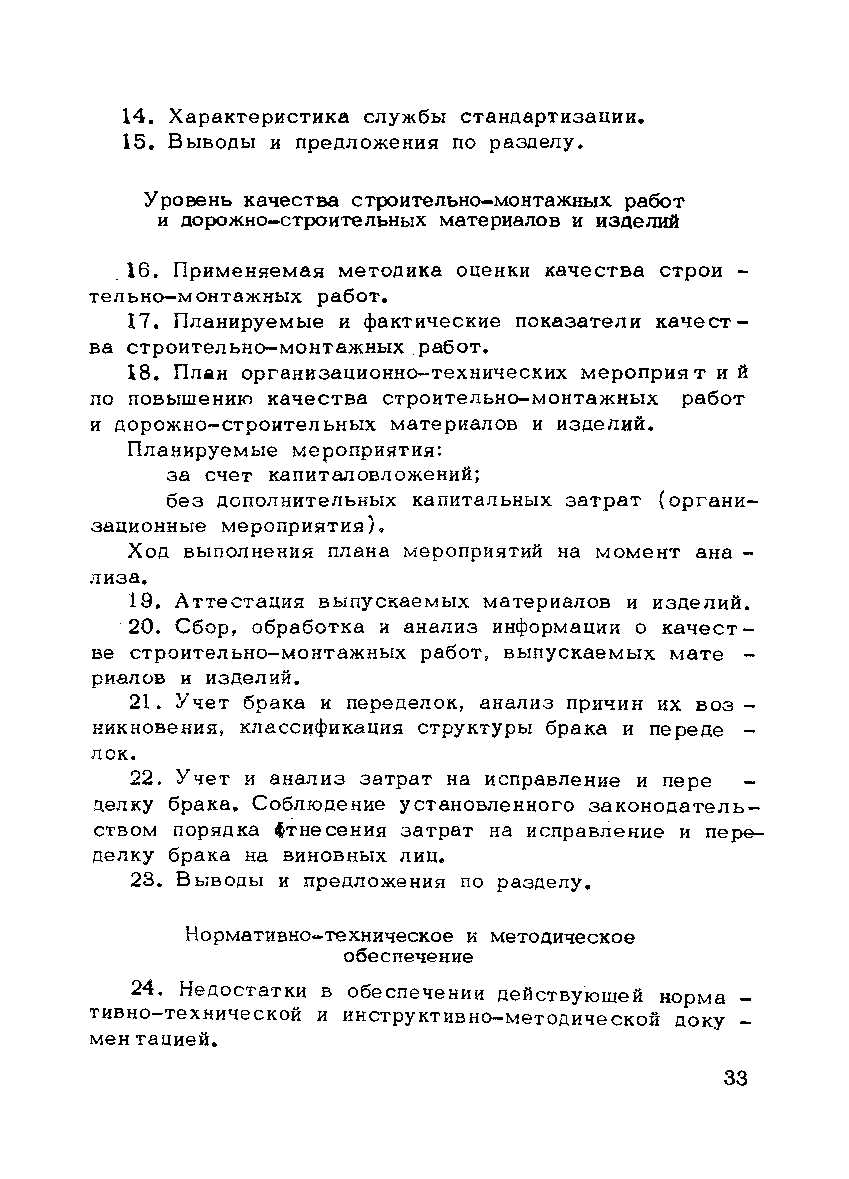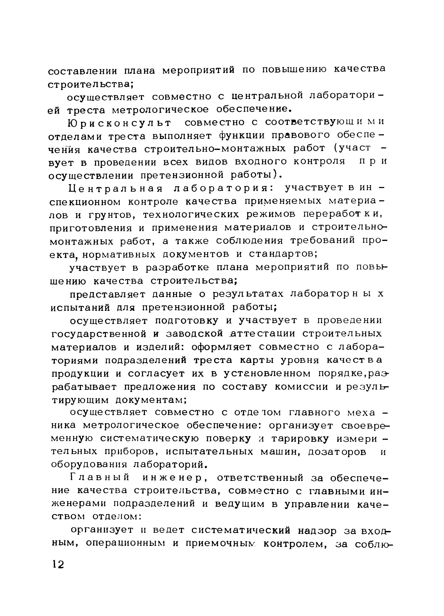 | Оглавление: | Предисловие 1. Общие положения 2. Структура и функции КС УК СМР в тресте 3. Организация управления качеством СМР в тресте 4. Порядок разработки и внедрения КС УК СМР 5. Рекомендации по разработке стандартов предприятия КС УК СМР 6. Порядок регистрации и учета состояния разработки и внедрения КС УК СМР Приложение 1. Пример приказа по тресту об организации работ по разработке системы и о создании координационно-рабочей группы Приложение 2. Пример типового положения о координационно—рабочей группе по разработке и внедрению КС УК СМР в тресте Приложение 3. Пример программы технической учебы руководителей и ведущих специалистов треста Приложение 4. Примерная программа анализа состояния дел по качеству в трестах Приложение 5. Требования к техническому заданию на разработку КС УК СМР Приложение 6. Состав и содержание проекта КС УК СМР Приложение 7. Пример приказа по тресту о разработке стандартов предприятия КС УК СМР Приложение 8. Пример приказа по тресту о внедрении стандартов предприятия Приложение 9. Требования к построению и содержанию стандартов предприятия Приложение 10. Примерный перечень стандартов предприятия КС УК СМР Приложение 11. Форма акта внедрения КС УК СМР Приложение 12. Бланк-сигнал учета КС УК СМР |