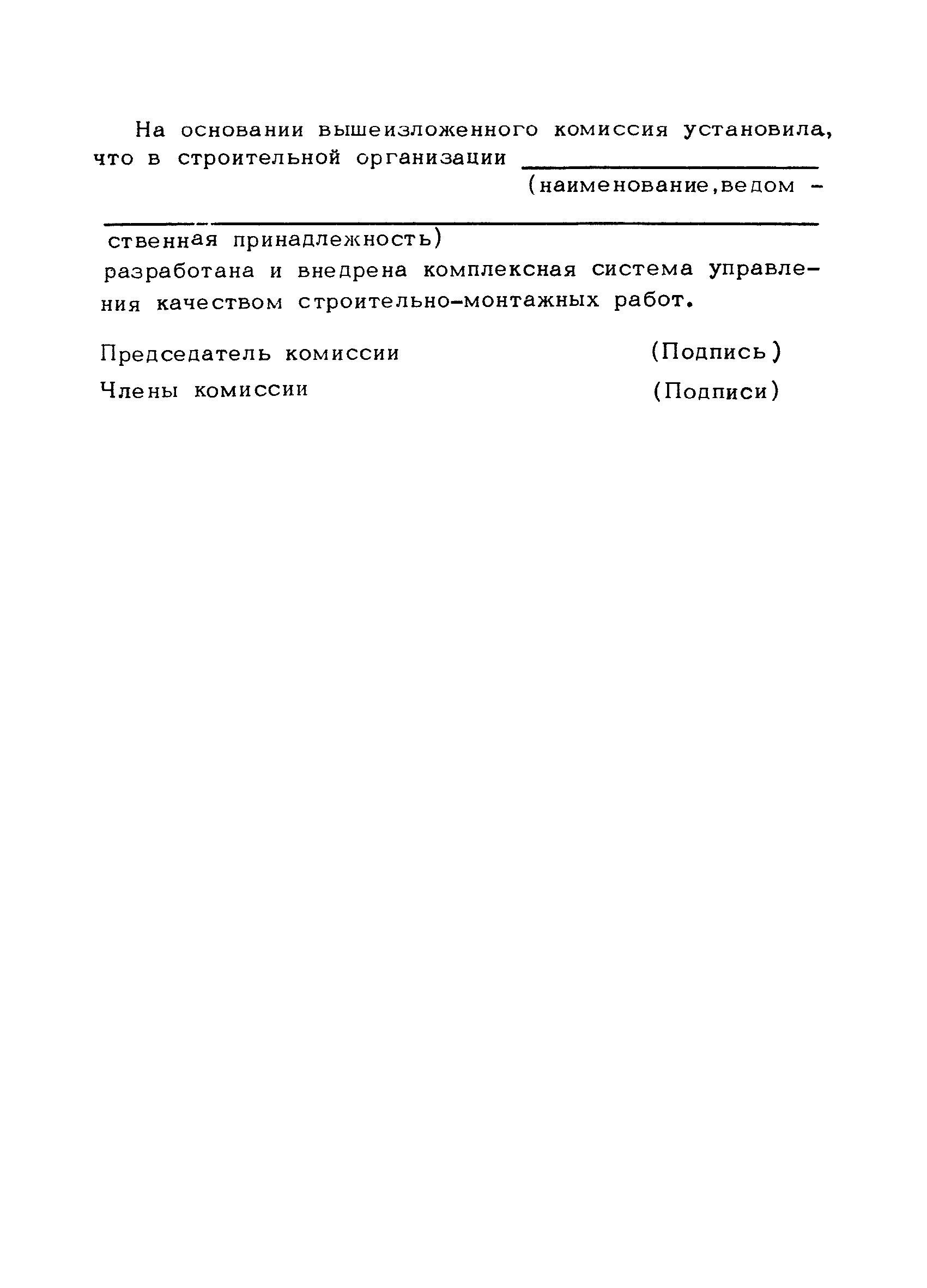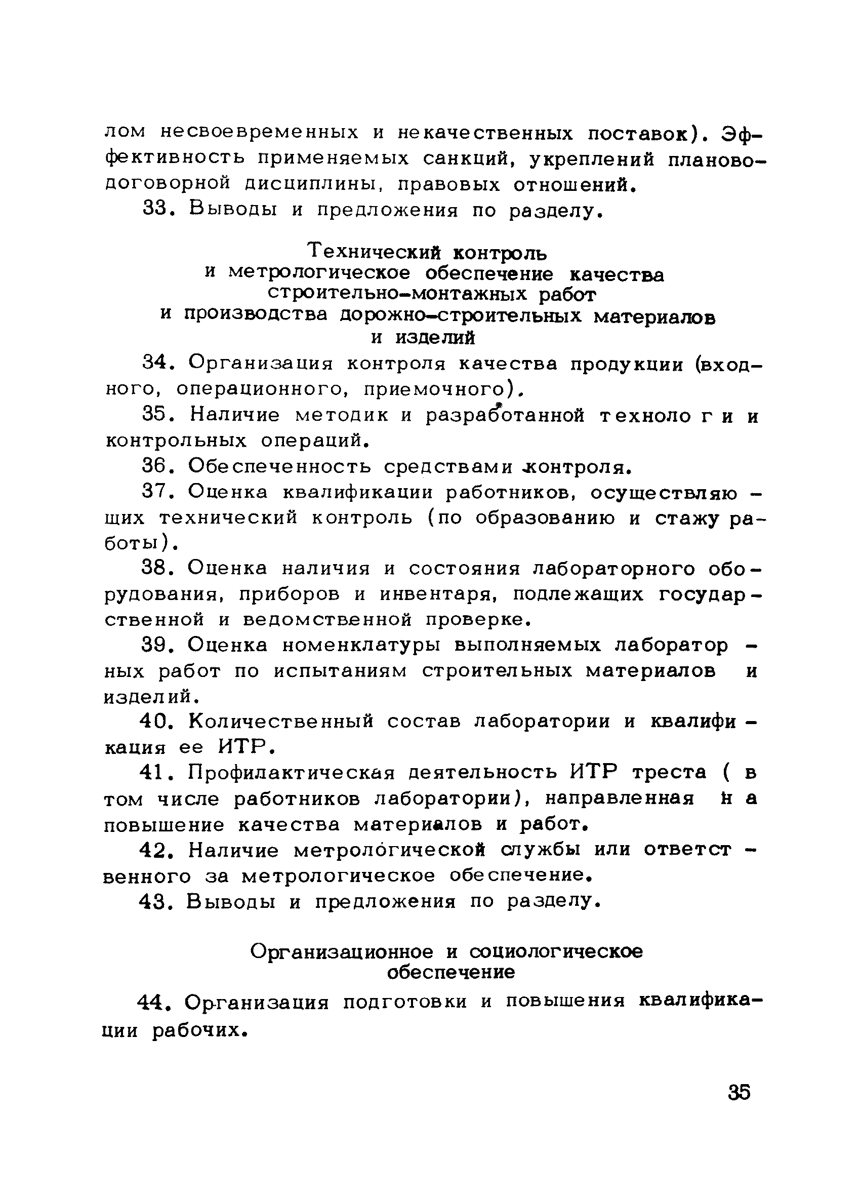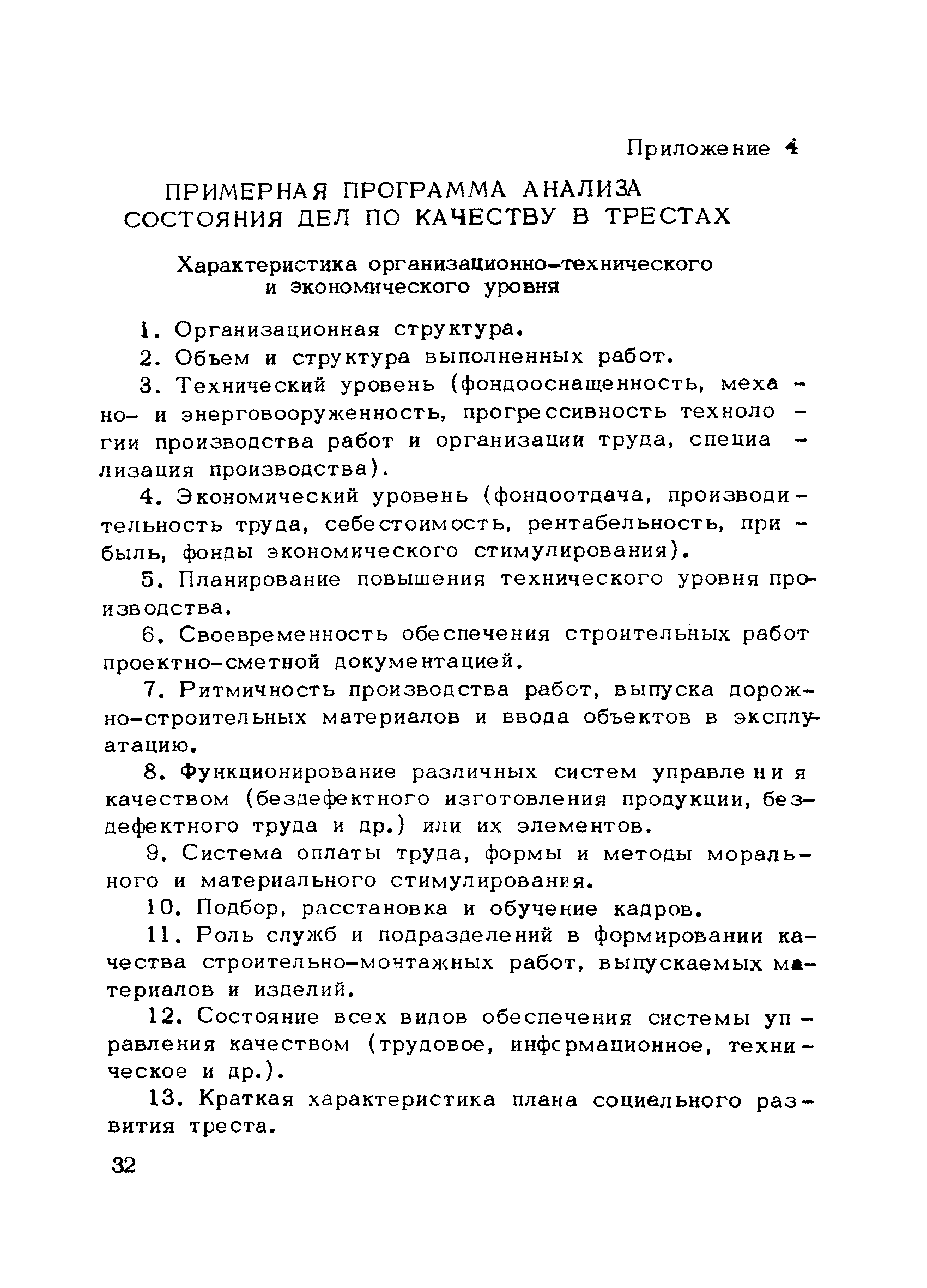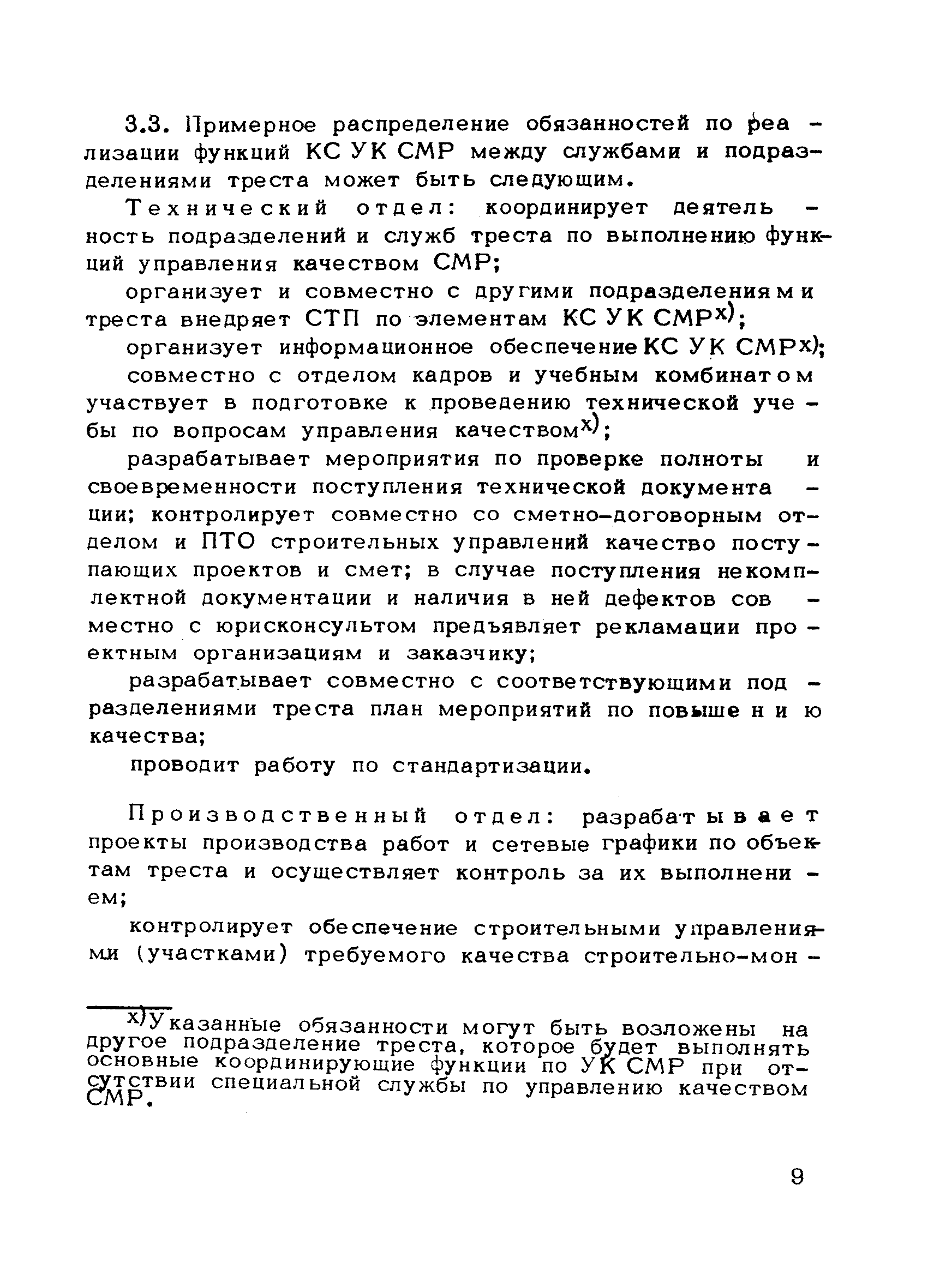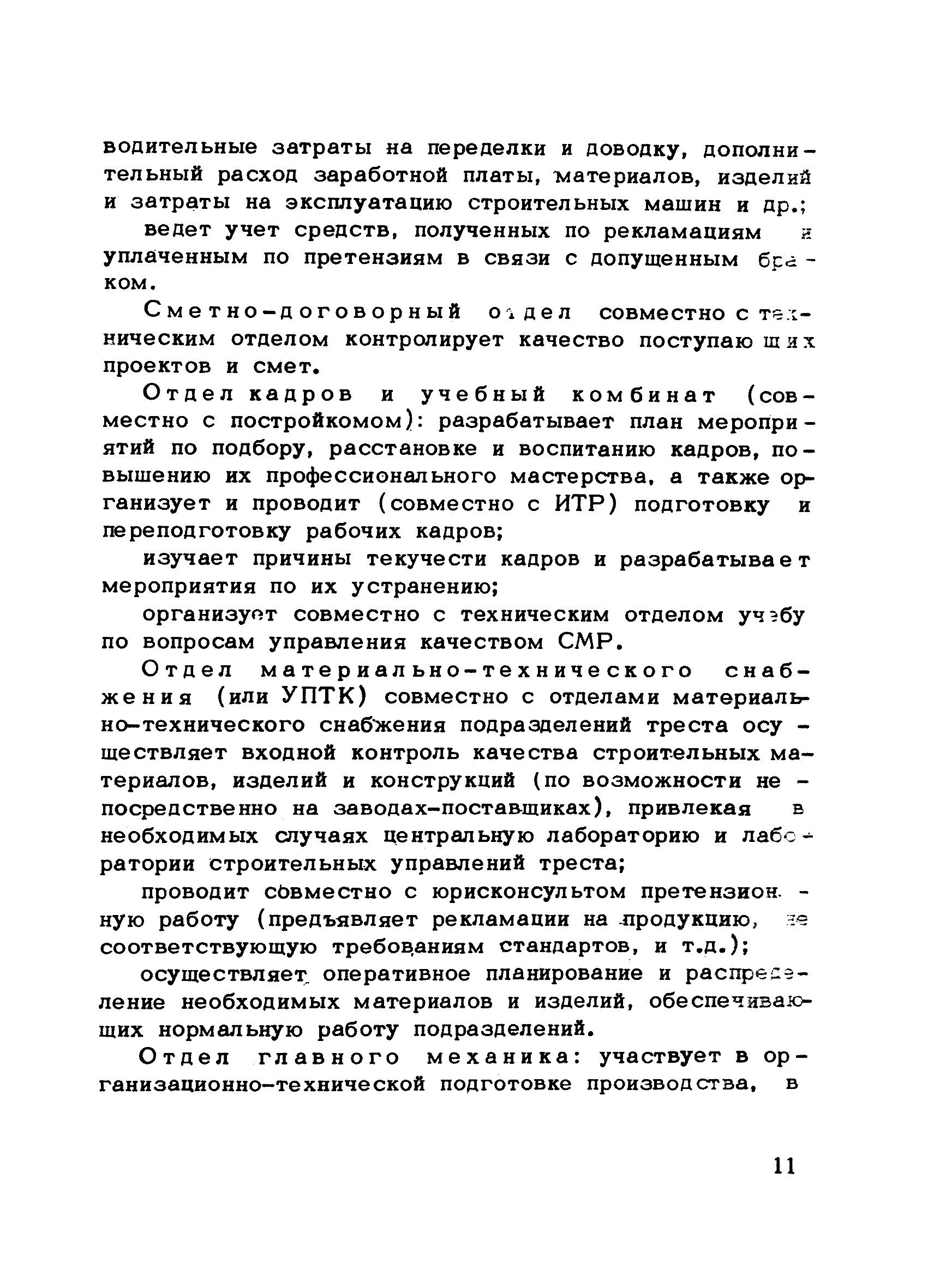 | Оглавление: | Предисловие 1. Общие положения 2. Структура и функции КС УК СМР в тресте 3. Организация управления качеством СМР в тресте 4. Порядок разработки и внедрения КС УК СМР 5. Рекомендации по разработке стандартов предприятия КС УК СМР 6. Порядок регистрации и учета состояния разработки и внедрения КС УК СМР Приложение 1. Пример приказа по тресту об организации работ по разработке системы и о создании координационно-рабочей группы Приложение 2. Пример типового положения о координационно—рабочей группе по разработке и внедрению КС УК СМР в тресте Приложение 3. Пример программы технической учебы руководителей и ведущих специалистов треста Приложение 4. Примерная программа анализа состояния дел по качеству в трестах Приложение 5. Требования к техническому заданию на разработку КС УК СМР Приложение 6. Состав и содержание проекта КС УК СМР Приложение 7. Пример приказа по тресту о разработке стандартов предприятия КС УК СМР Приложение 8. Пример приказа по тресту о внедрении стандартов предприятия Приложение 9. Требования к построению и содержанию стандартов предприятия Приложение 10. Примерный перечень стандартов предприятия КС УК СМР Приложение 11. Форма акта внедрения КС УК СМР Приложение 12. Бланк-сигнал учета КС УК СМР |