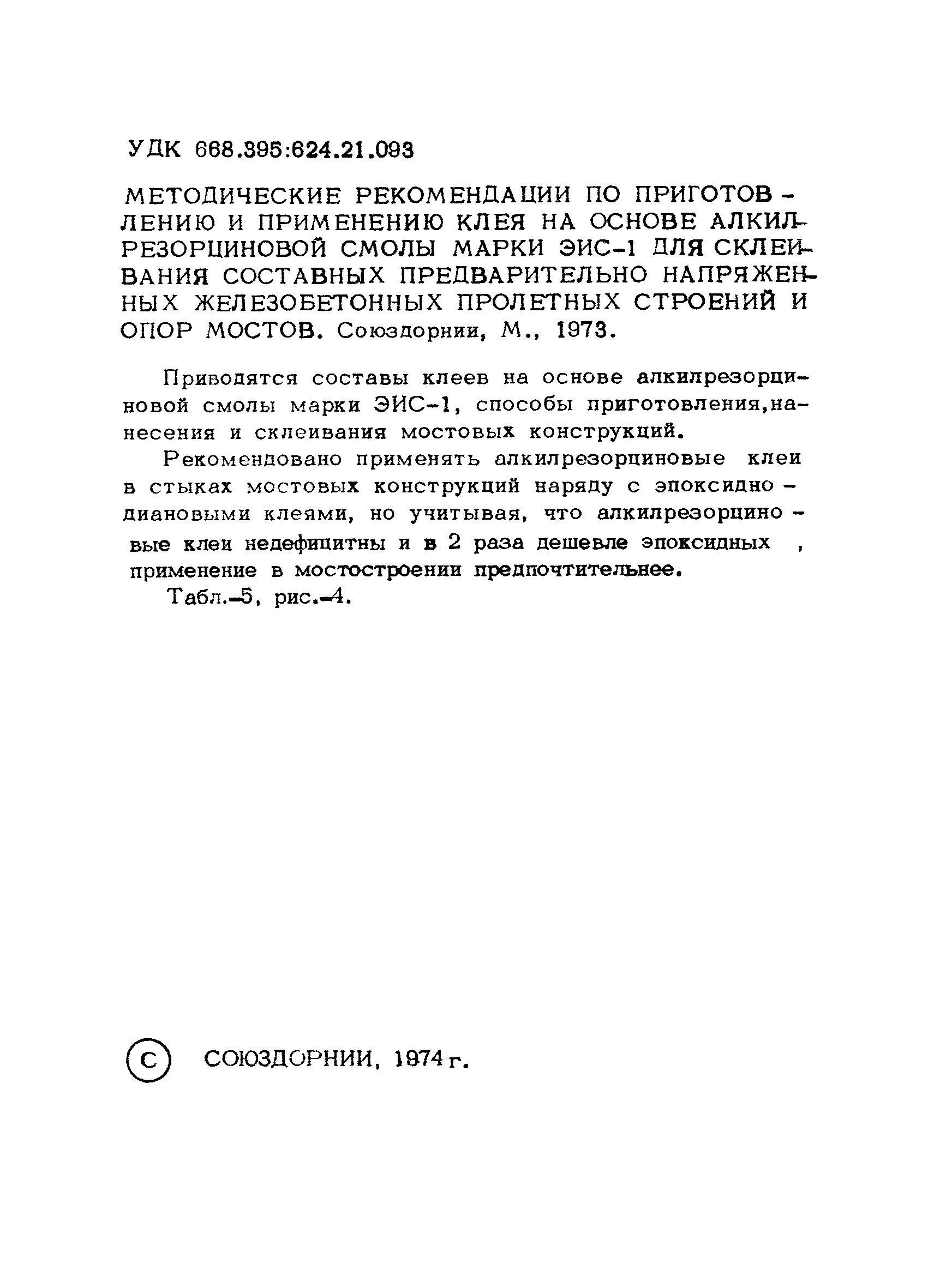 | Название рус.: | Методические рекомендации по приготовлению и применению клея на основе алкилрезорциновой смолы марки ЭИС-1 для склеивания составных предварительно напряженных железобетонных пролетных строений и опор мостов |