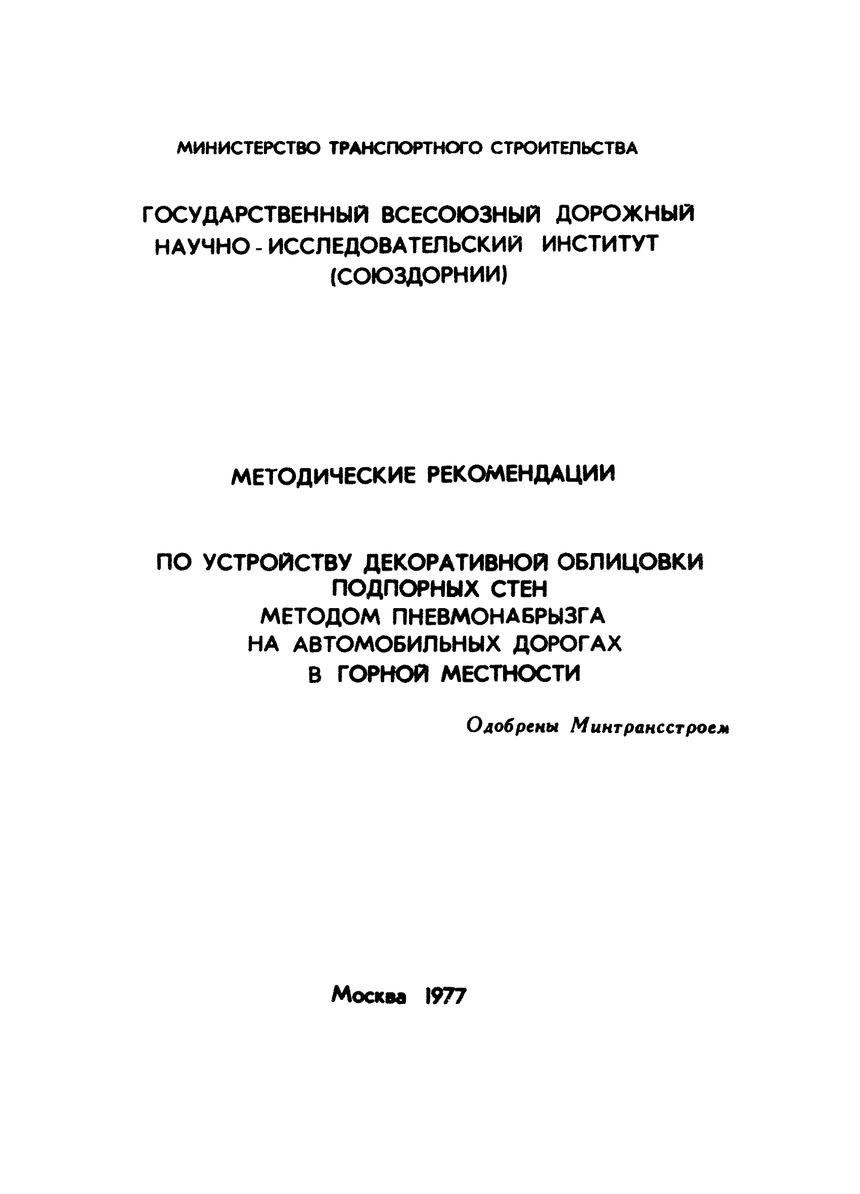 | Название рус.: | Методические рекомендации по устройству декоративной облицовки подпорных стен методом пневмонабрызга на автомобильных дорогах в горной местности |