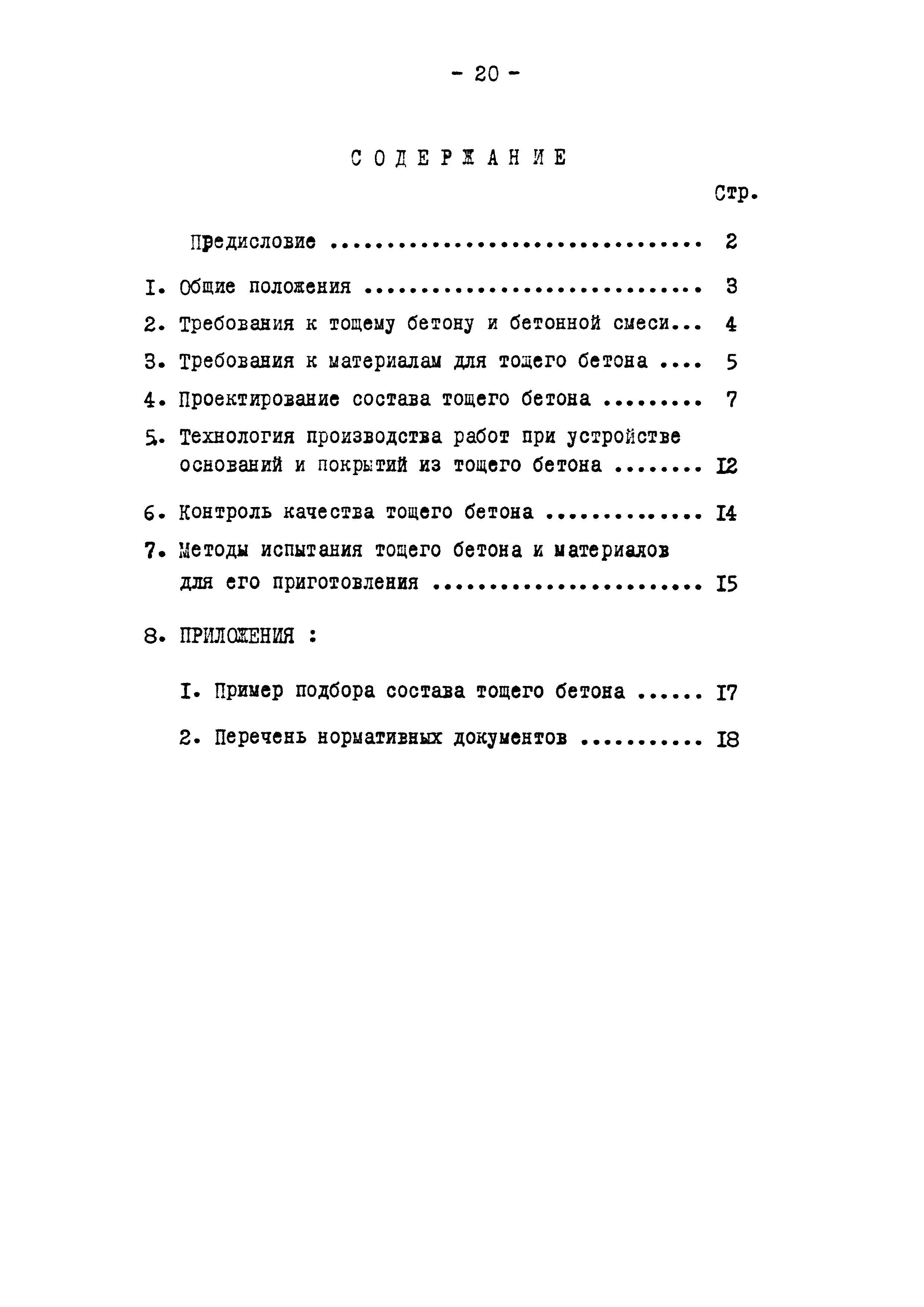 | Оглавление: | 1. Общие положения 2. Требования к тощему бетону и бетонной смеси 3. Требования к материалам для тощего бетона 4. Проектирование состава тощего бетона 5. Технология производства работ при устройстве оснований и покрытий из тощего бетона 6. Контроль качества тощего бетона 7. Методы испытания тощего бетона и материалов для его приготовления Приложение 1. Пример подбора состава тощего бетона Приложение 2. Перечень нормативных документов |