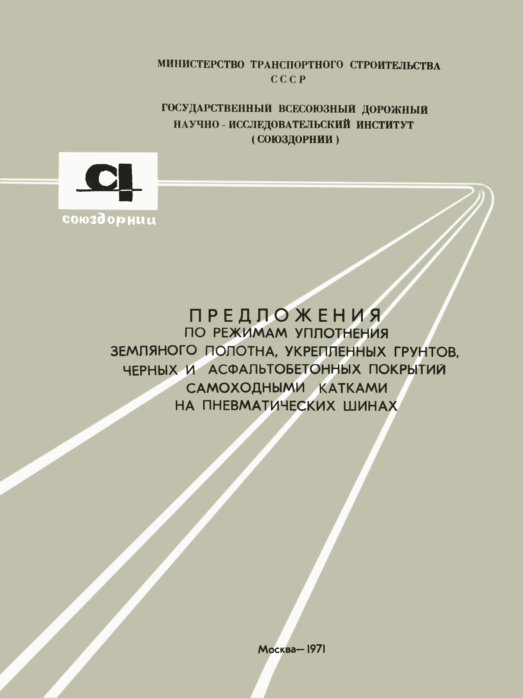 Скачать Предложения по режимам уплотнения земляного полотна, укрепленных грунтов, черных и асфальтобетонных покрытий самоходными катками на пневматических шинахДата актуализации: 01.01.2021
