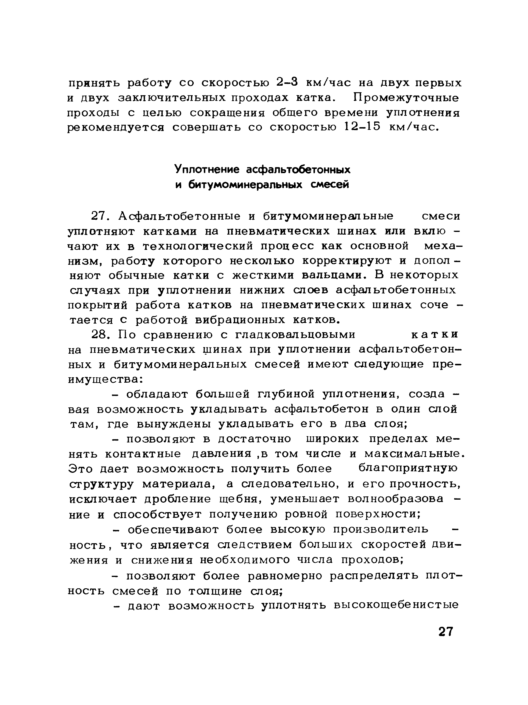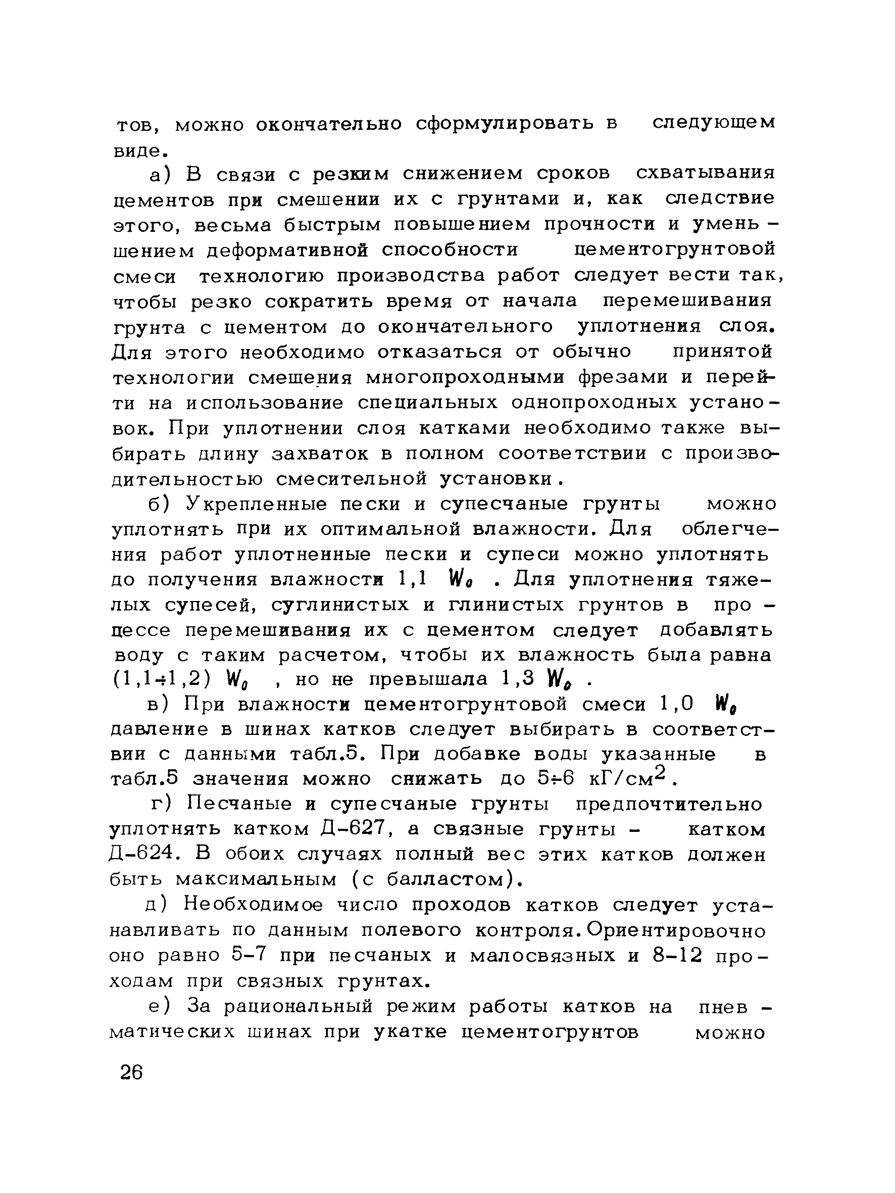 Предложения по режимам уплотнения земляного полотна, укрепленных грунтов, черных и асфальтобетонных покрытий самоходными катками на пневматических шинах| Статус: | справочные материалы, мп, тпр | | Название рус.: | Предложения по режимам уплотнения земляного полотна, укрепленных грунтов, черных и асфальтобетонных покрытий самоходными катками на пневматических шинах | | Дата добавления в базу: | 12.02.2016 | | Дата актуализации: | 01.01.2021 | | Область применения: | В Предложениях даны характеристики самоходных катков и рациональный режим их работы, область их применения, рекомендации по уплотнению грунтовых и щебеночных оснований, устраиваемых из грунта, укрепленного цементом, а также асфальтобетонных покрытий. | | Оглавление: | Общие положения Характеристики самоходных катков и область их применения Уплотнение грунтовых оснований Уплотнение щебеночных оснований Уплотнение конструктивных слоев дорожной одежды, устраиваемых из грунтов, укрепленных цементом Уплотнение асфальтобетонных и битумоминеральных смесей | | Разработан: | СоюздорНИИ