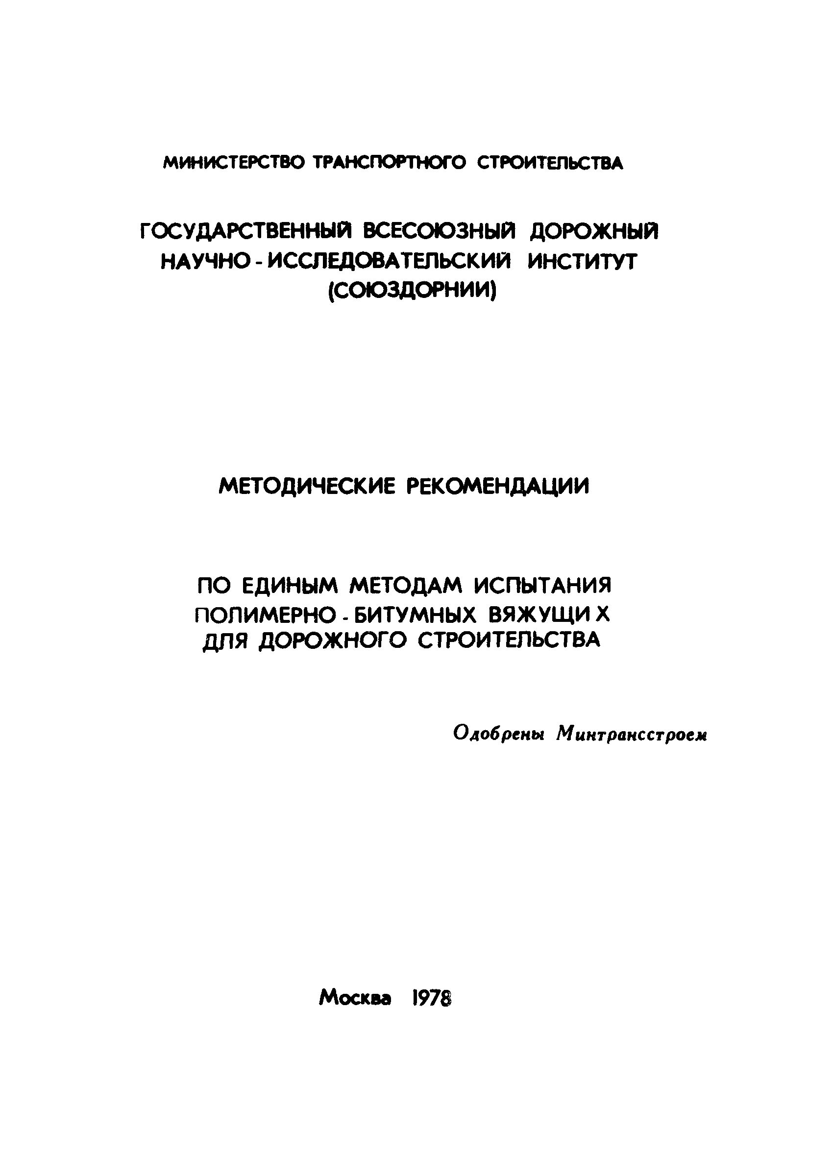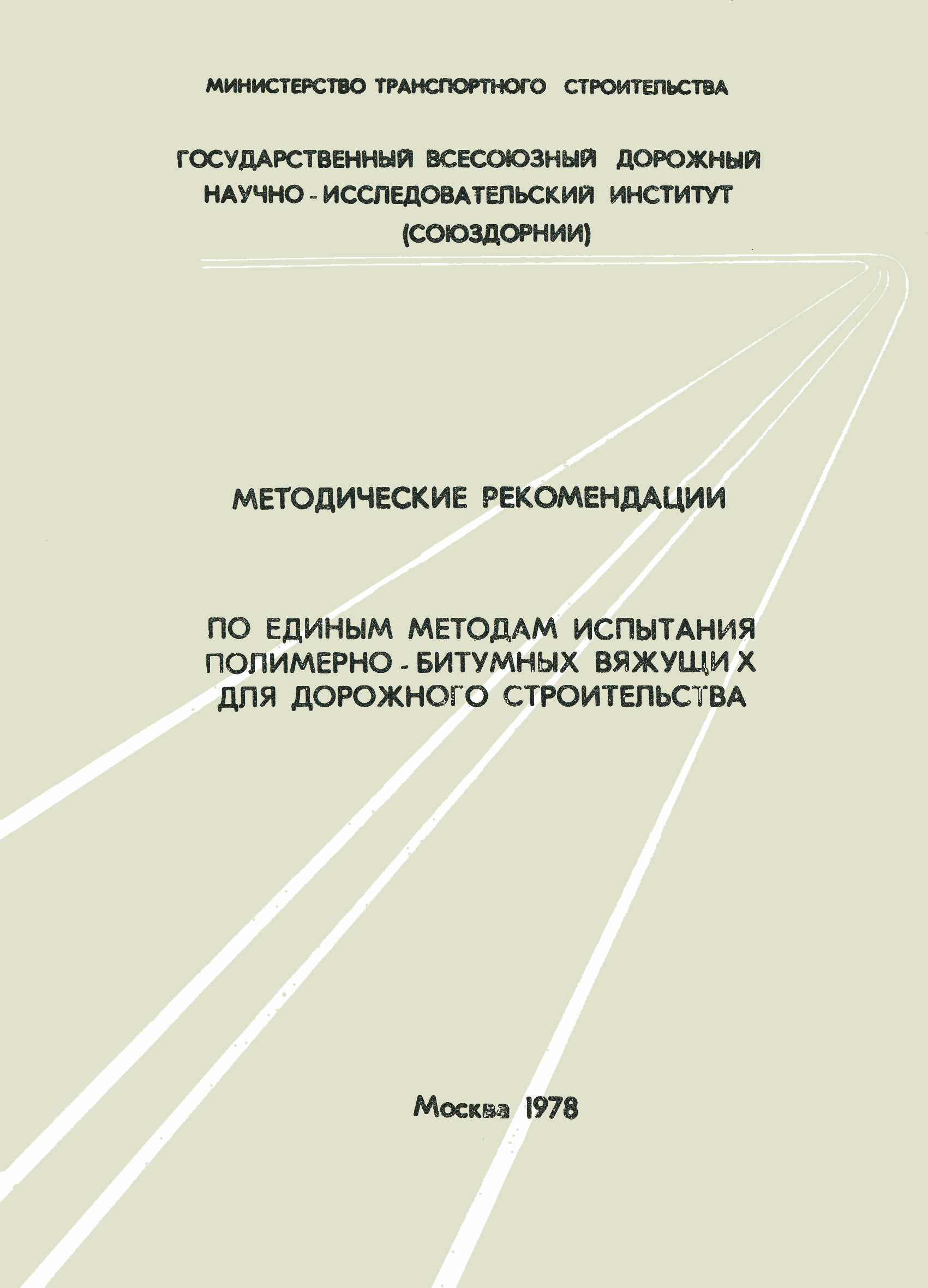 | Название рус.: | Методические рекомендации по единым методам испытания полимерно-битумных вяжущих для дорожного строительства |
