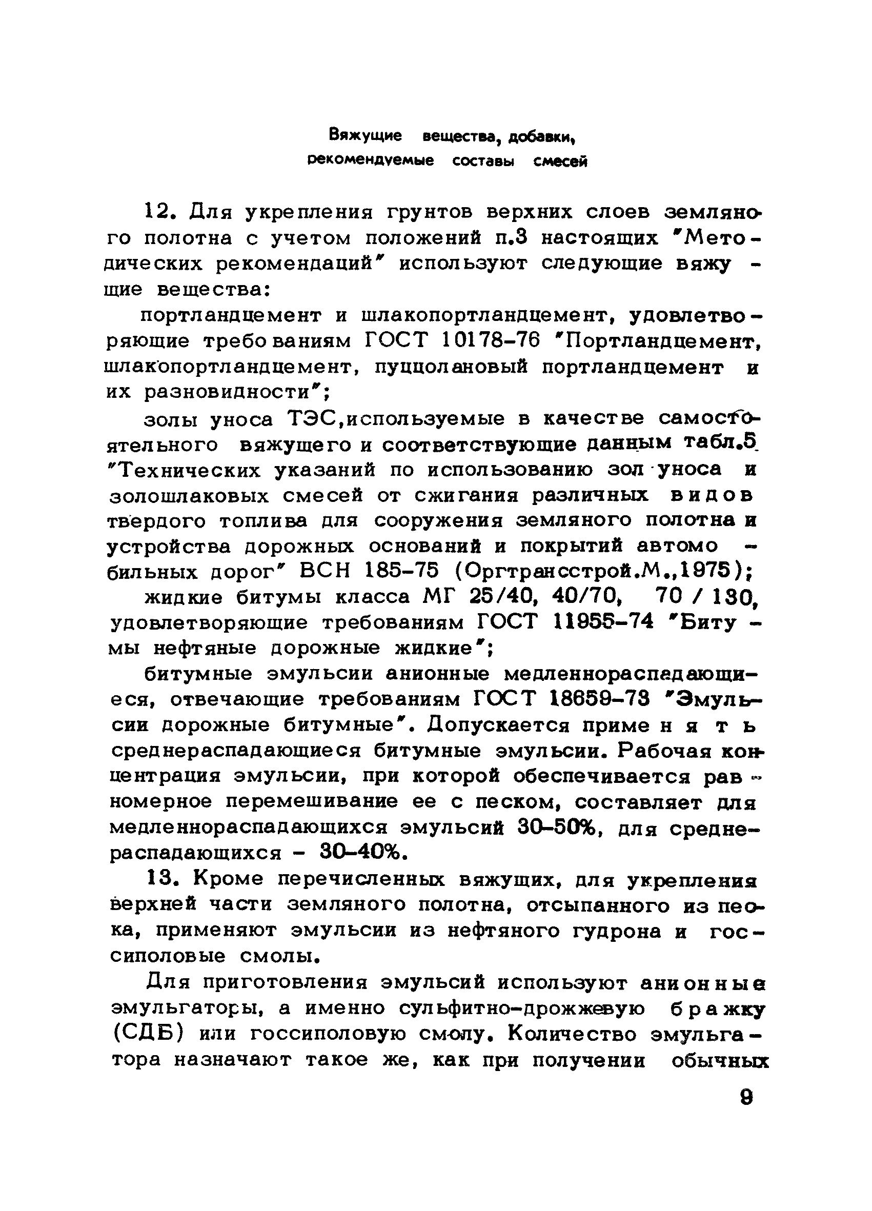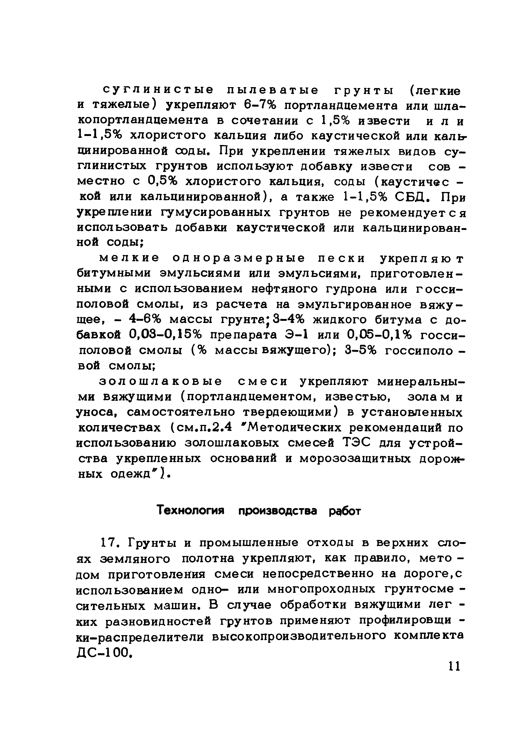 | Область применения: | Методические рекомендации по укреплению грунтов и отходов промышленности вяжущими для устройства верхней части земляного полотна автомобильных дорог развивают и уточняют требования "Инструкции по применению грунтов, укрепленных вяжущими материалами, для устройства оснований и покрытий автомобильных дорог и аэродромов СН 25-74 (М., Стройиздат., 1975). "Методические рекомендации" позволяют использовать в верхней части земляного полотна, применяя методы укрепления, как грунты, предрасположенные к значительному влагонакоплению и морозному пучению и потому недостаточно устойчивые, так и находящиеся в несвязном сухом сыпучем состоянии. Следует отметить, что неукрепленные грунты, особенно песчаные, не обеспечивают проезд построечного транспорта и требуют дополнительных затрат на устройство слоев из привозных материалов с целью создать необходимые условия для укладки вышележащих слоев дорожных одежд. |