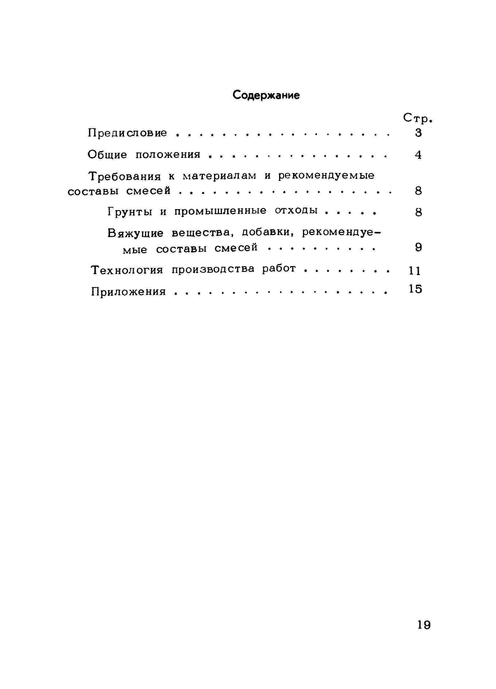 | Оглавление: | Предисловие Общие положения Требования к материалам и рекомендуемые составы смесей Грунты и промышленные отходы Вяжущие вещества, добавки, рекомендуемые составы смесей Технология производства работ Приложение 1. Толщины слоев из грунтов, укрепленных вяжущими, эквивалентных по прочности песчаным слоям с E = 1000 кгс/см2 Приложение 2. Уменьшение глубины промерзания при замене песчаных слоев слоями из обработанных вяжущими материалов |
