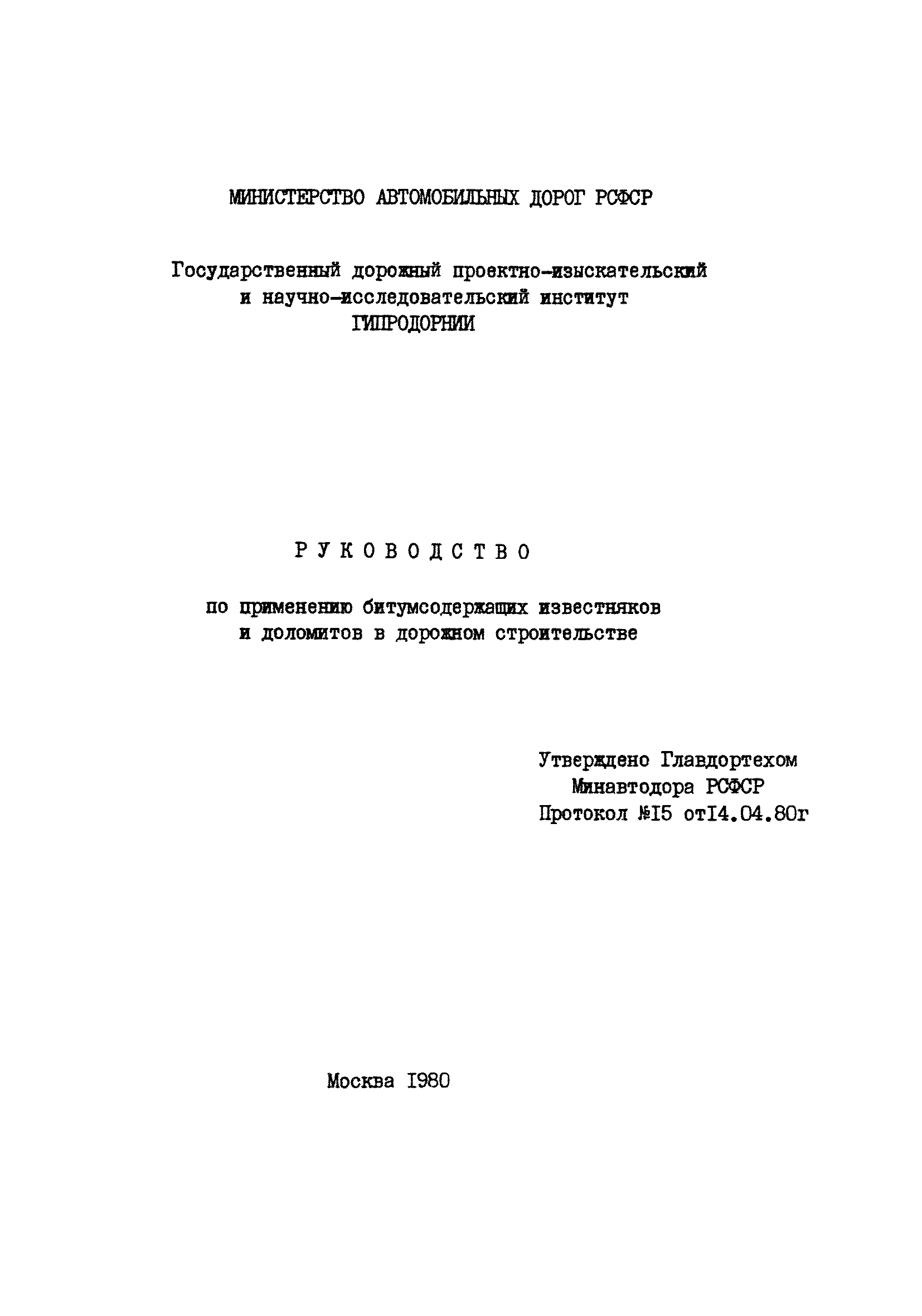 | Утверждён: | 14.04.1980 Главдортех Минавтодора РСФСР (Glavdortekh, Russian Federation Minavtodor 15) |