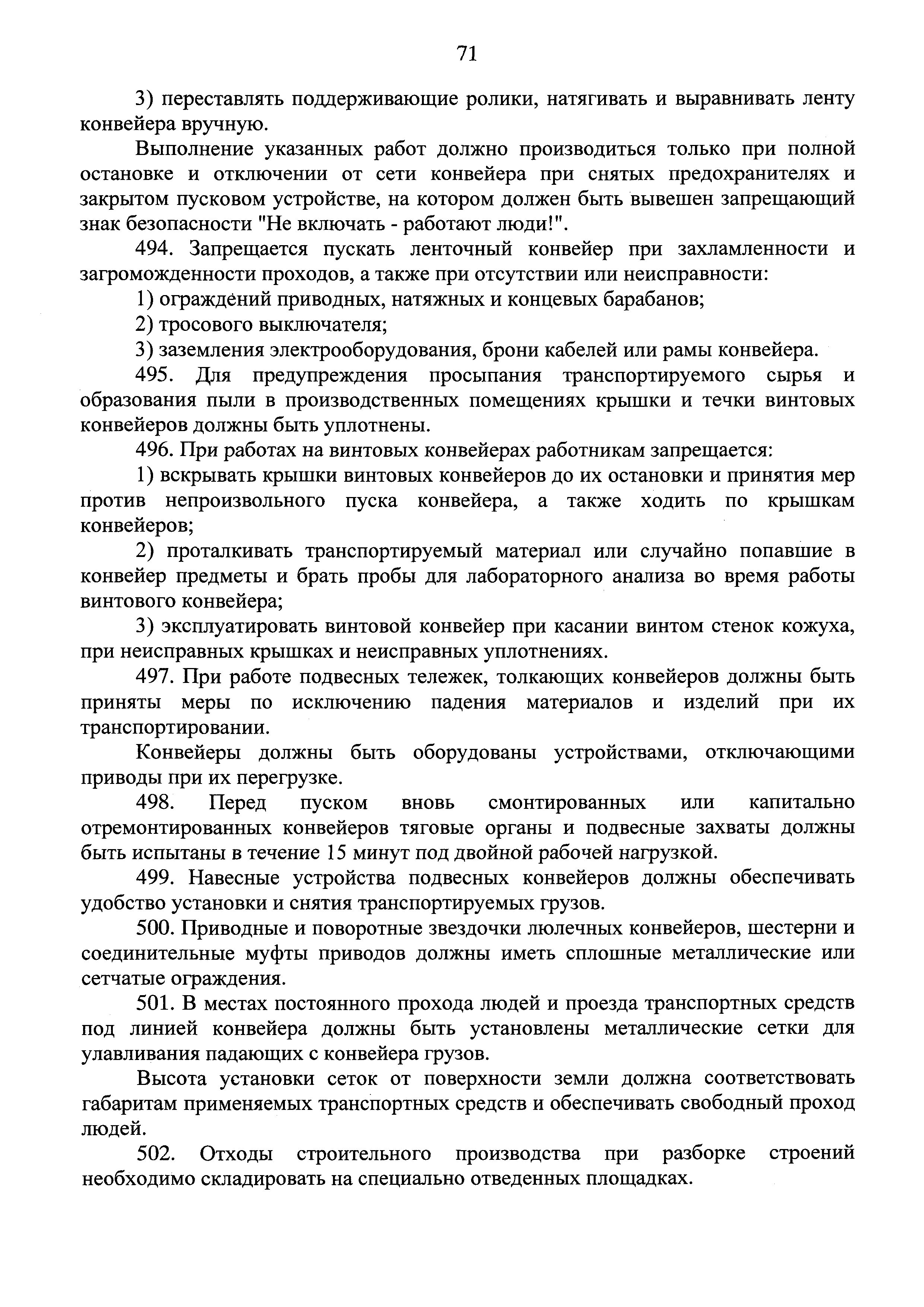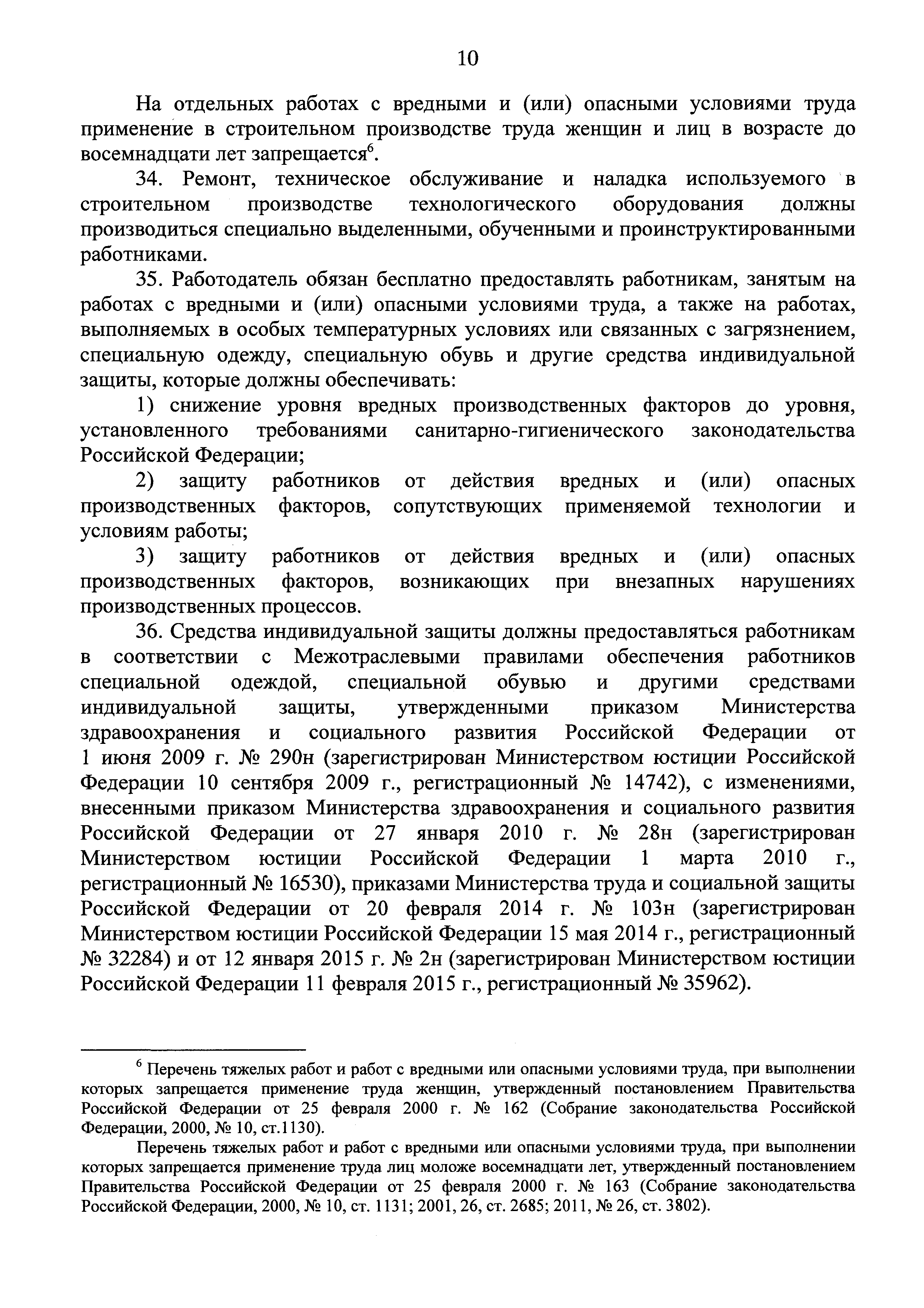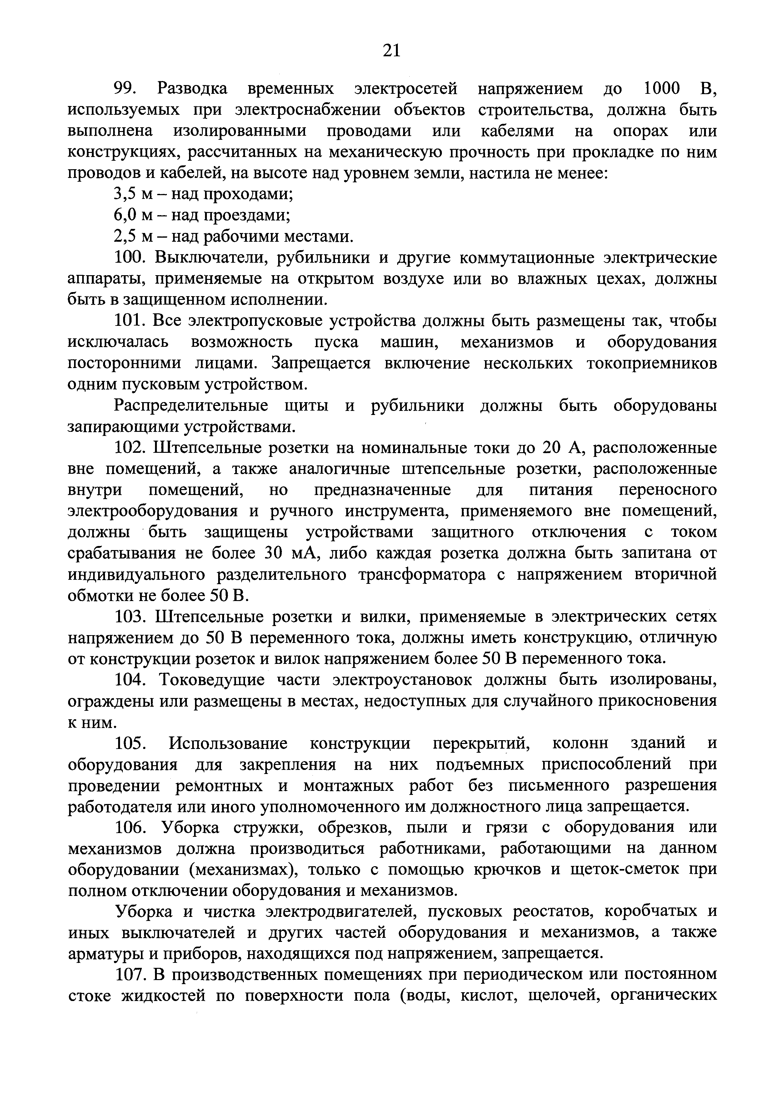 | | Нормативные ссылки: |  Постановление 105 «О новых нормах предельно допустимых нагрузок для женщин при подъеме и перемещении тяжестей вручную» Постановление 7 «Нормы предельно допустимых нагрузок для лиц, моложе 18 лет при подъеме и перемещении тяжестей вручную» Постановление 1/29 «Об утверждении Порядка обучения по охране труда и проверки знаний требований охраны труда работников организаций» Кодекс «Трудовой кодекс Российской Федерации» «Межотраслевые правила обеспечения работников специальной одеждой, специальной обувью и другими средствами индивидуальной защиты» «Перечень тяжелых работ и работ с вредными или опасными условиями труда, при выполнении которых запрещается применение труда лиц моложе восемнадцати лет»  «Перечень тяжелых работ и работ с вредными или опасными условиями труда, при выполнении которых запрещается применение труда женщин» Приказ 302н «Об утверждении перечней вредных и (или) опасных производственных факторов и работ, при выполнении которых проводятся обязательные предварительные и периодические медицинские осмотры (обследования), и Порядка проведения обязательных предварительных и периодических медицинских осмотров (обследований) работников, занятых на тяжелых работах и на работах с вредными и (или) опасными условиями труда» «Порядок выдачи специального разрешения на движение по автомобильным дорогам транспортного средства, осуществляющего перевозки тяжеловесных и (или) крупногабаритных грузов»  «Правила по охране труда при эксплуатации электроустановок»  «Федеральные нормы и правила в области промышленной безопасности "Правила безопасности при взрывных работах"»  «Правила по охране труда при работе на высоте» Приказ 224 «О санитарно-эпидемиологических экспертизах, обследованиях, исследованиях, испытаниях и токсикологических, гигиенических и иных видах оценок»  Решение 823 «О принятии технического регламента Таможенного союза "О безопасности машин и оборудования"»  ПТЭ «Правила технической эксплуатации электроустановок потребителей»  Технический регламент Таможенного союза 032/2013 «О безопасности оборудования, работающего под избыточным давлением» Приказ 7 «Об утверждении Правил обеспечения безопасности перевозок пассажиров и грузов автомобильным транспортом и городским наземным электрическим транспортом и Перечня мероприятий по подготовке работников юридических лиц и индивидуальных предпринимателей, осуществляющих перевозки автомобильным транспортом и городским наземным электрическим транспортом, к безопасной работе и транспортных средств к безопасной эксплуатации» «Правила по охране труда при погрузочно-разгрузочных работах и размещении грузов» «Требования к комплектации изделиями медицинского назначения аптечек для оказания первой помощи работникам» «Положение о Министерстве труда и социальной защиты Российской Федерации»  СанПиН 2.1.4.1074-01 «Питьевая вода. Гигиенические требования к качеству воды централизованных систем питьевого водоснабжения. Контроль качества. Гигиенические требования к обеспечению безопасности систем горячего водоснабжения»