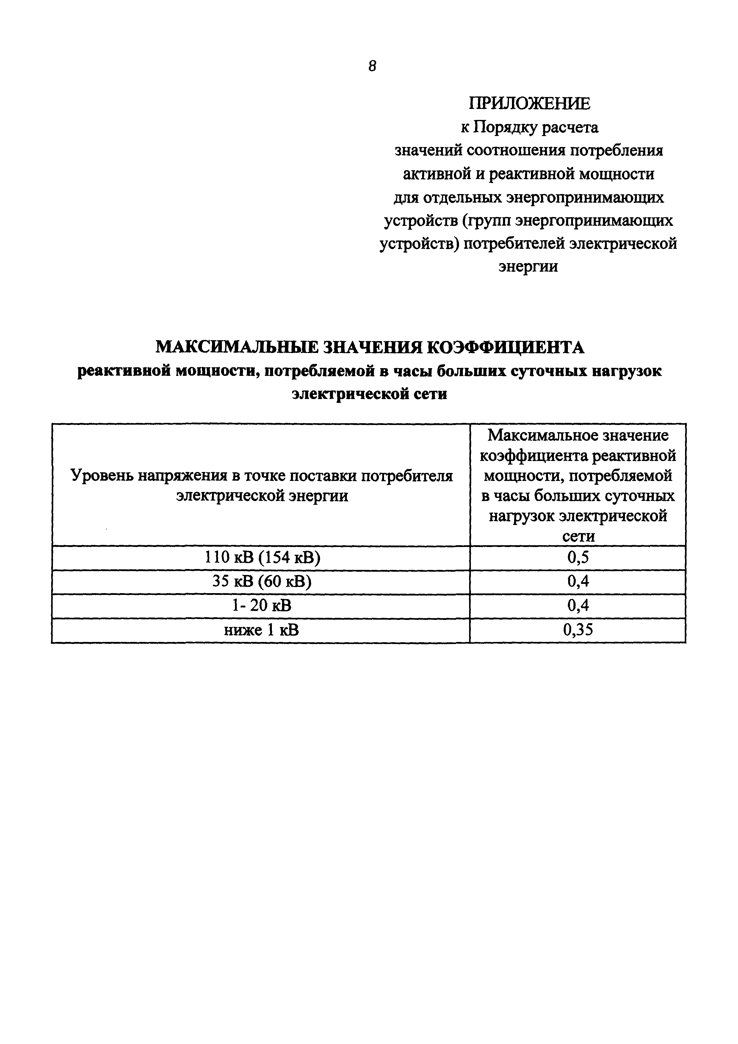 | Название рус.: | Порядок расчета значений соотношения потребления активной и реактивной мощности для отдельных энергопринимающих устройств (групп энергопринимающих устройств) потребителей электрической энергии |