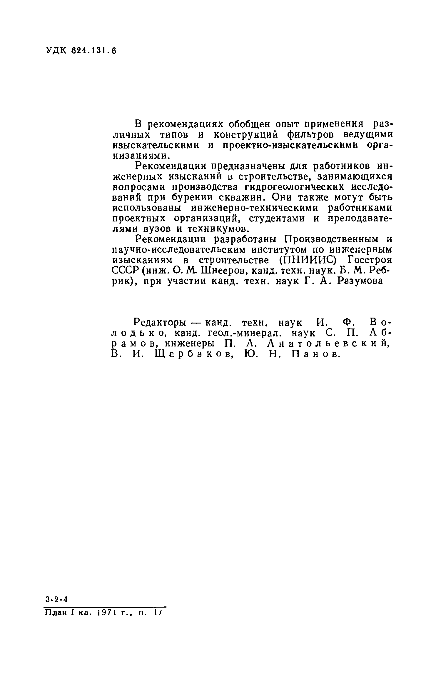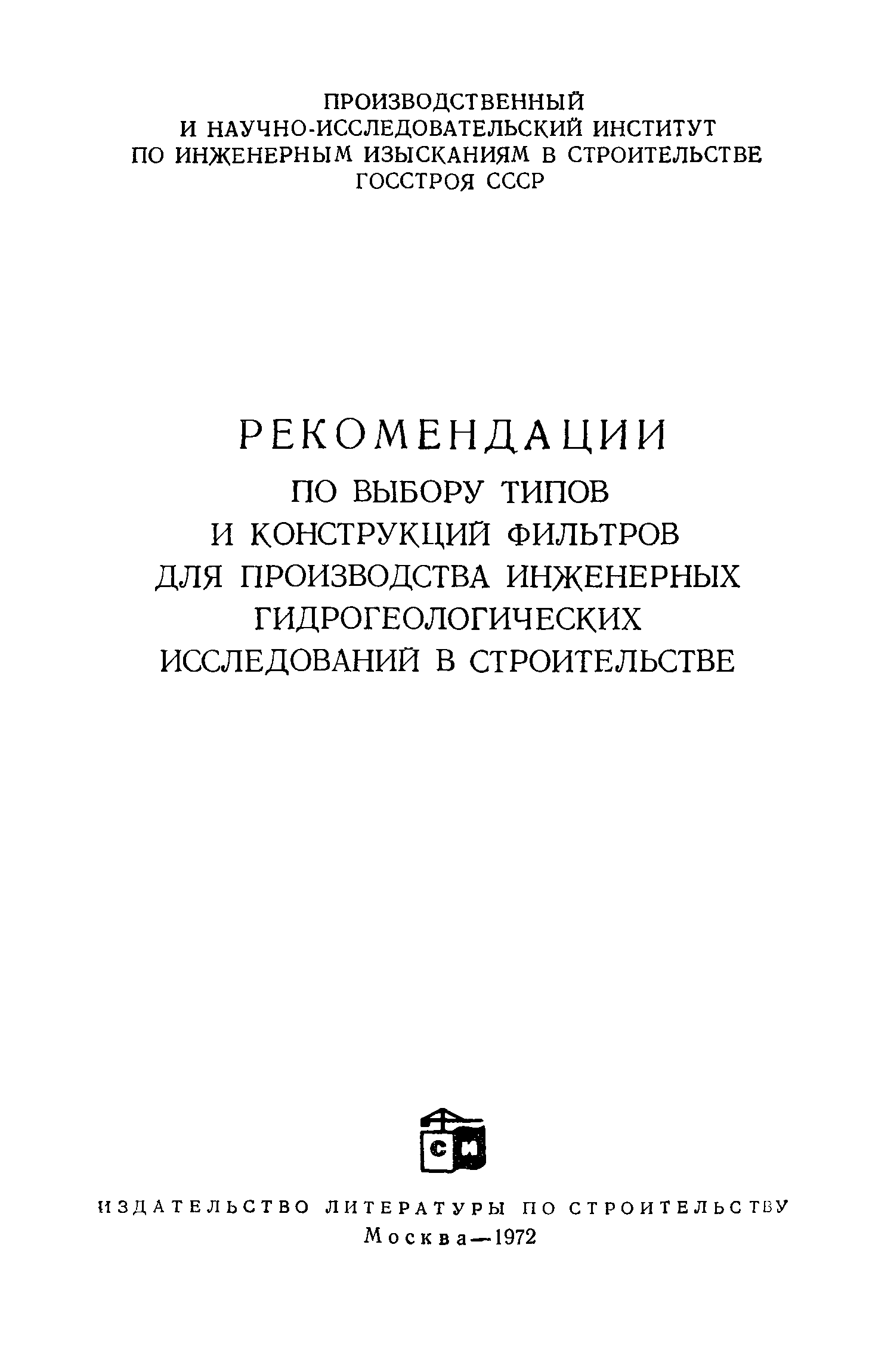 | Название рус.: | Рекомендации по выбору типов и конструкций фильтров для производства инженерных гидрогеологических исследований в строительстве |