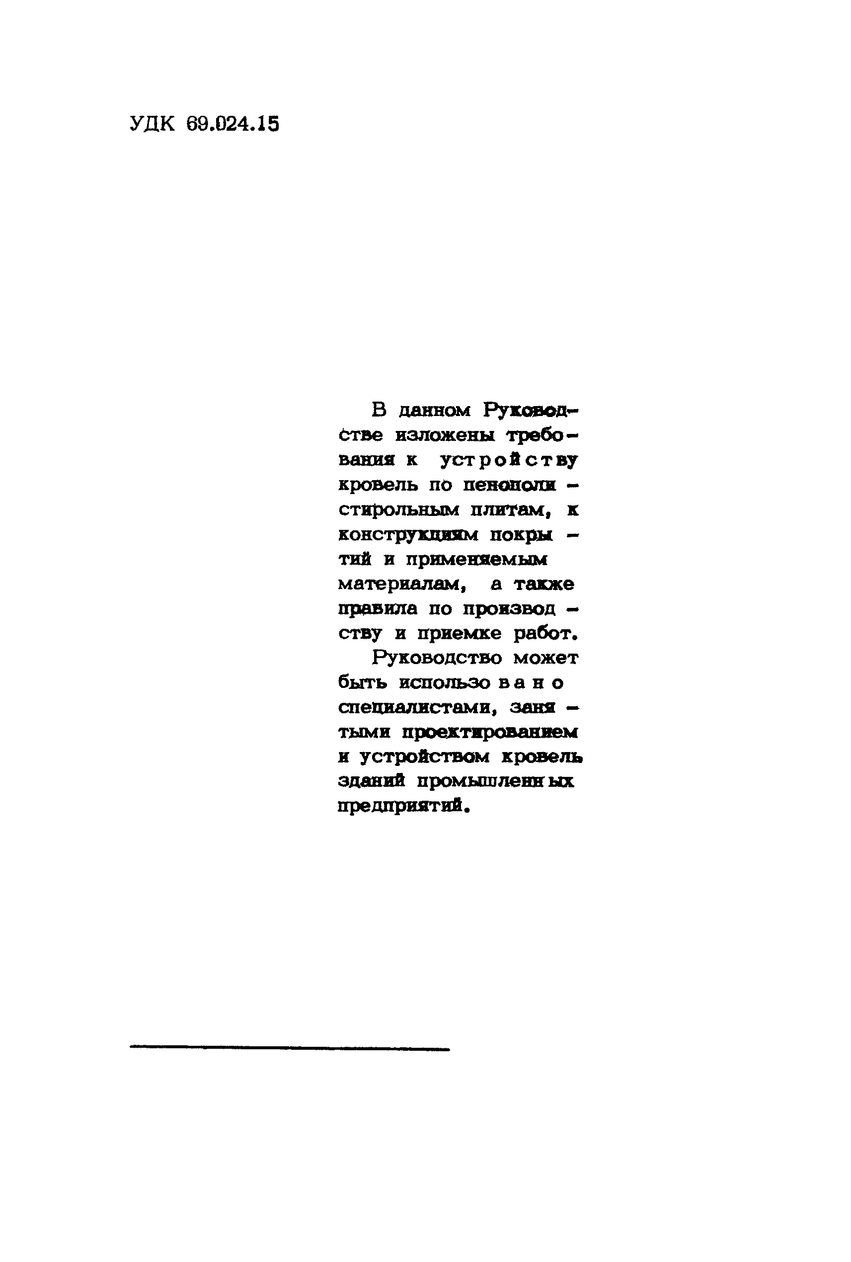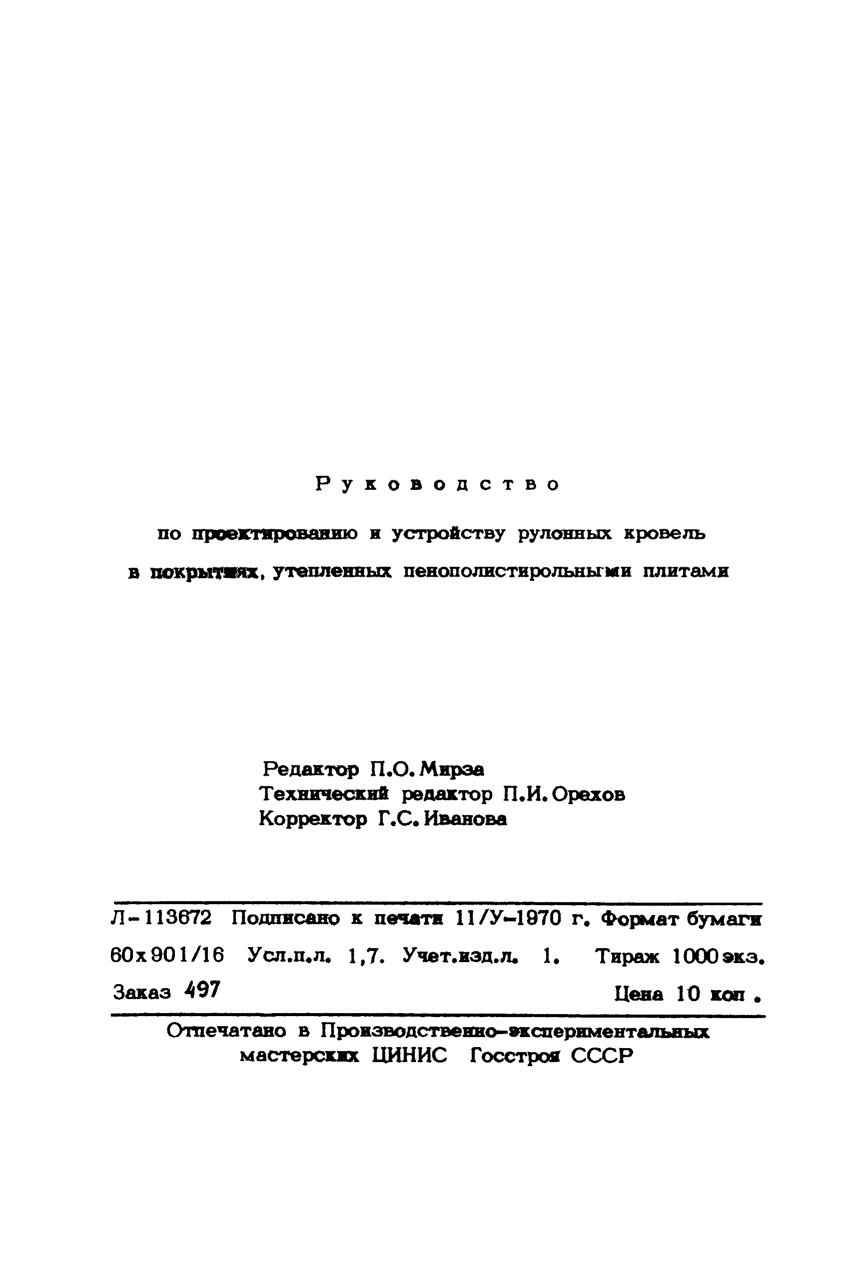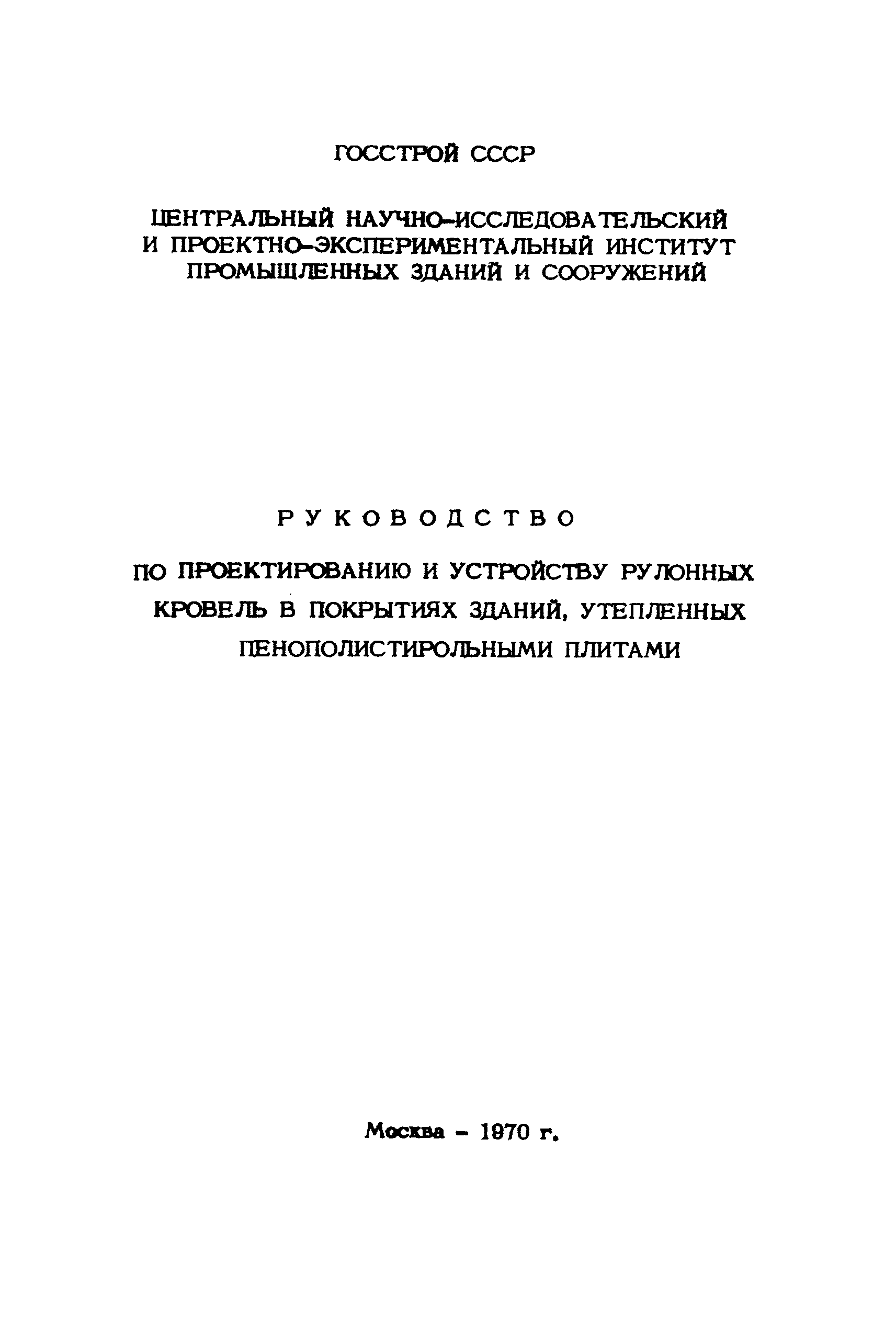 | Название рус.: | Руководство по проектированию и устройству рулонных кровель в покрытиях зданий, утепленных пенополистирольными плитами |