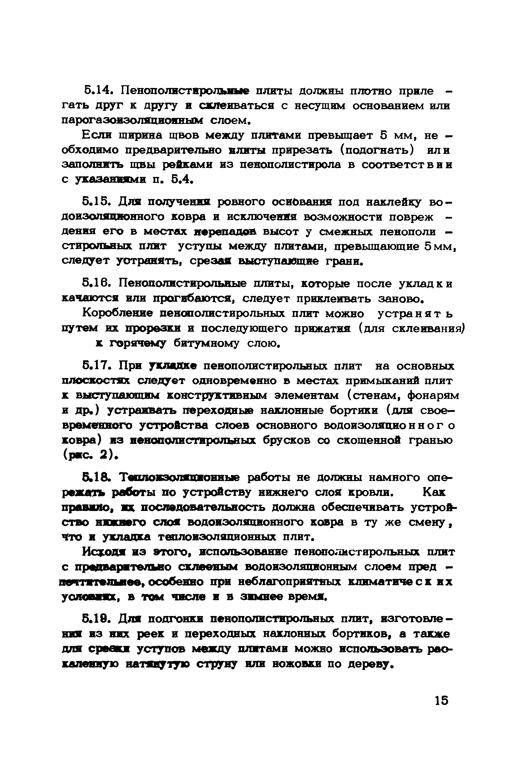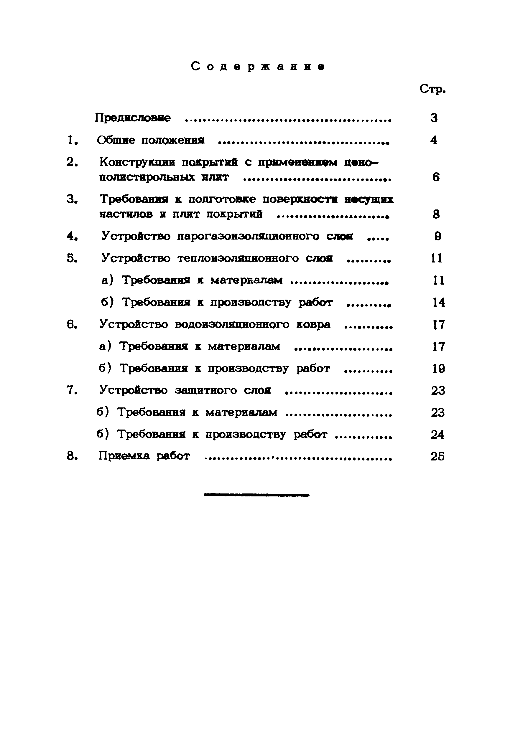 | Оглавление: | 1. Общие положения 2. Конструкции покрытий с применением пенополистирольных плит 3. Требования к подготовке поверхности несущих настилов и плит покрытий 4. Устройство парогазоизоляционного слоя 5. Устройство теплоизоляционного слоя 6. Устройство водоизоляционного ковра 7. Устройство защитного слоя 8. Приемка работ |