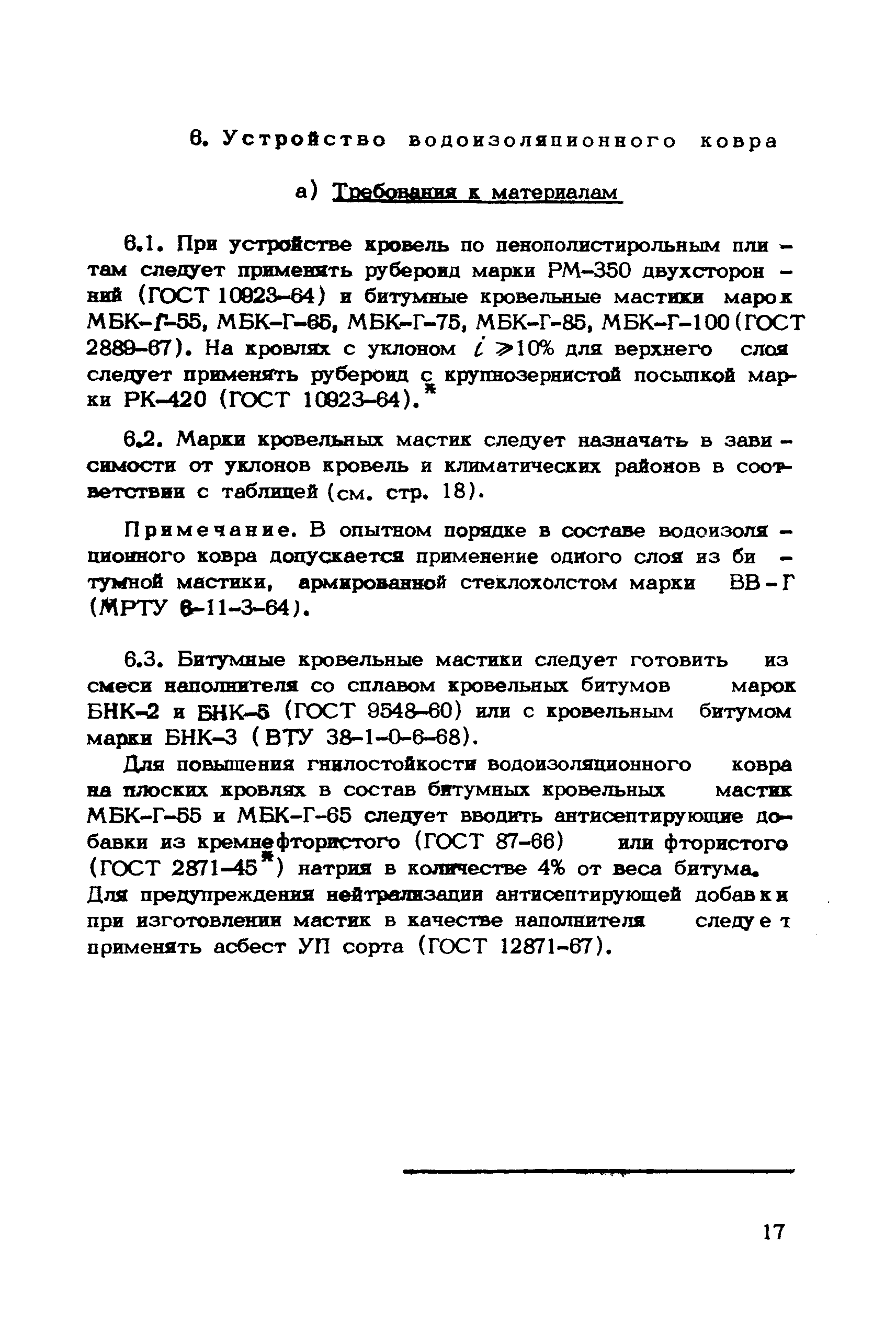 | Область применения: | Руководство распространяется на устройство кровель в покрытиях зданий, утепленных пенополистирольными плитами, по несущим стальным профилированным настилам, железобетонным или легкобетонным плитам. |