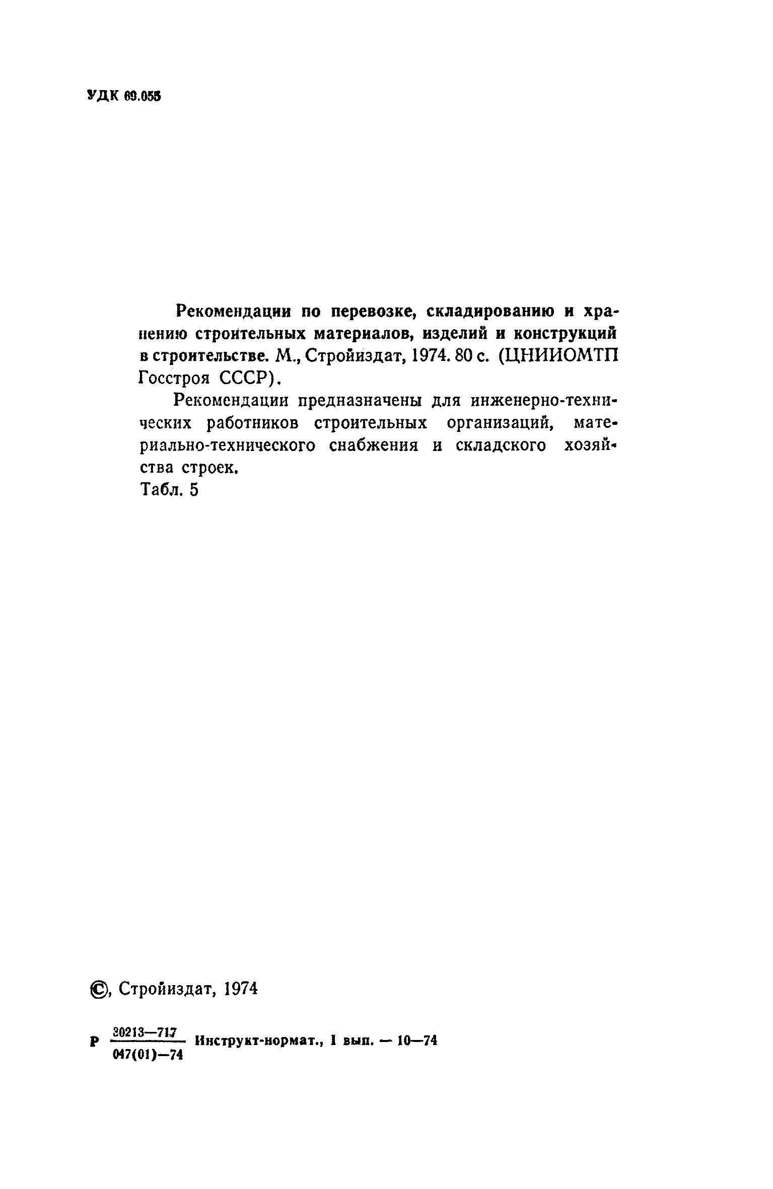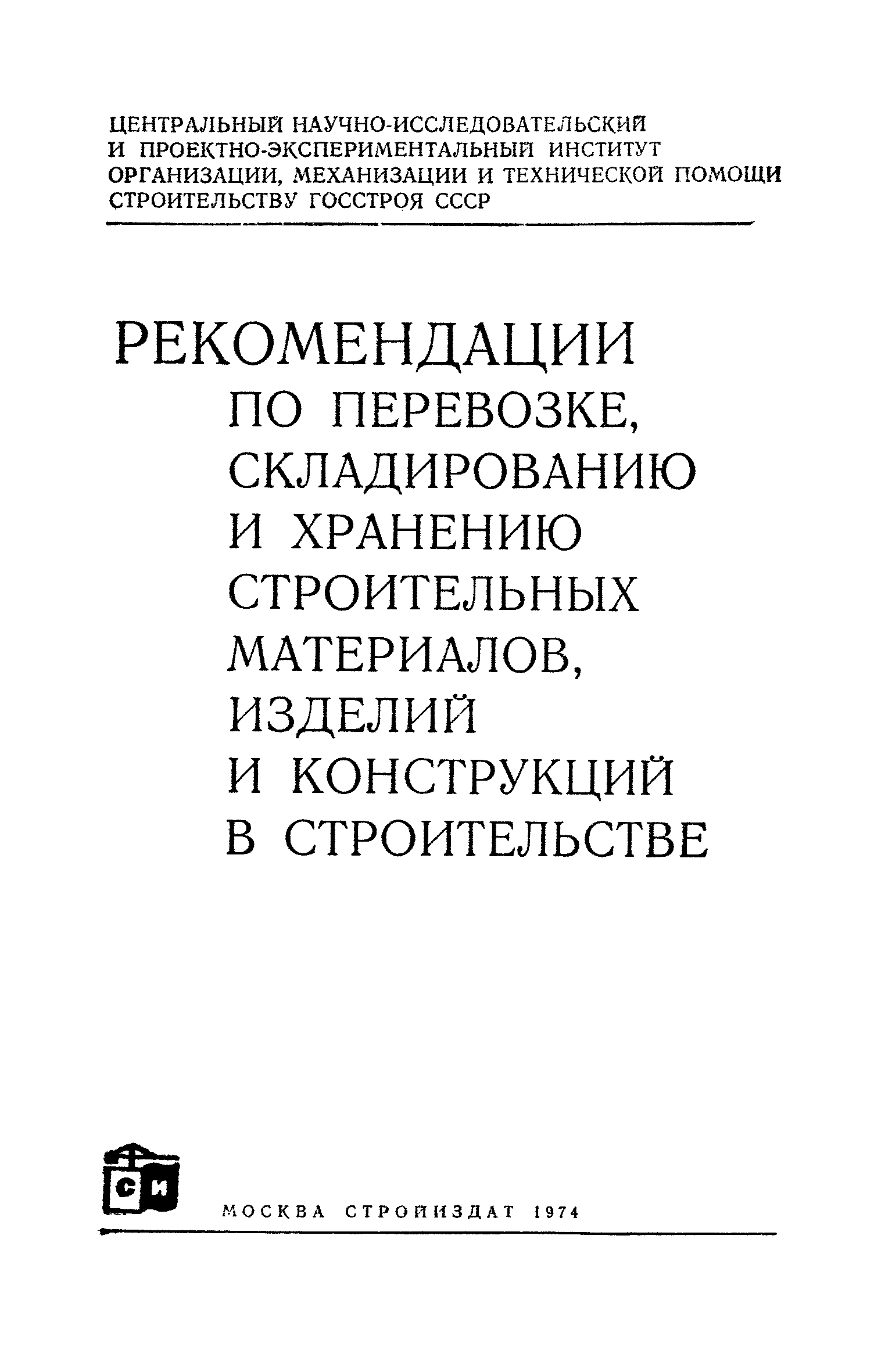 | Название рус.: | Рекомендации по перевозке, складированию и хранению строительных материалов, изделий и конструкций в строительстве |