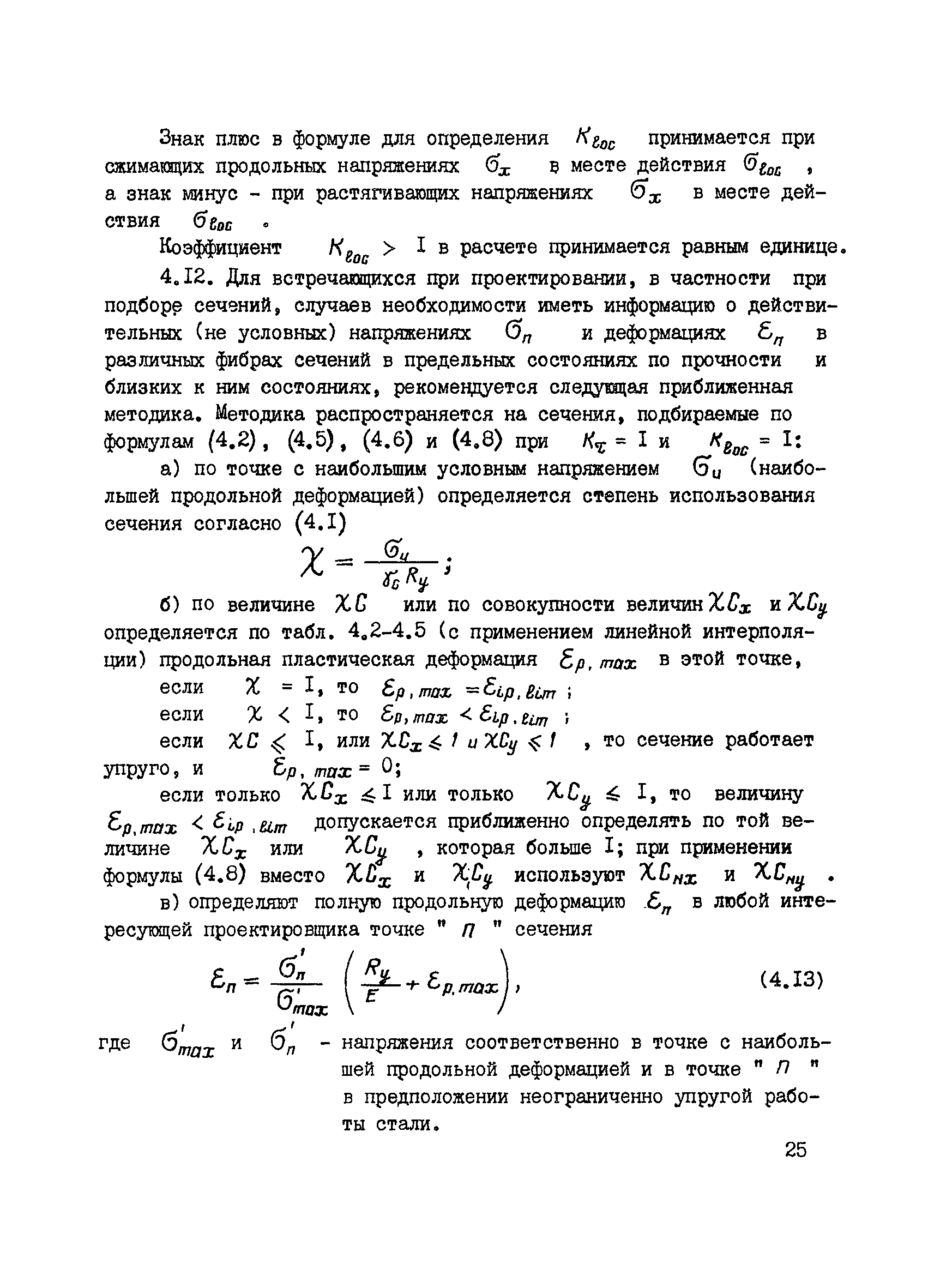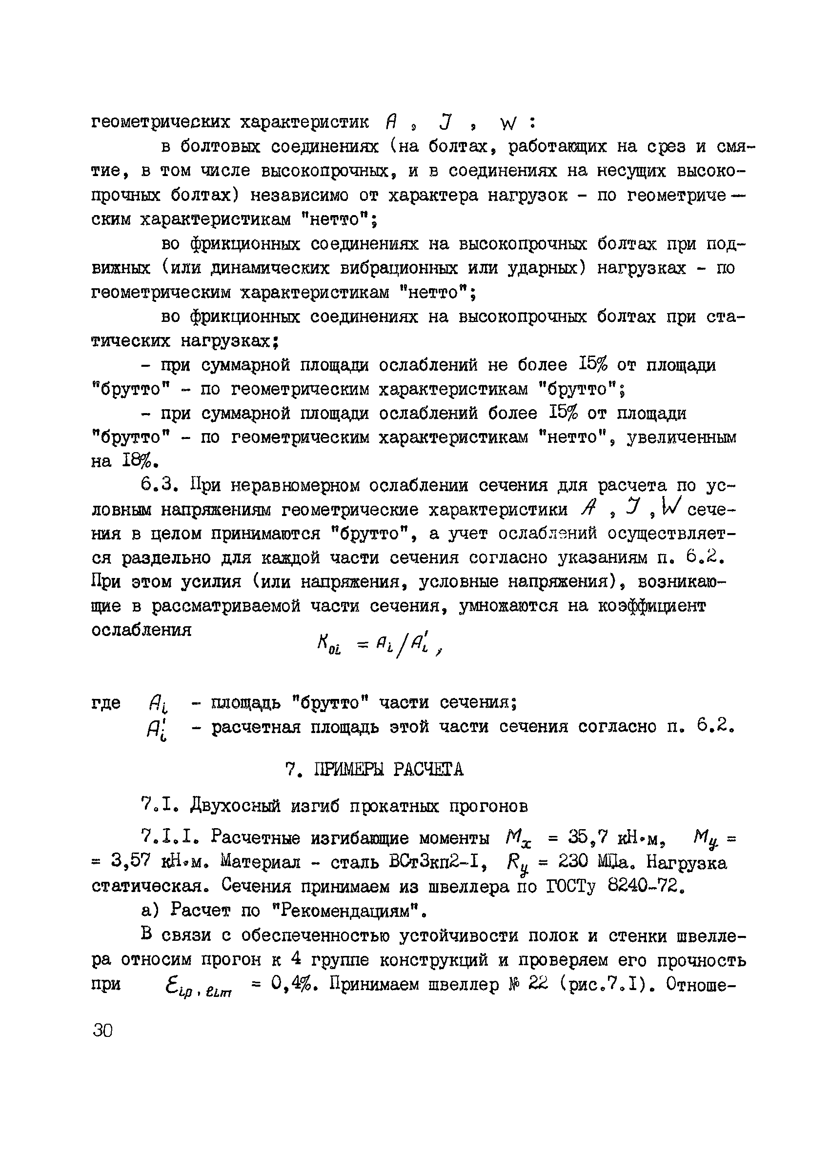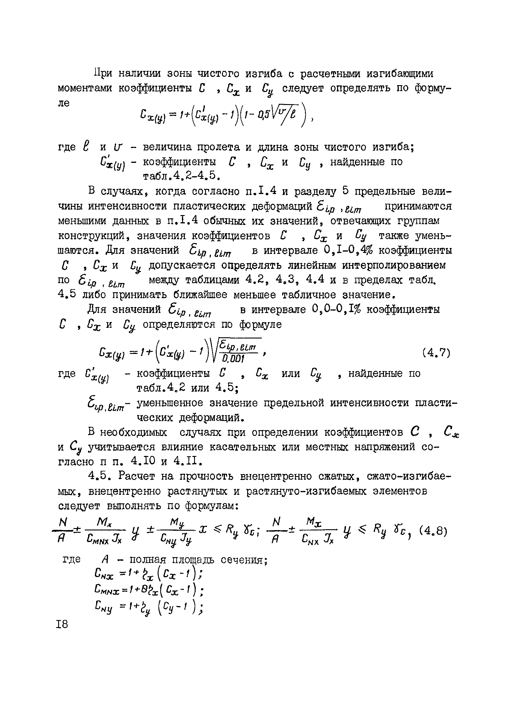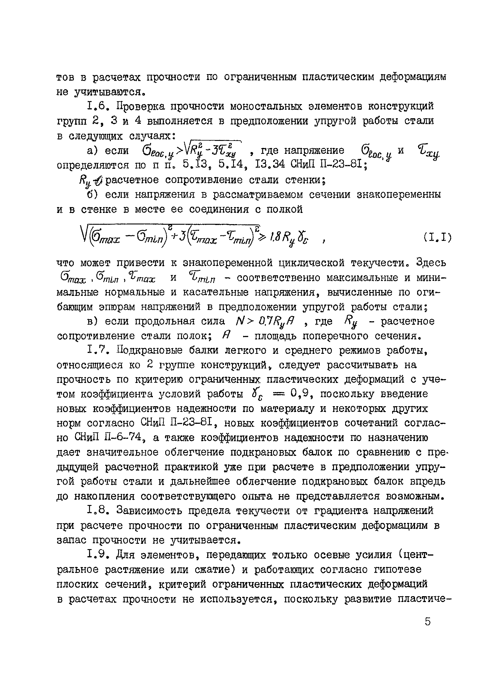 | Область применения: | Рекомендации распространяются на расчеты стальных конструкций на прочность по эксплуатационной пригодности (гарантирующие от чрезмерного развития пластических деформаций) при действии статических, подвижных и вибрационных нагрузок, вызывающих в элементах одноосный изгиб, двухосный изгиб и изгиб с осевыми силами; рассматриваются элементы конструкций, выполненные из одной марки стали (моностальные). |