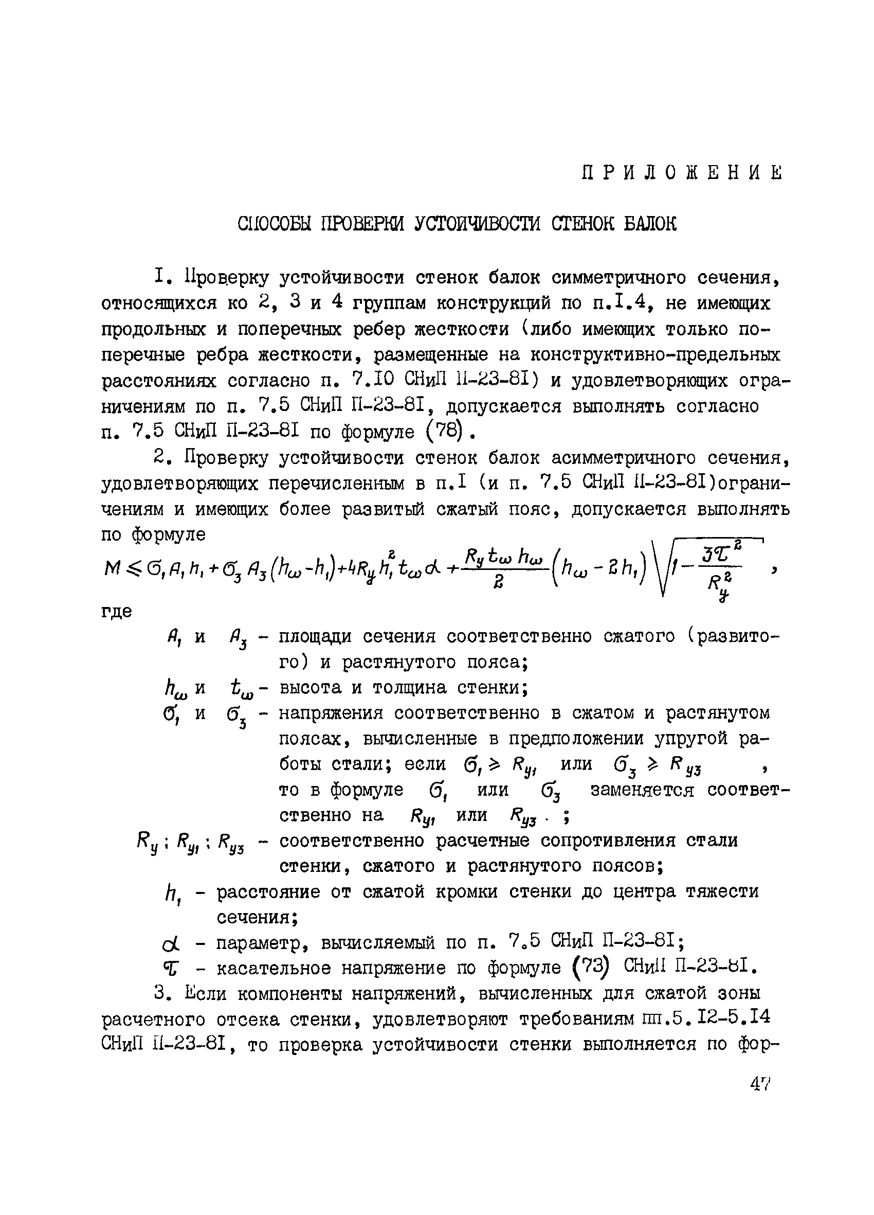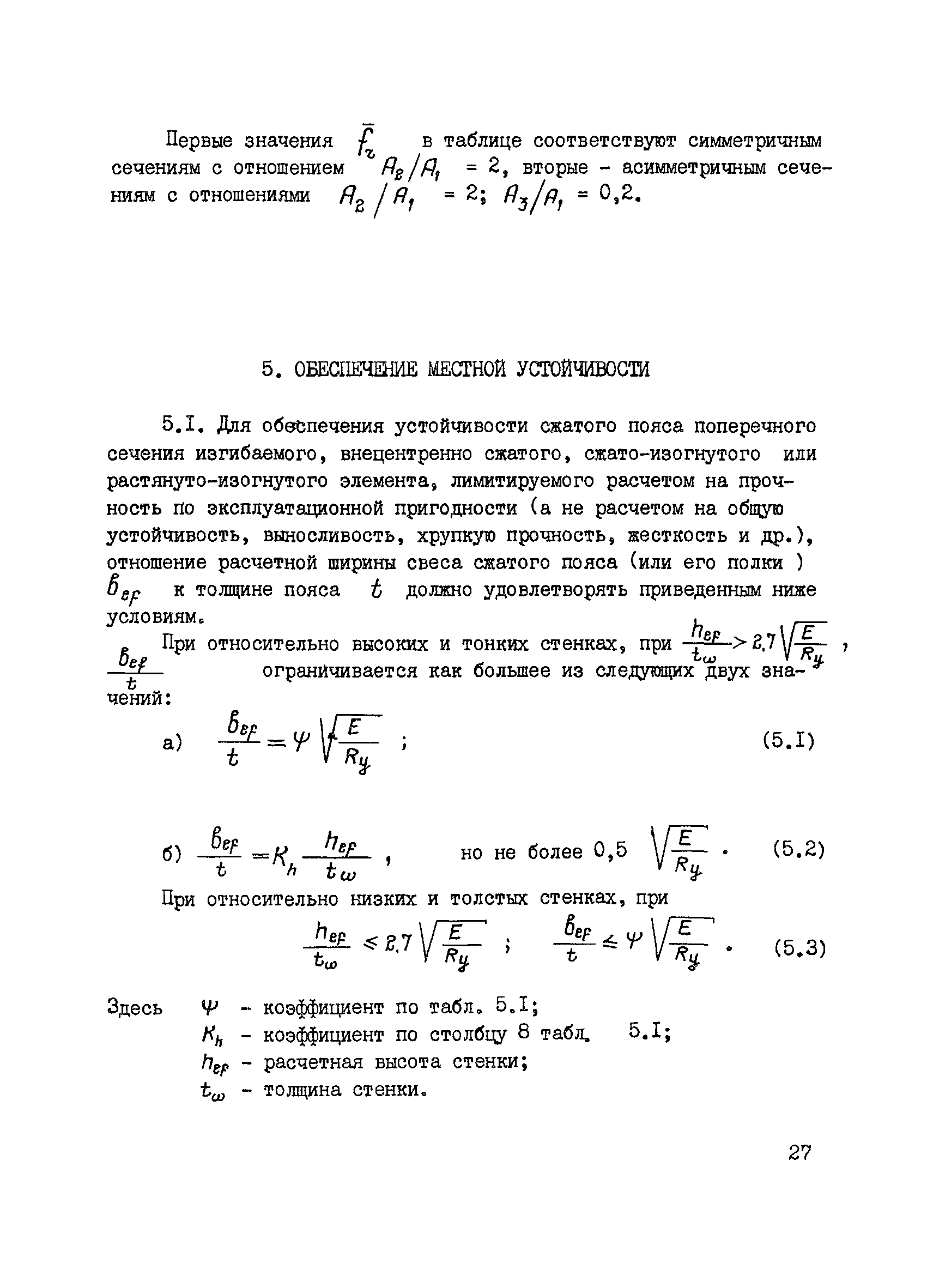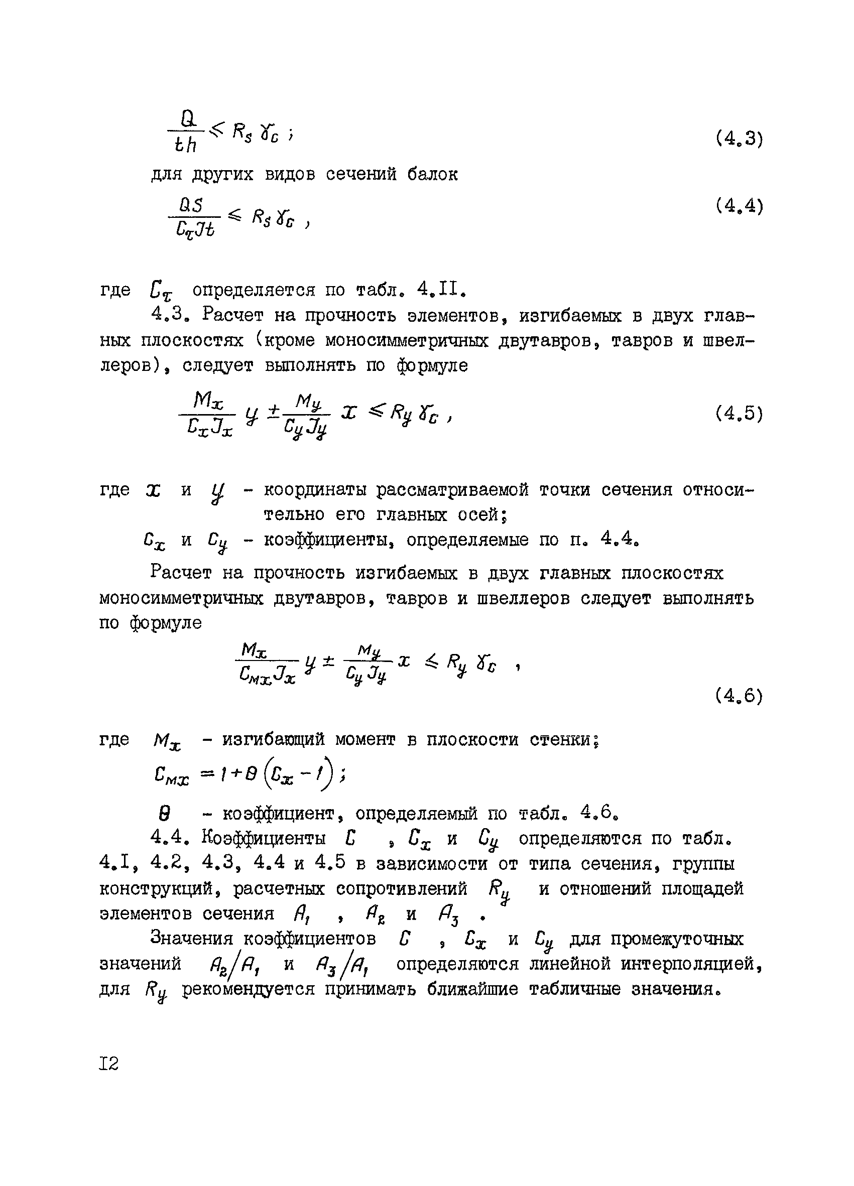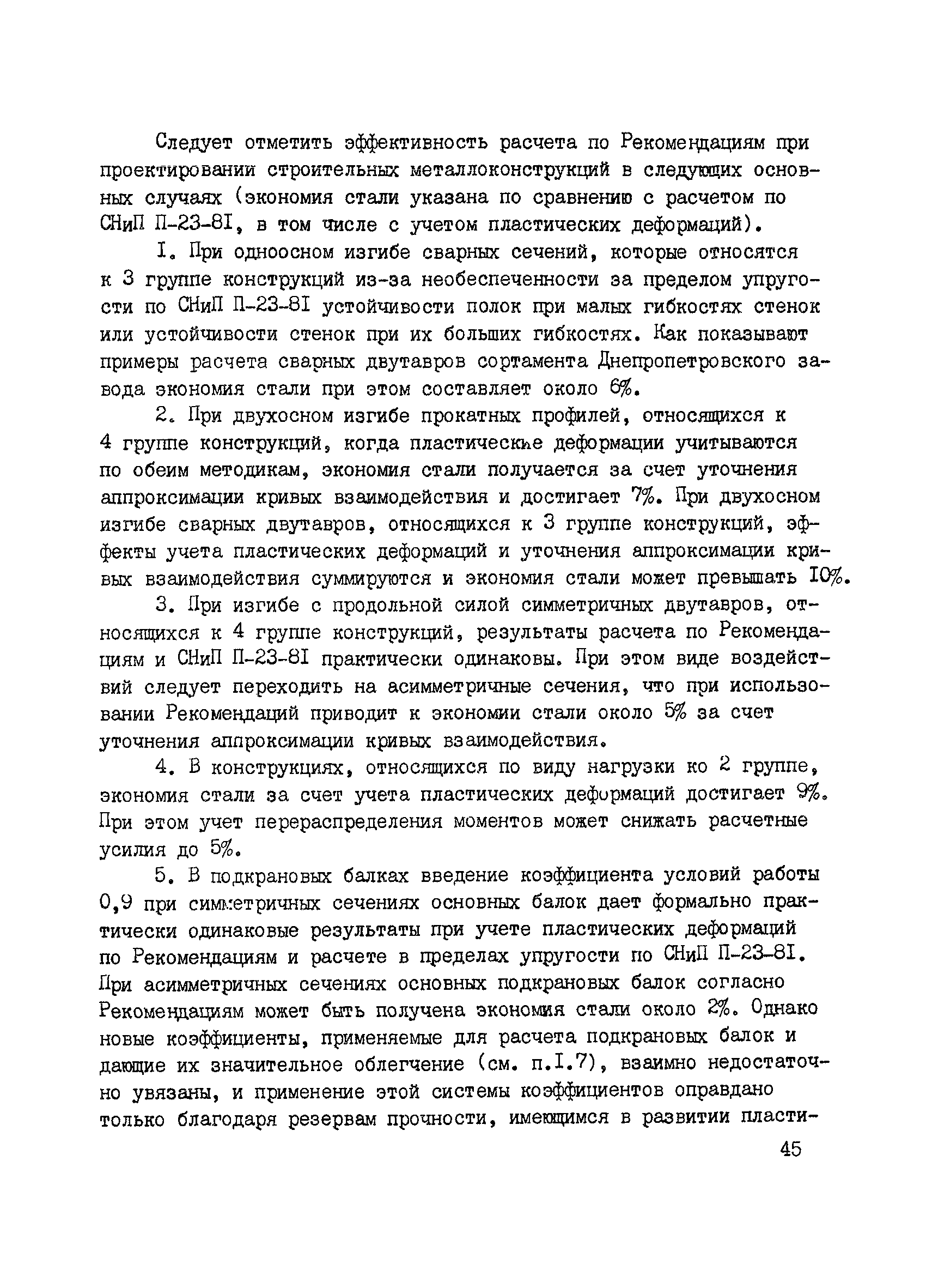 | Область применения: | Рекомендации распространяются на расчеты стальных конструкций на прочность по эксплуатационной пригодности (гарантирующие от чрезмерного развития пластических деформаций) при действии статических, подвижных и вибрационных нагрузок, вызывающих в элементах одноосный изгиб, двухосный изгиб и изгиб с осевыми силами; рассматриваются элементы конструкций, выполненные из одной марки стали (моностальные). |