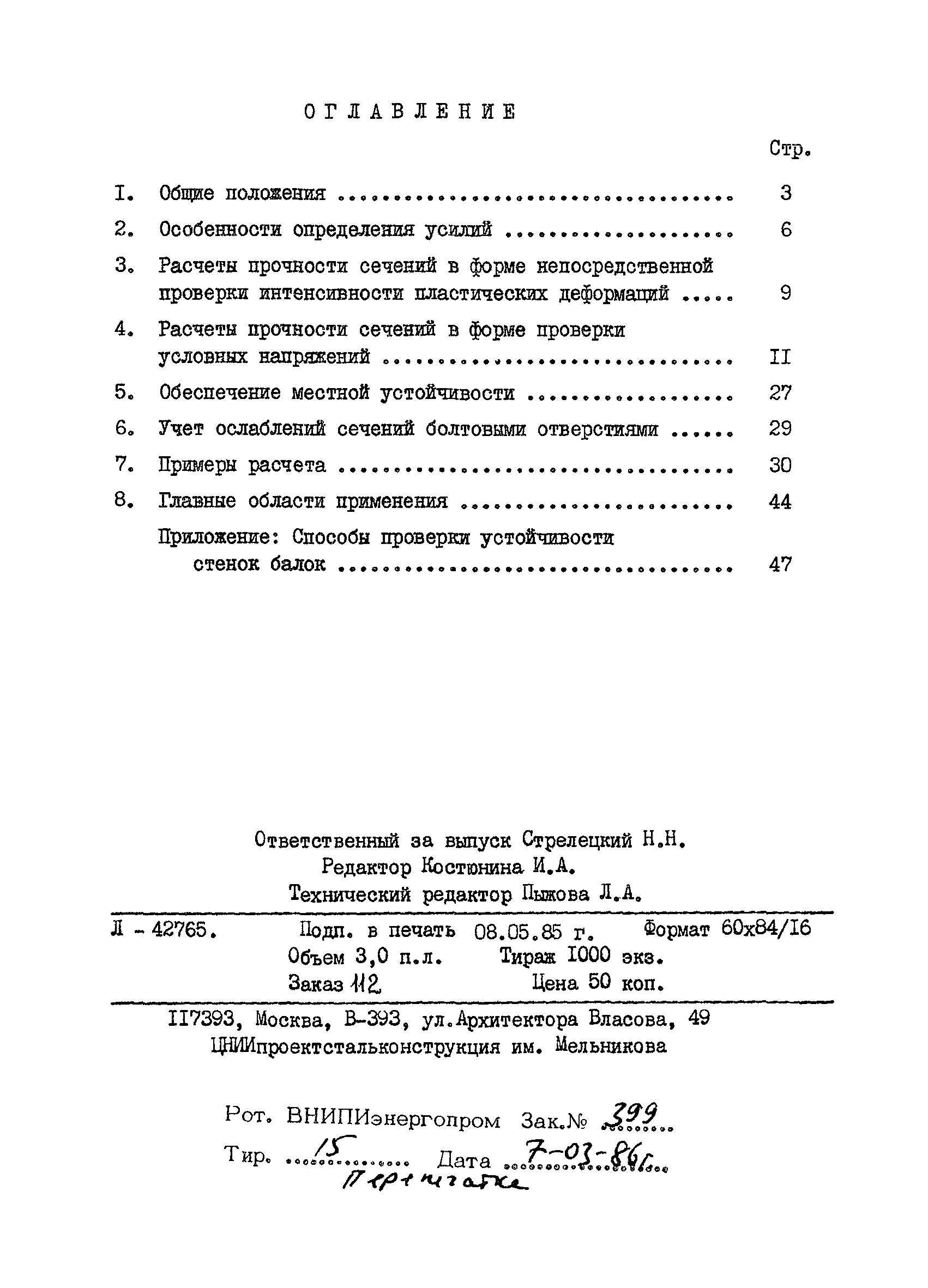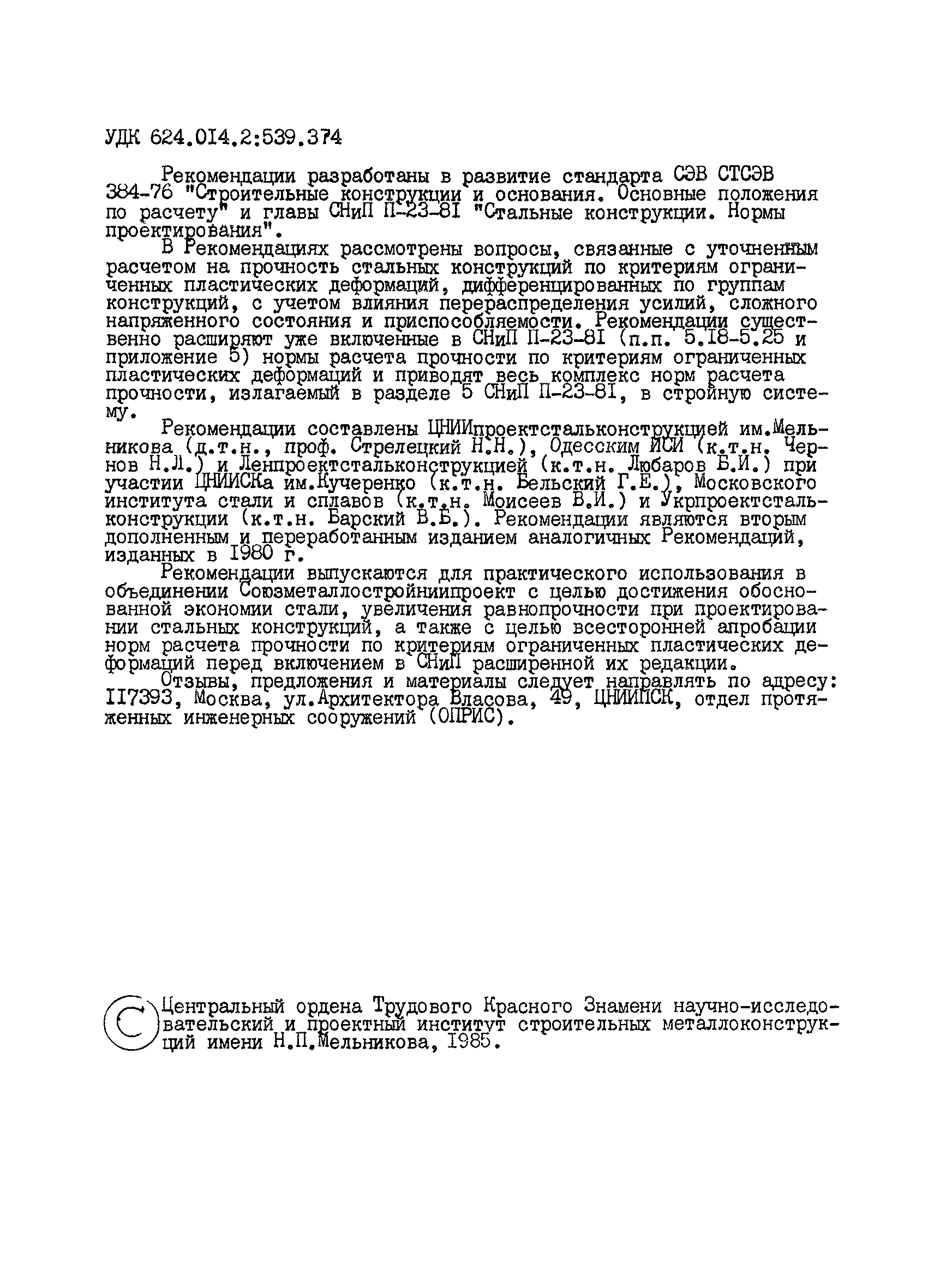 | Утверждён: | 10.01.1985 ЦНИИпроектстальконструкция им. Мельникова