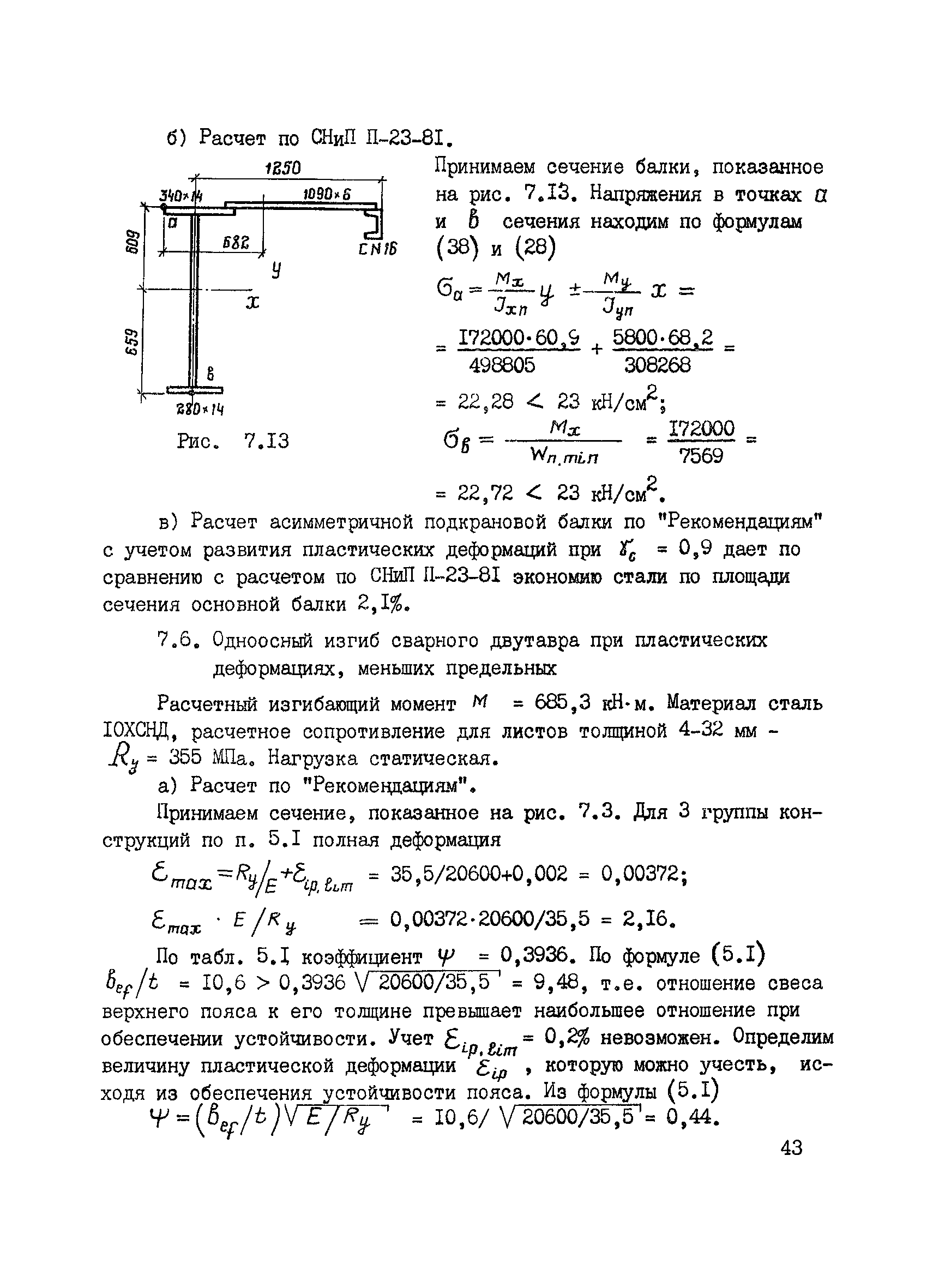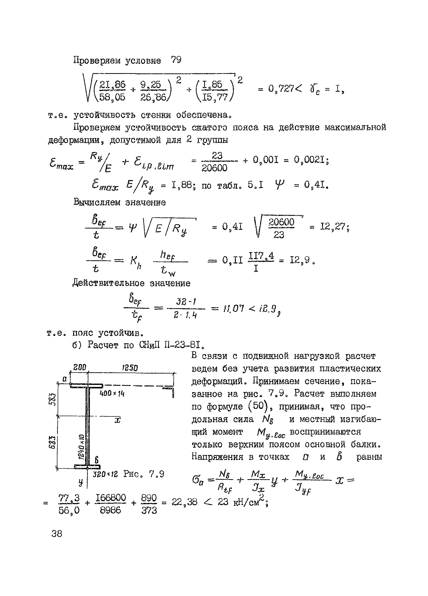 | Оглавление: | 1. Общие положения 2. Особенности определения усилий 3. Расчеты прочности сечений в форме непосредственной проверки интенсивности пластических деформаций 4. Расчеты прочности сечений в форме проверки условных напряжений 5. Обеспечение местной устойчивости 6. Учет ослаблений сечений болтовыми отверстиями 7. Примеры расчета 8. Главные области применения Приложение. Способы проверки устойчивости стенок балок |