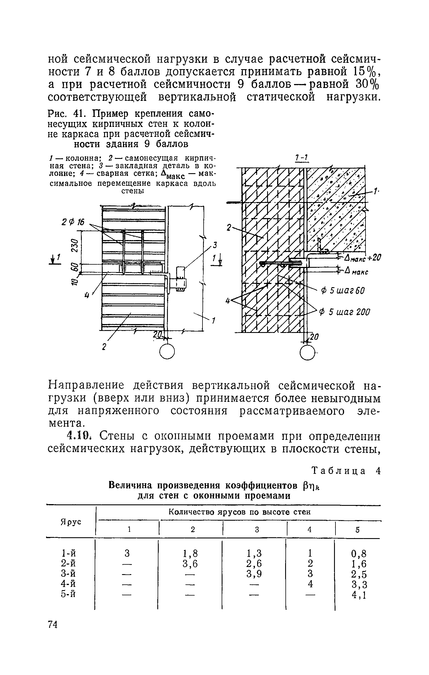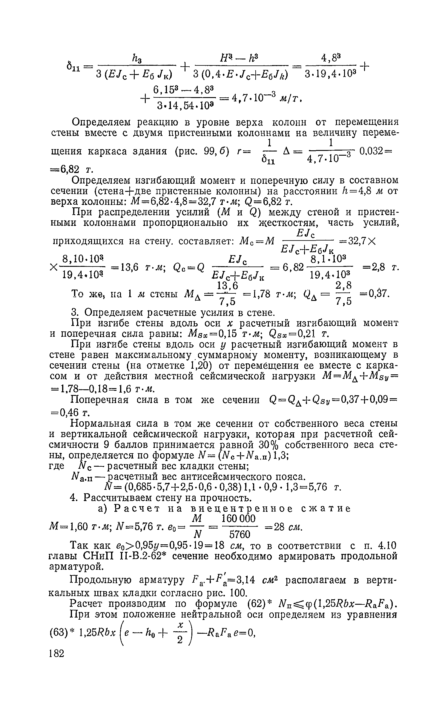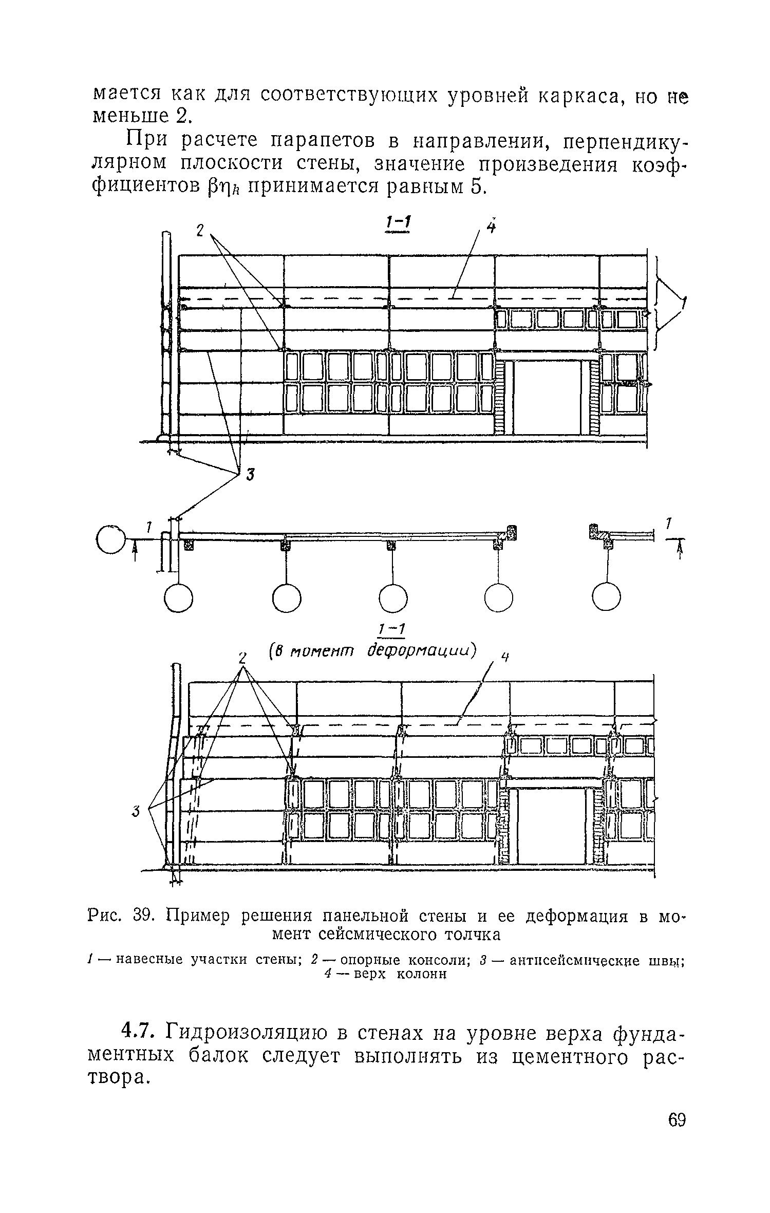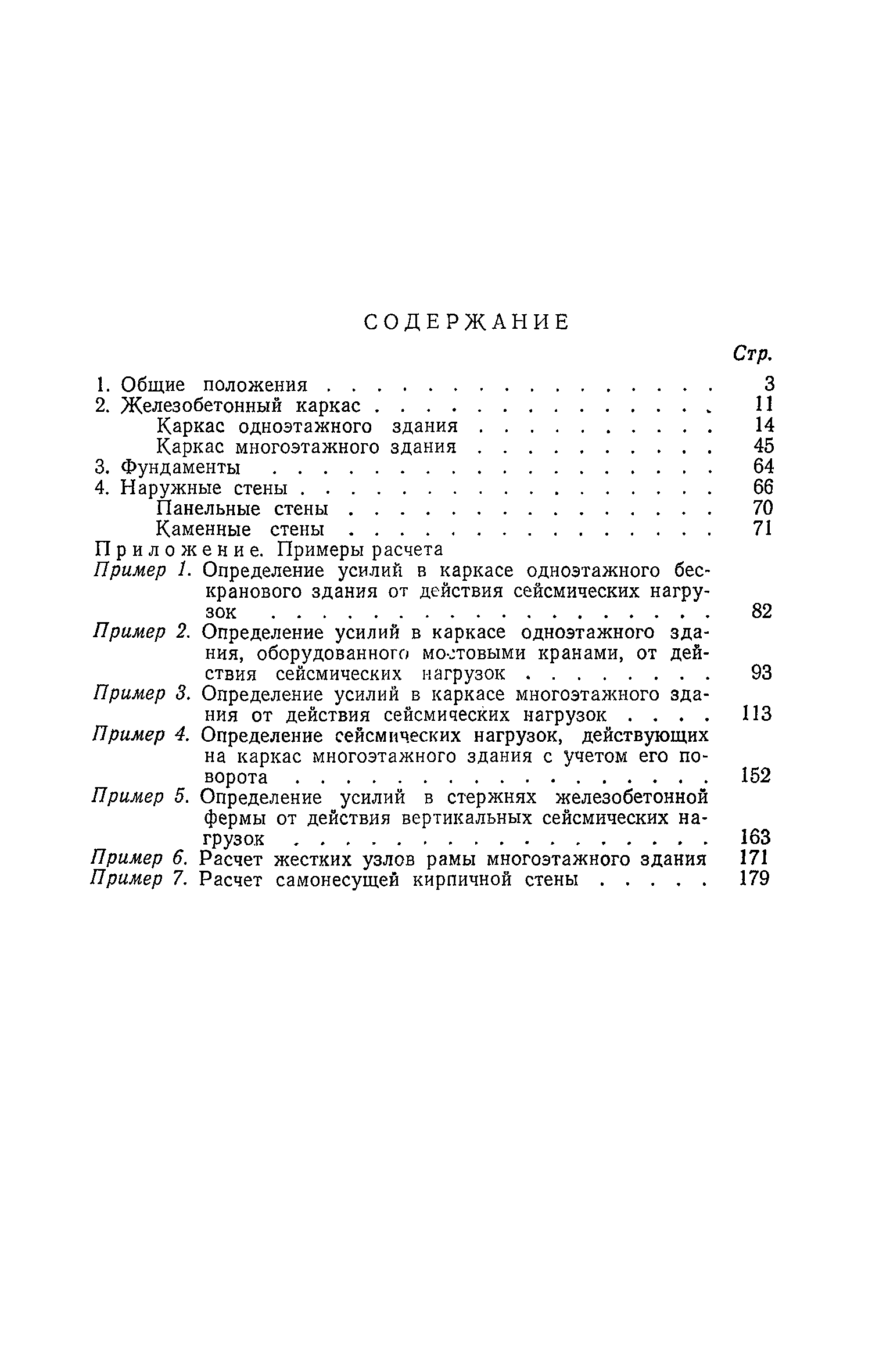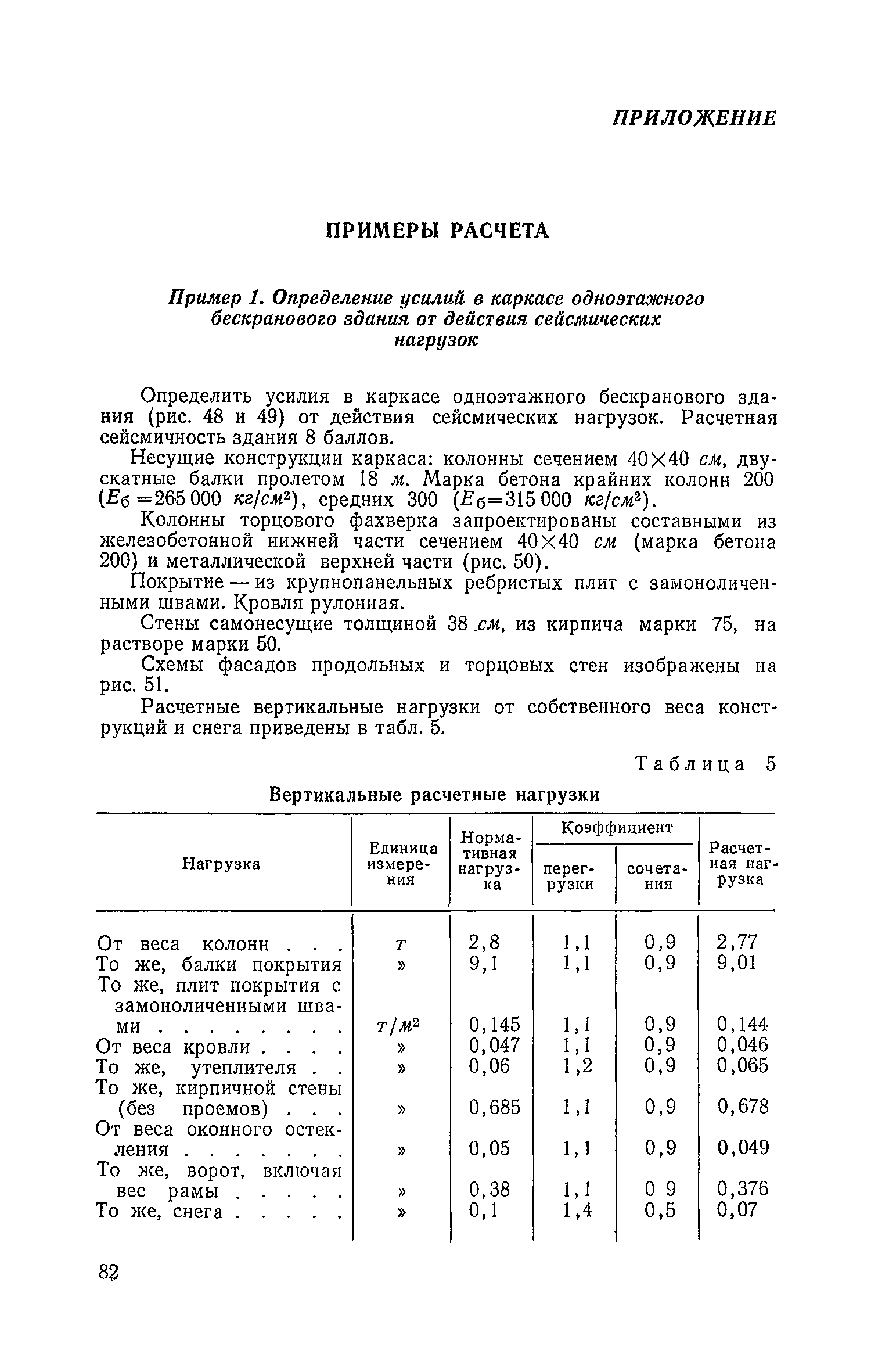 | Оглавление: | 1. Общие положения 2. Железобетонный каркас Каркас одноэтажного здания Каркас многоэтажного здания 3. Фундаменты 4. Наружные стены Панельные стены Каменные стены Приложение. Примеры расчета Пример 1. Определение усилий в каркасе одноэтажного бескранового здания от действия сейсмических нагрузок Пример 2. Определение усилий в каркасе одноэтажного здания, оборудованного мостовыми кранами, от действия сейсмических нагрузок Пример 3. Определение усилий в каркасе многоэтажного здания от действия сейсмических нагрузок Пример 4. Определение сейсмических нагрузок, действующих на каркас многоэтажного здания с учетом его поворота Пример 5. Определение усилий в стержнях железобетонной фермы от действия вертикальных сейсмических нагрузок Пример 6. Расчет жестких узлов рамы многоэтажного здания Пример 7. Расчет самонесущей кирпичной стены |