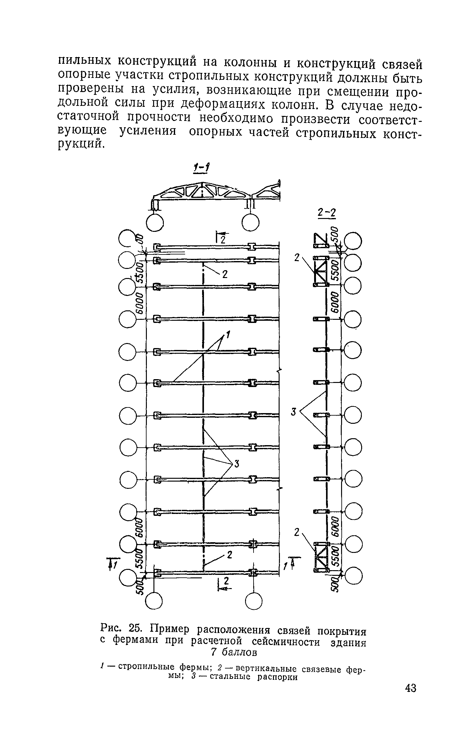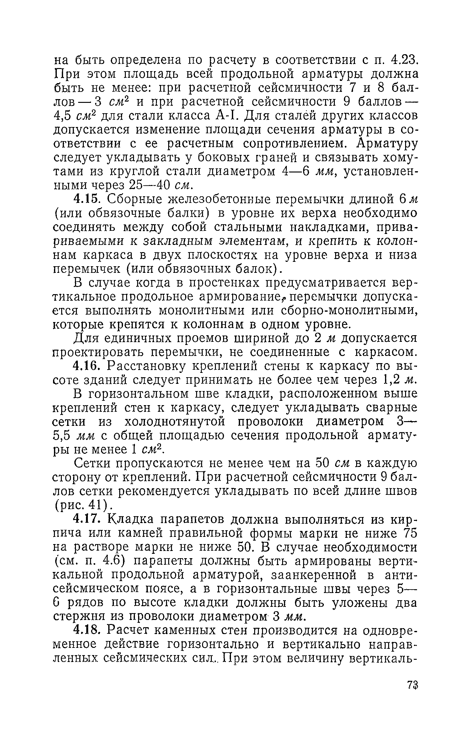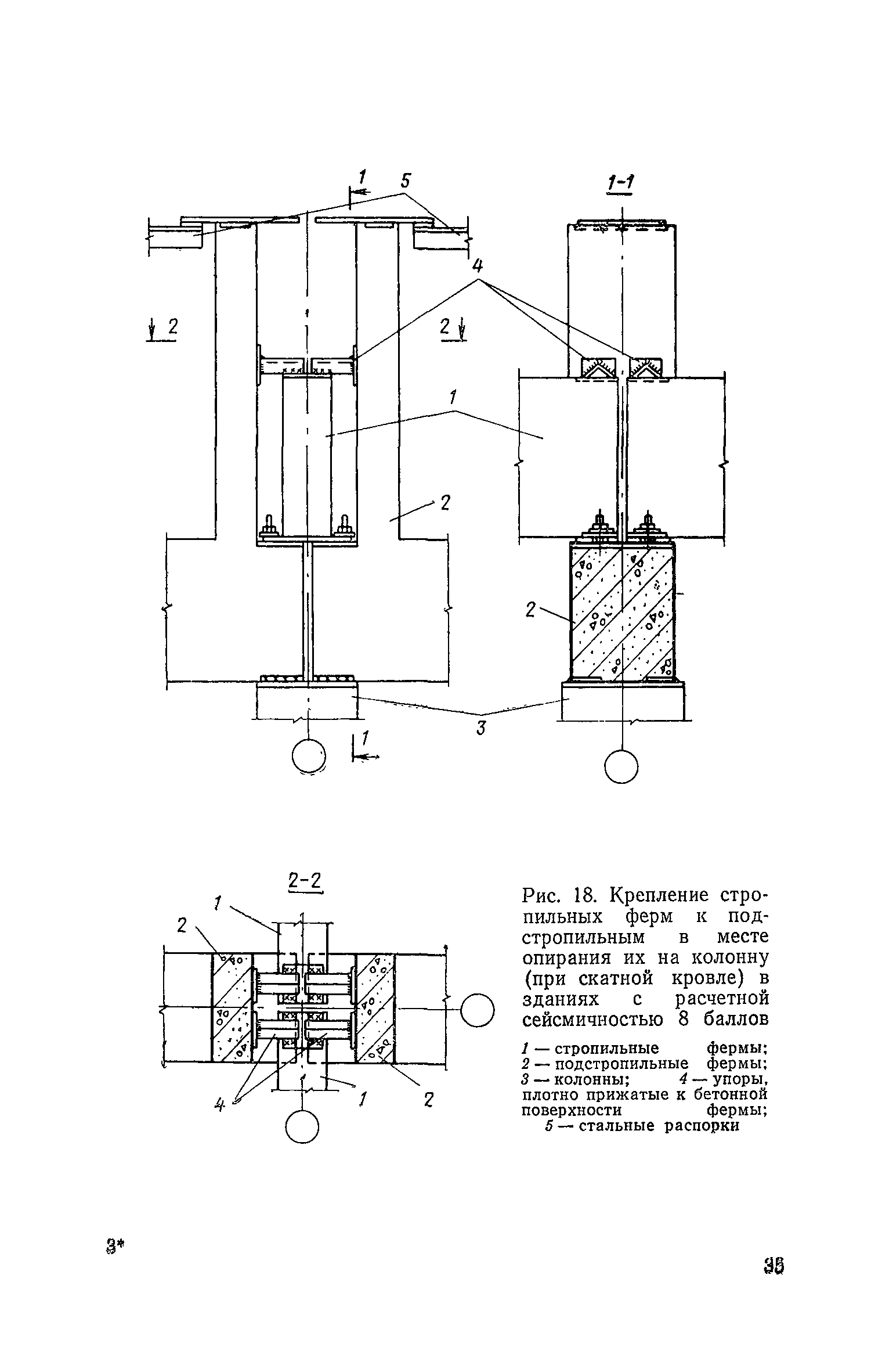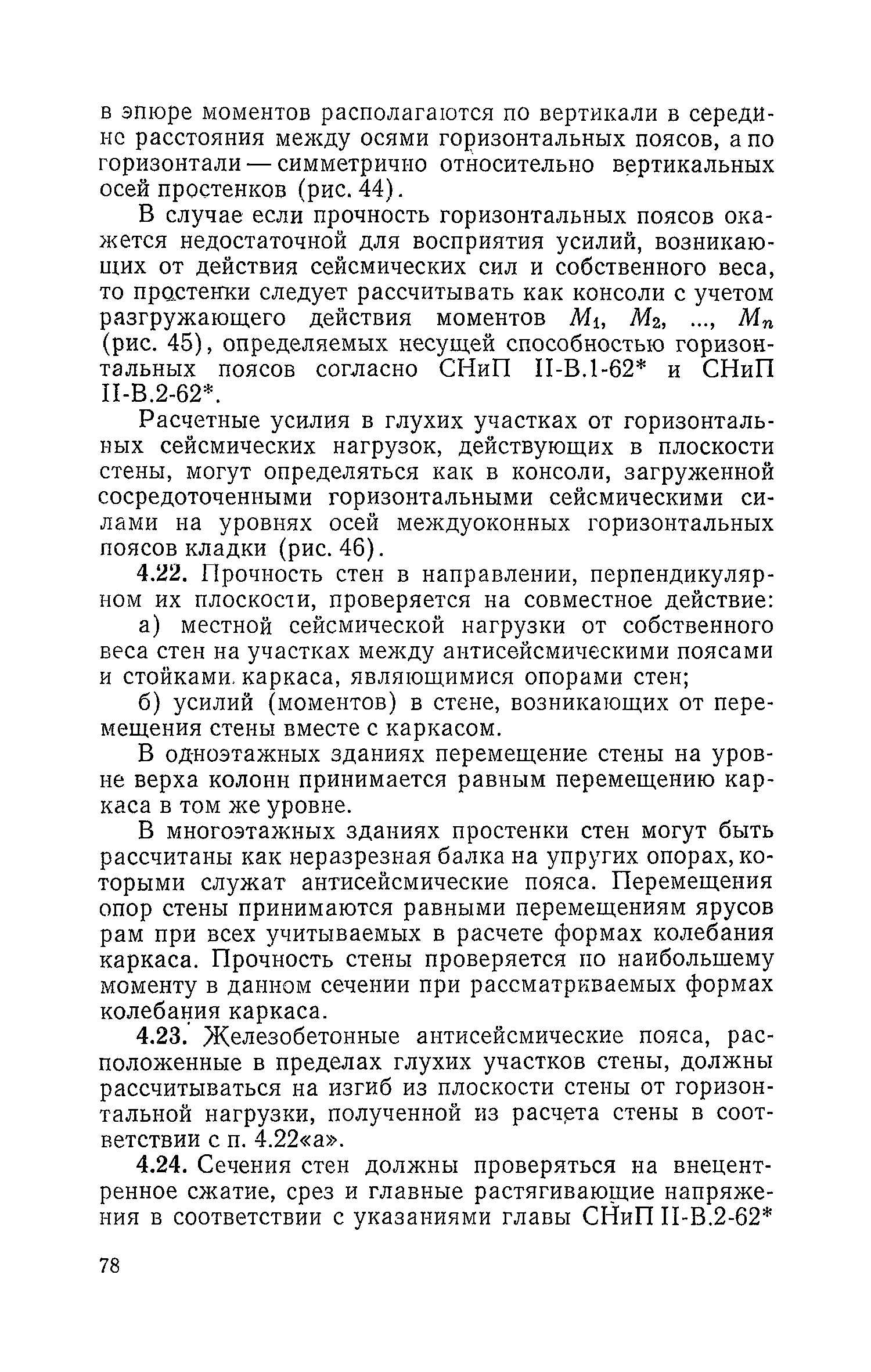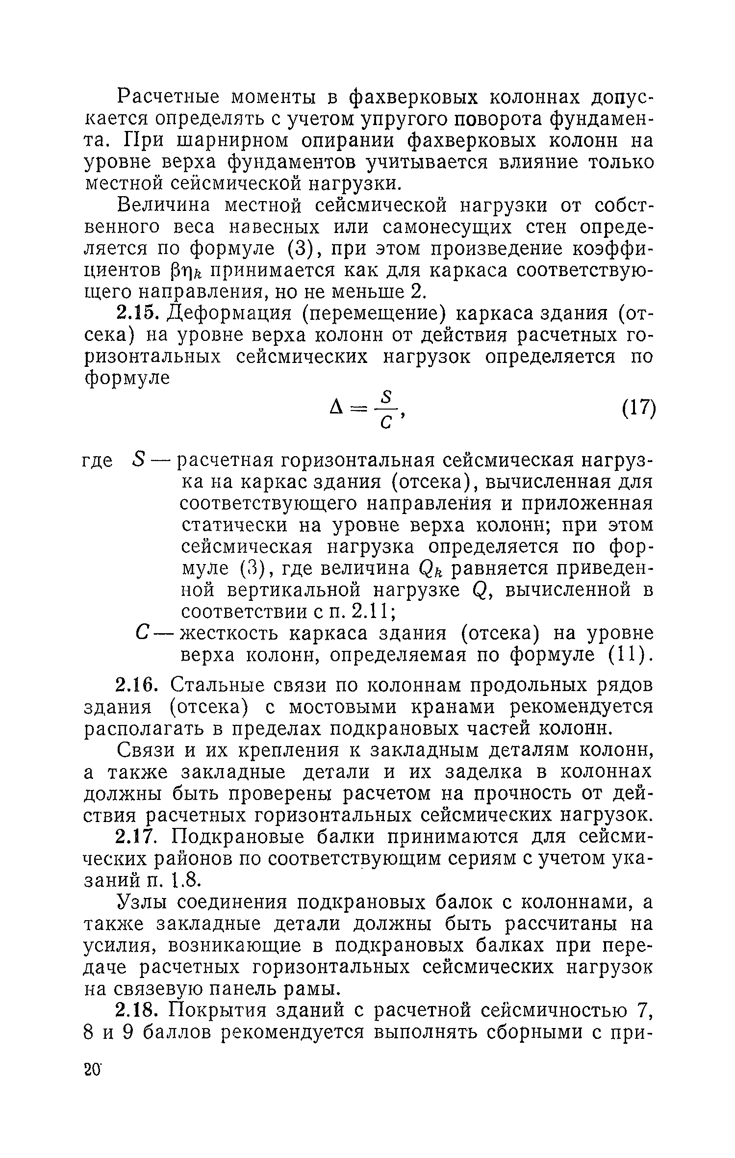 | Оглавление: | 1. Общие положения 2. Железобетонный каркас Каркас одноэтажного здания Каркас многоэтажного здания 3. Фундаменты 4. Наружные стены Панельные стены Каменные стены Приложение. Примеры расчета Пример 1. Определение усилий в каркасе одноэтажного бескранового здания от действия сейсмических нагрузок Пример 2. Определение усилий в каркасе одноэтажного здания, оборудованного мостовыми кранами, от действия сейсмических нагрузок Пример 3. Определение усилий в каркасе многоэтажного здания от действия сейсмических нагрузок Пример 4. Определение сейсмических нагрузок, действующих на каркас многоэтажного здания с учетом его поворота Пример 5. Определение усилий в стержнях железобетонной фермы от действия вертикальных сейсмических нагрузок Пример 6. Расчет жестких узлов рамы многоэтажного здания Пример 7. Расчет самонесущей кирпичной стены |